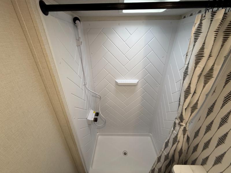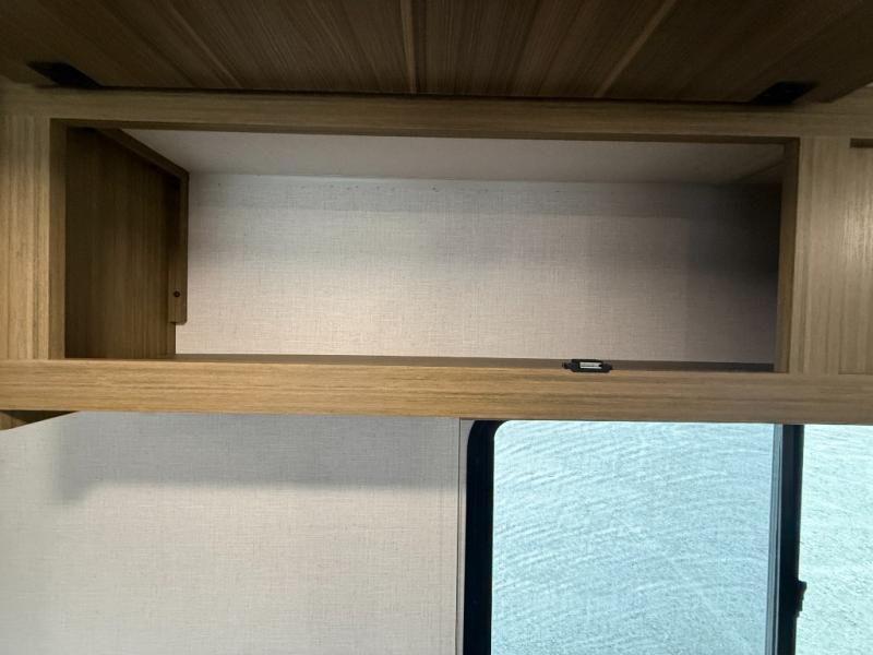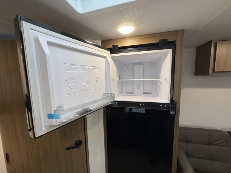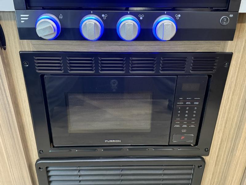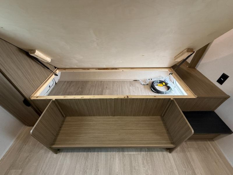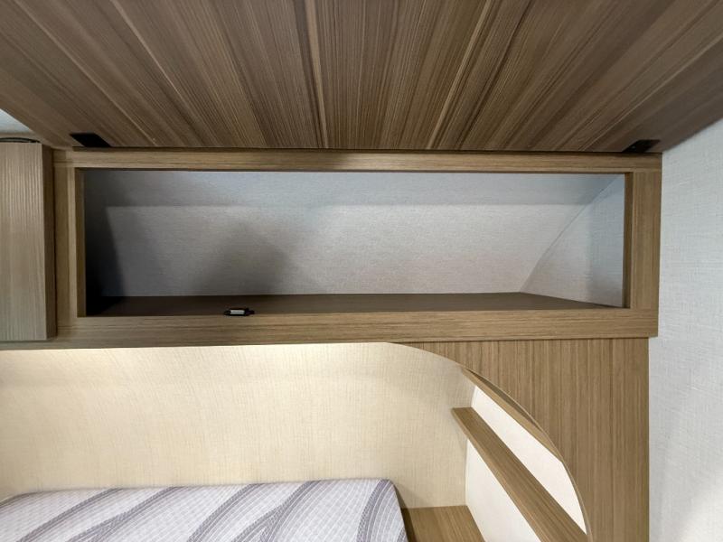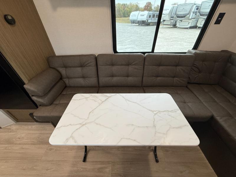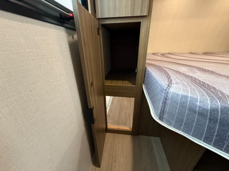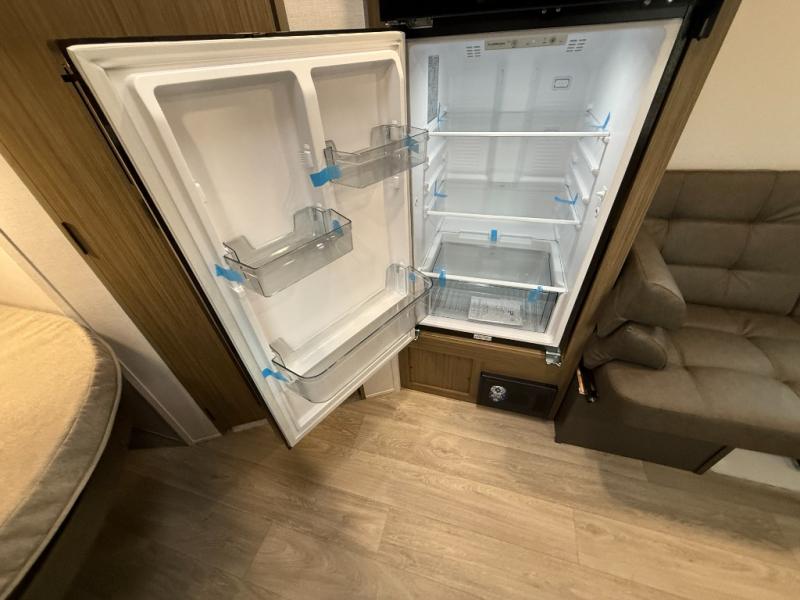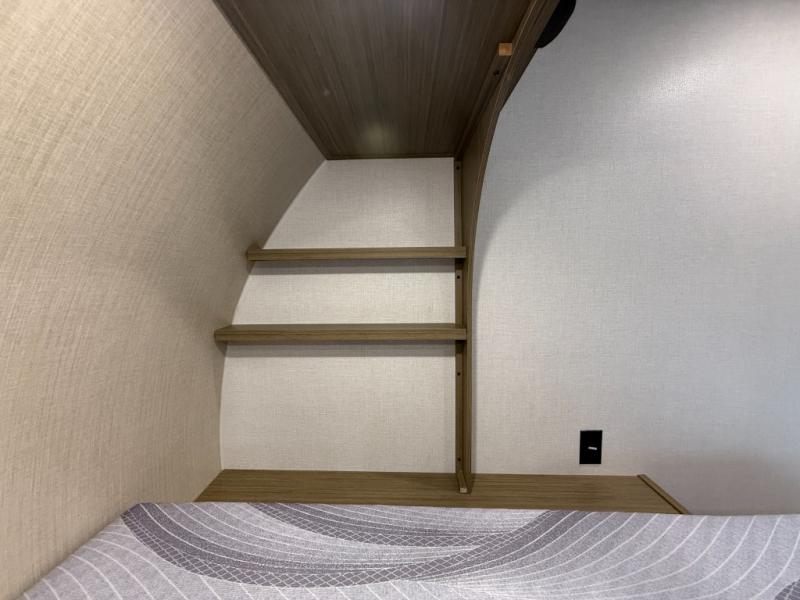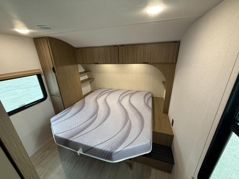Camping is made easy in this travel trailer with more sleeping space and lots of comforts! The kids or your guests will enjoy the double-size bunks in the back, along with the full bath close by for easy nighttime use. You'll have the front private bedroom with a custom king bed all to yourselves, and there are dual bedroom wardrobes to keep your space neat and clean. Everyone can meet in the combined kitchen and living room to relax on the super U-lounge with a removable table while the chef of your group makes breakfast on the two-burner cooktop. There is also a microwave oven for quick meals, plus a pantry and refrigerator for food storage!
