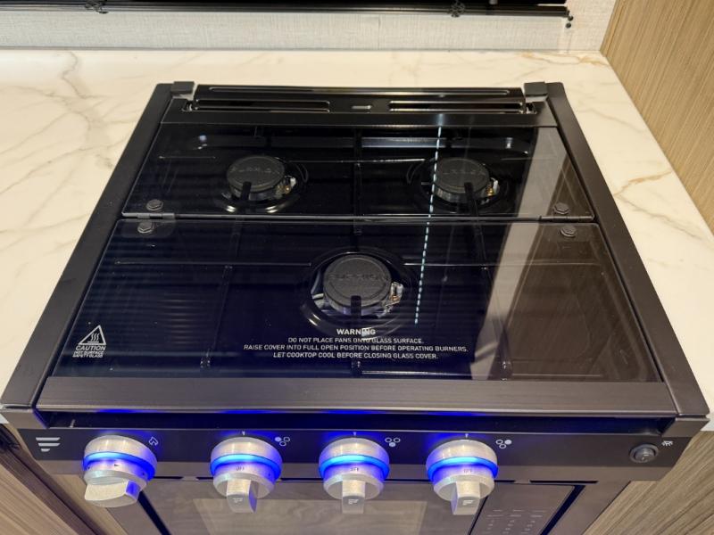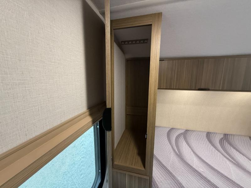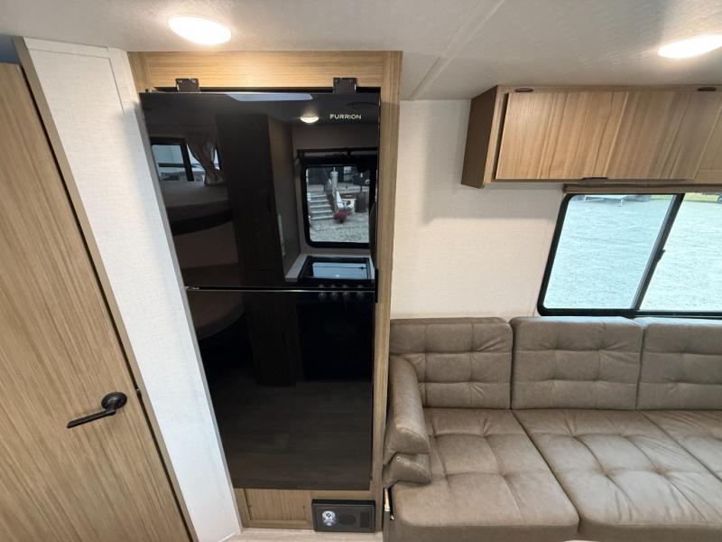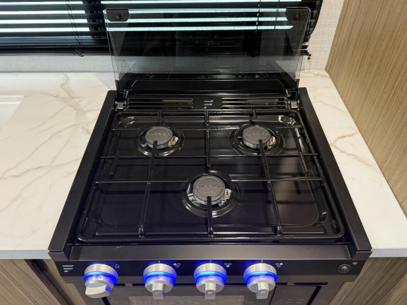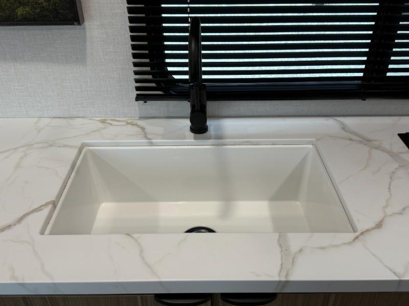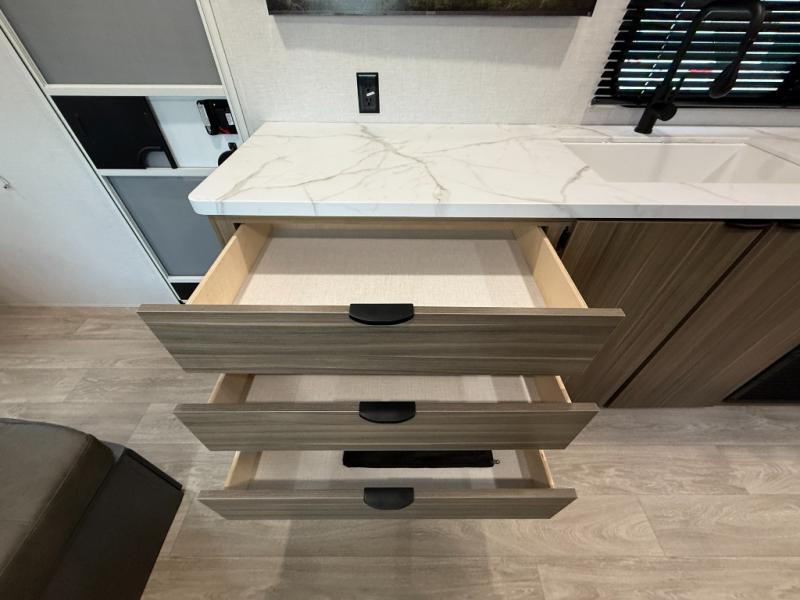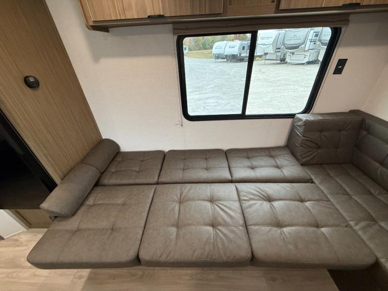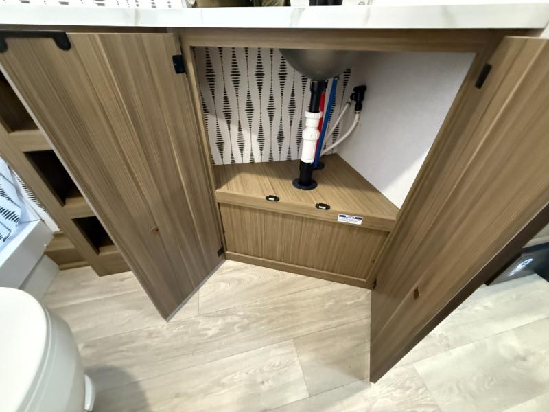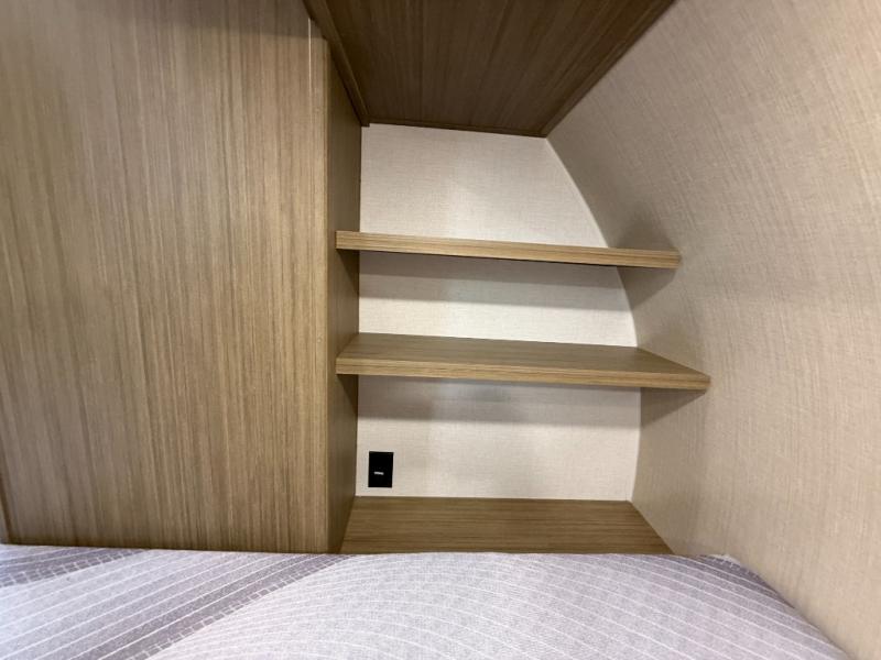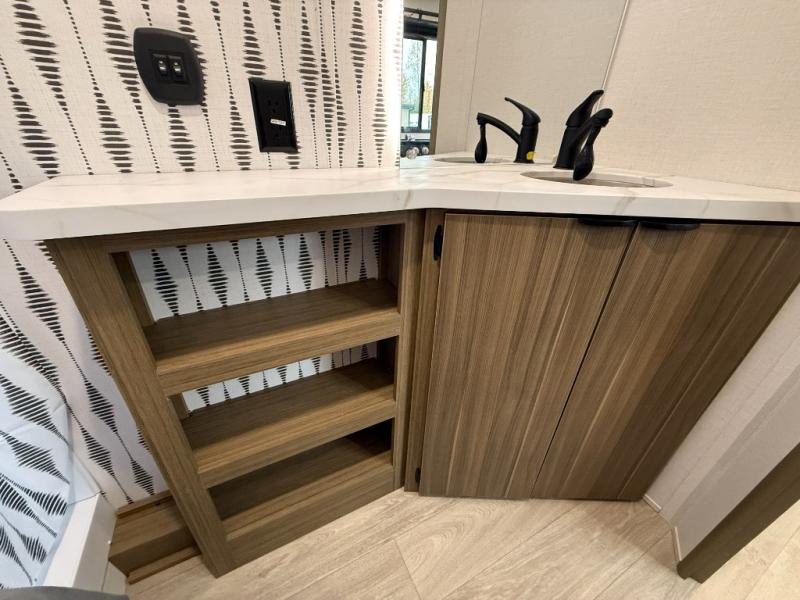 Camping is made easy in this travel trailer with more sleeping space and lots of comforts! The kids or your guests will enjoy the double-size bunks in the back, along with the full bath close by for easy nighttime use. You'll have the front private bedroom with a custom king bed all to yourselves, and there are dual bedroom wardrobes to keep your space neat and clean. Everyone can meet in the combined kitchen and living room to relax on the super U-lounge with a removable table while the chef of your group makes breakfast on the two-burner cooktop. There is also a microwave oven for quick meals, plus a pantry and refrigerator for food storage!