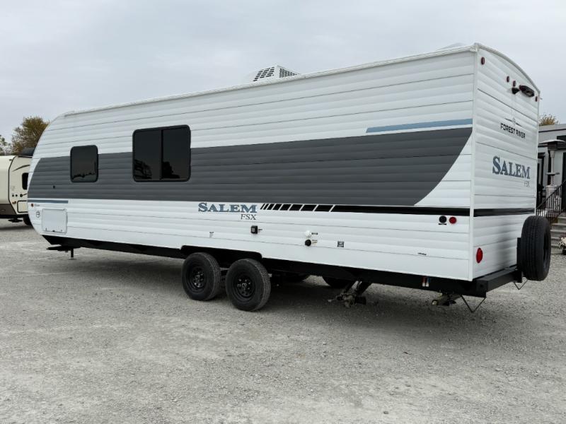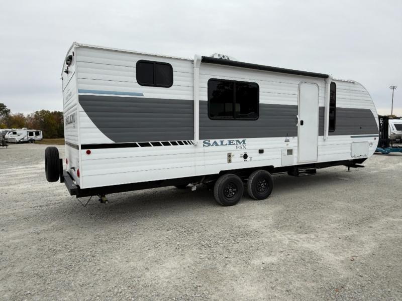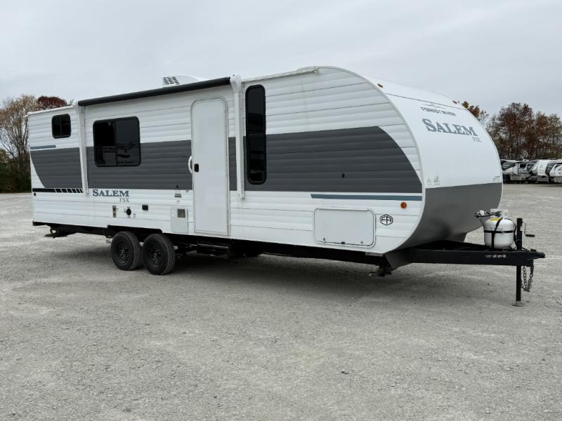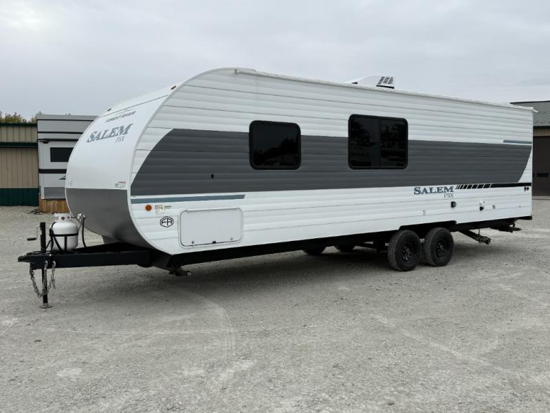 The Forest River Salem FSX travel trailers and toy hauler travel trailers are ultra comfortable and lightweight, perfect for first time or seasoned campers alike! You will love how easy it will be to relax with residential features that will make your space feel just like home, and the durable construction means you can enjoy your RV for years to come. There are a wide variety of floorplans to choose from, including couple's trailers, bunk models, and toy haulers, all with full bath and kitchen amenities and plenty of storage for all your gear!