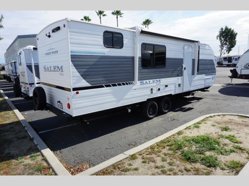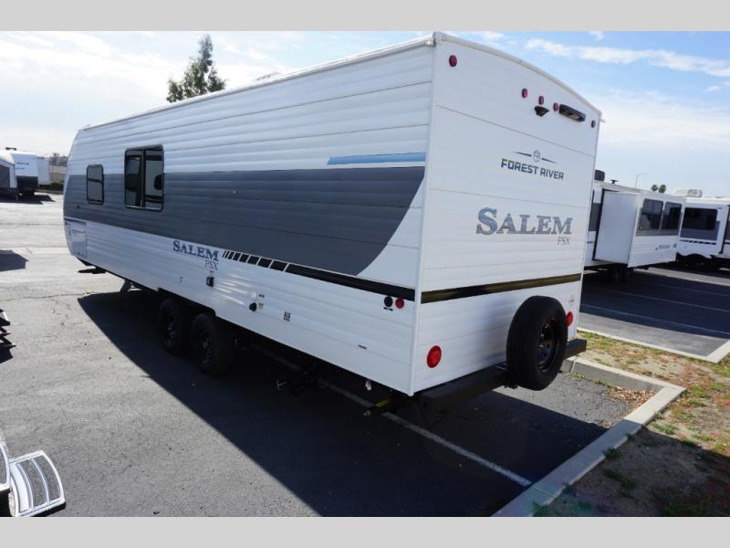 The Forest River Salem FSX travel trailers and toy hauler travel trailers are ultra comfortable and lightweight, perfect for first time or seasoned campers alike! You will love how easy it will be to relax with residential features that will make your space feel just like home, and the durable construction means you can enjoy your RV for years to come. There are a wide variety of floorplans to choose from, including couple's trailers, bunk models, and toy haulers, all with full bath and kitchen amenities and plenty of storage for all your gear!