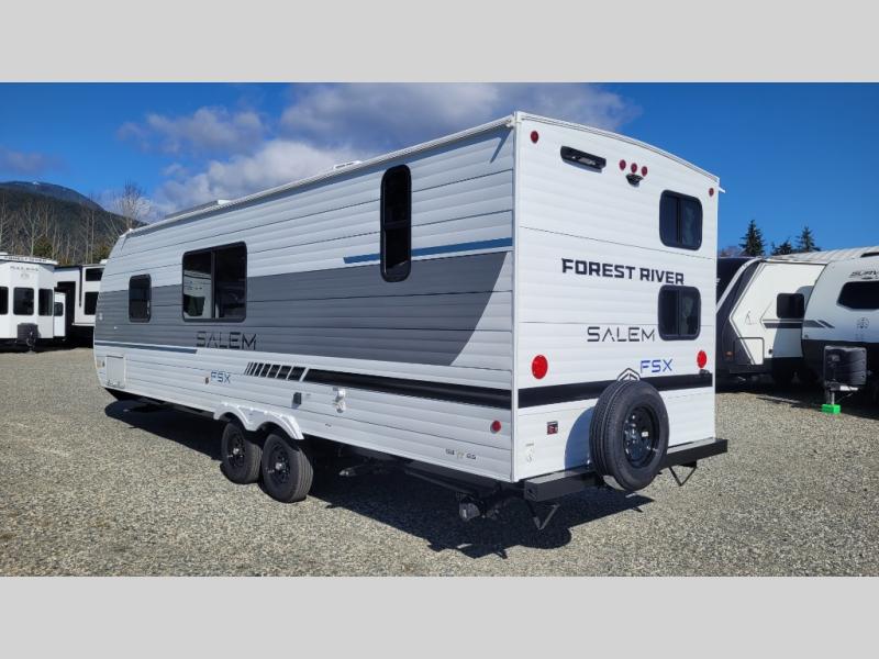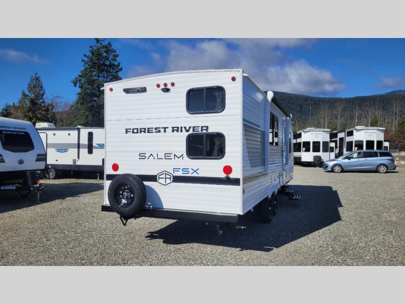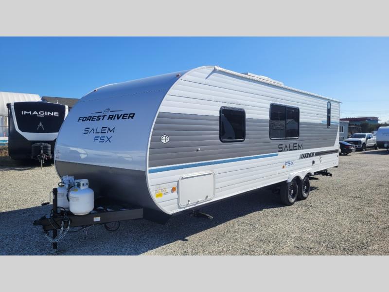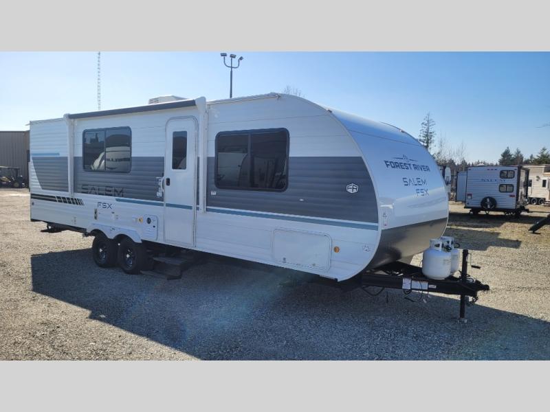 The Forest River Salem FSX travel trailers and toy hauler travel trailers are ultra comfortable and lightweight, perfect for first time or seasoned campers alike! You will love how easy it will be to relax with residential features that will make your space feel just like home, and the durable construction means you can enjoy your RV for years to come. There are a wide variety of floorplans to choose from, including couple's trailers, bunk models, and toy haulers, all with full bath and kitchen amenities and plenty of storage for all your gear!