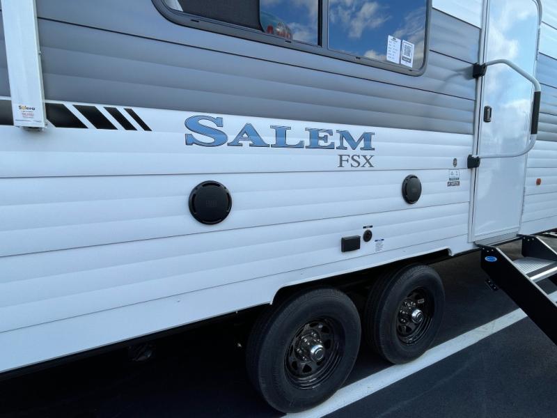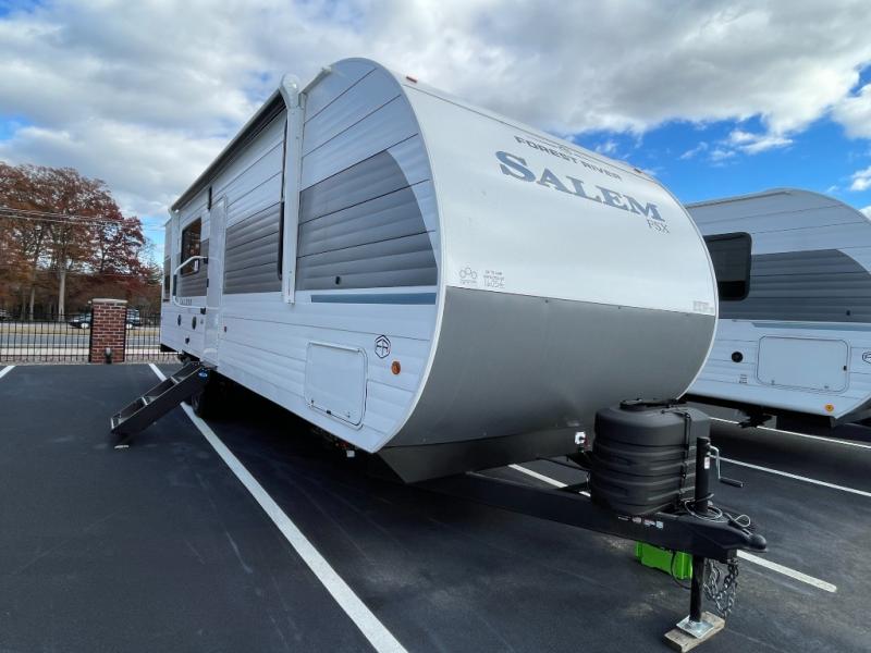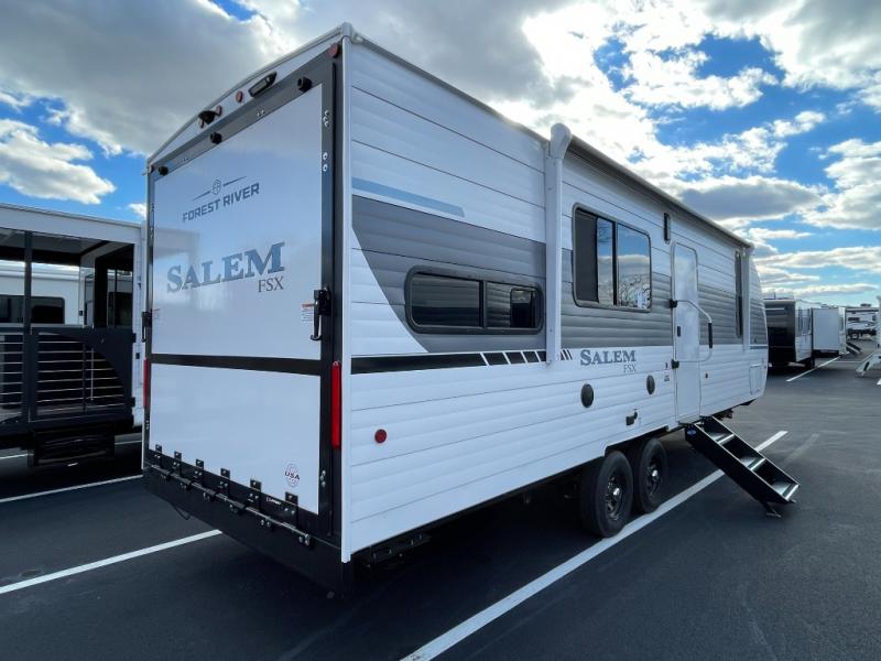 The Forest River Salem FSX travel trailers and toy hauler travel trailers are ultra comfortable and lightweight, perfect for first time or seasoned campers alike! You will love how easy it will be to relax with residential features that will make your space feel just like home, and the durable construction means you can enjoy your RV for years to come. There are a wide variety of floorplans to choose from, including couple's trailers, bunk models, and toy haulers, all with full bath and kitchen amenities and plenty of storage for all your gear!