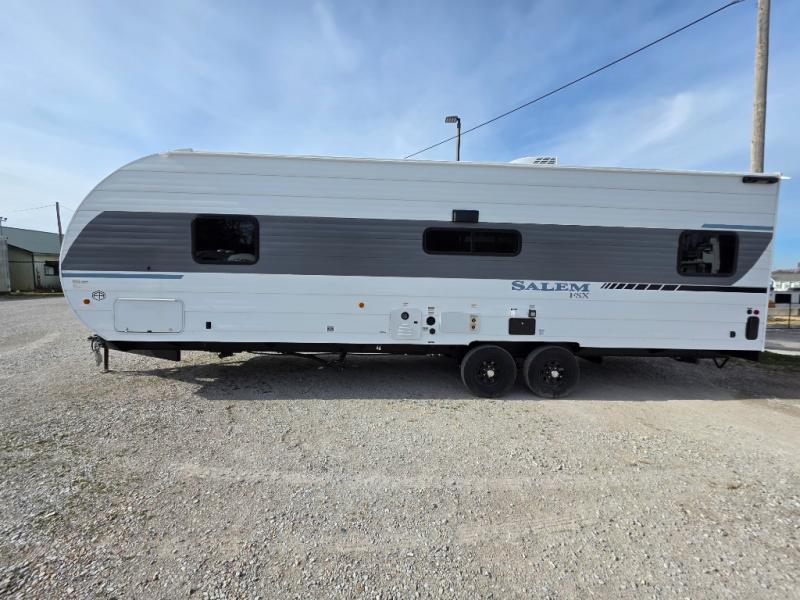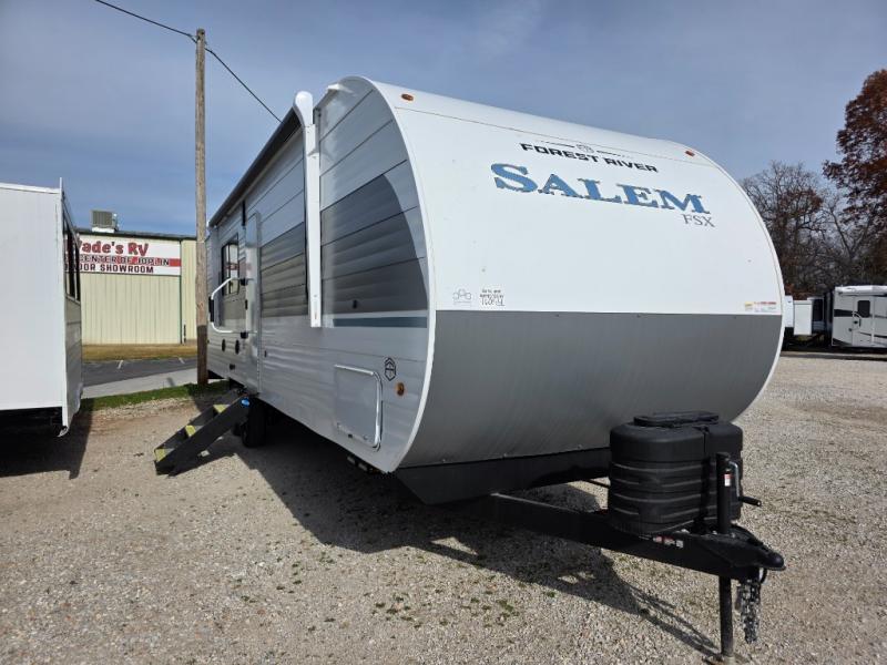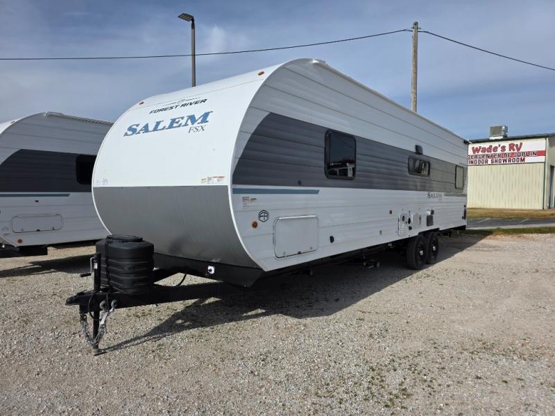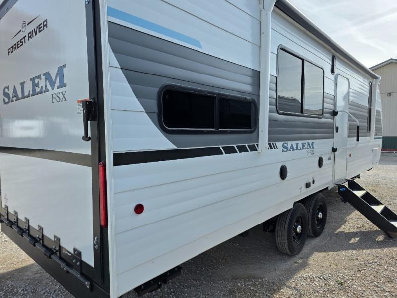 The Forest River Salem FSX travel trailers and toy hauler travel trailers are ultra comfortable and lightweight, perfect for first time or seasoned campers alike! You will love how easy it will be to relax with residential features that will make your space feel just like home, and the durable construction means you can enjoy your RV for years to come. There are a wide variety of floorplans to choose from, including couple's trailers, bunk models, and toy haulers, all with full bath and kitchen amenities and plenty of storage for all your gear!