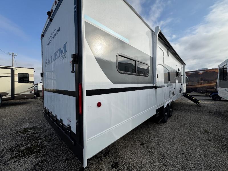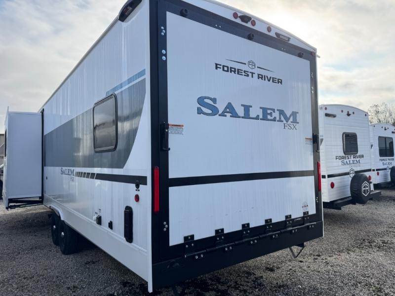 The Forest River Salem FSX travel trailers and toy hauler travel trailers are ultra comfortable and lightweight, perfect for first time or seasoned campers alike! You will love how easy it will be to relax with residential features that will make your space feel just like home, and the durable construction means you can enjoy your RV for years to come. There are a wide variety of floorplans to choose from, including couple's trailers, bunk models, and toy haulers, all with full bath and kitchen amenities and plenty of storage for all your gear!
