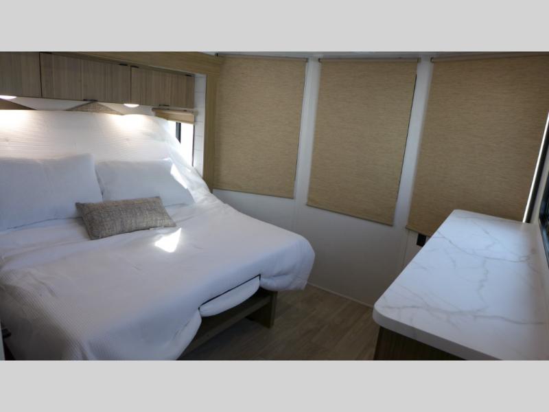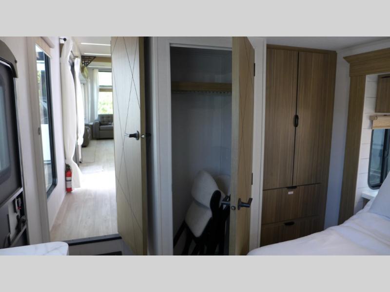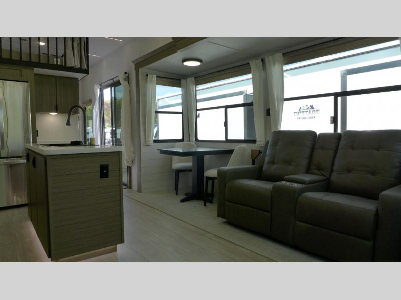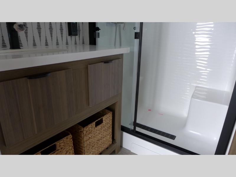With any Salem Grand Villa destination trailer by Forest River, you can call home wherever you park it! There is a heated and enclosed Accessibelly for added protection, LED "Blade Lighting" under the awning, Lippert On-The-Go ladder prep, plus many more exterior conveniences. Elegant curtain rods and curtains will have you feeling right at home, along with stainless steel kitchen appliances, stylish roller shades, and enhanced floating shelves for added storage. Each model includes heavy duty cabinet hinges for safety and durability, a 60k on-demand tankless water heater for endless hot showers, a JBL 3-Zone media center, plus available options to further customize your trailer.