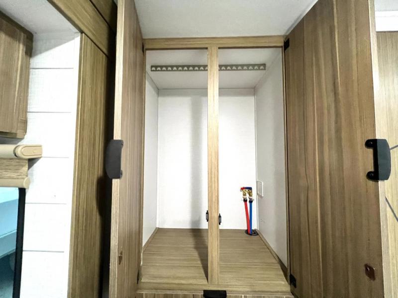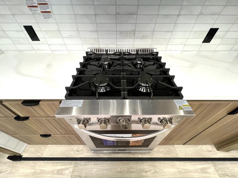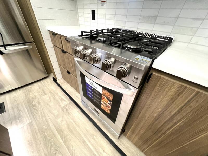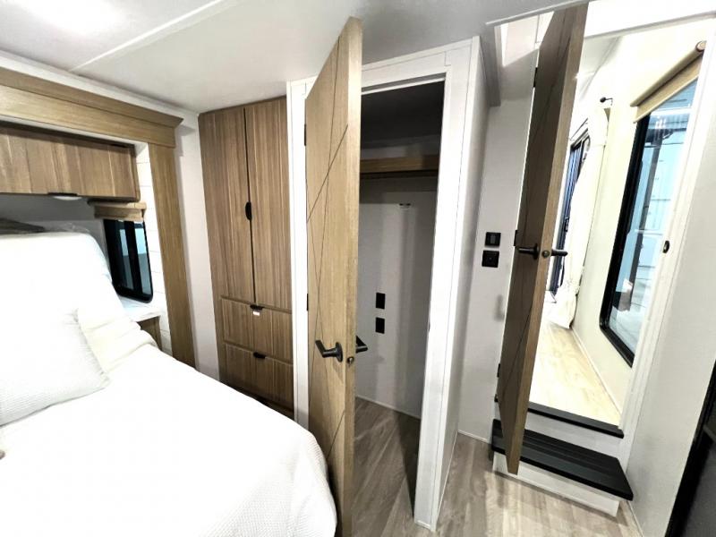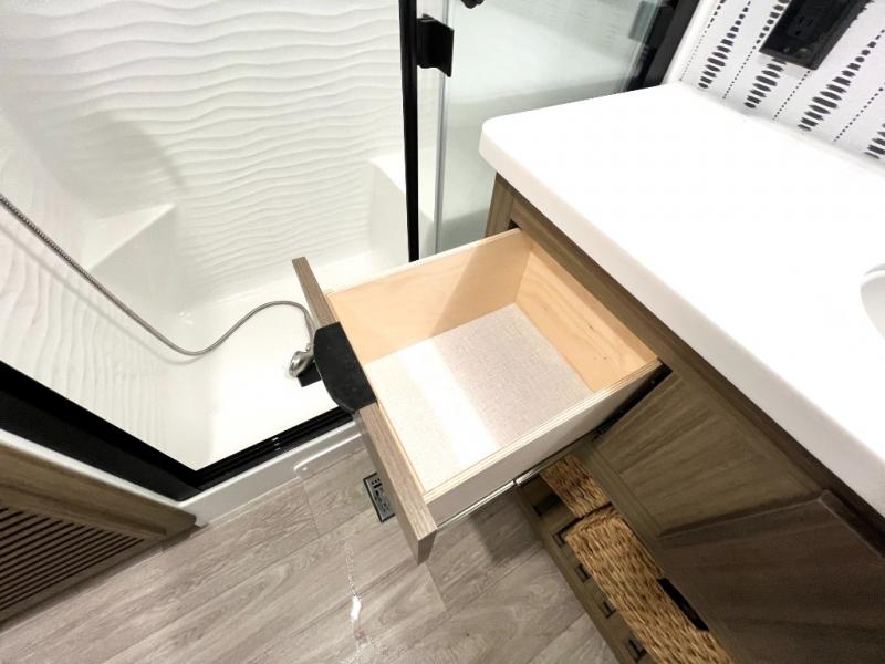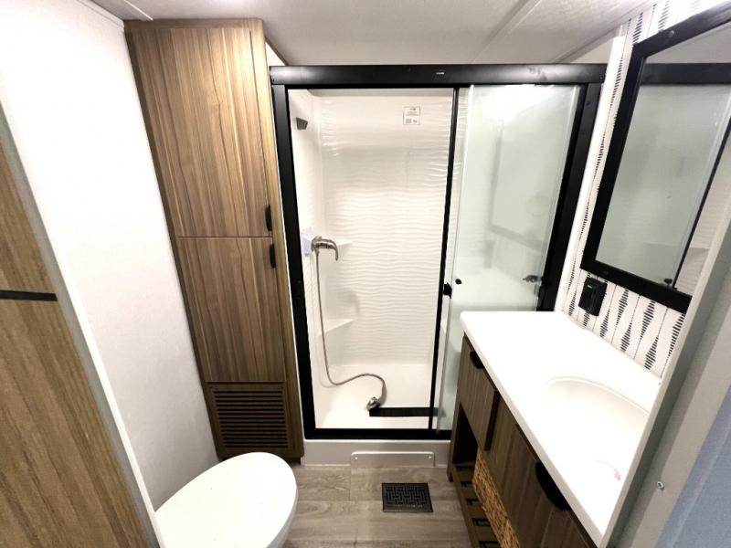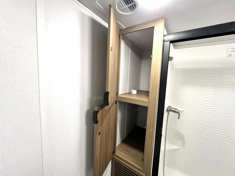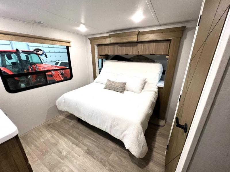 With any Salem Grand Villa destination trailer by Forest River, you can call home wherever you park it! There is a heated and enclosed Accessibelly for added protection, LED "Blade Lighting" under the awning, Lippert On-The-Go ladder prep, plus many more exterior conveniences. Elegant curtain rods and curtains will have you feeling right at home, along with stainless steel kitchen appliances, stylish roller shades, and enhanced floating shelves for added storage. Each model includes heavy duty cabinet hinges for safety and durability, a 60k on-demand tankless water heater for endless hot showers, a JBL 3-Zone media center, plus available options to further customize your trailer.