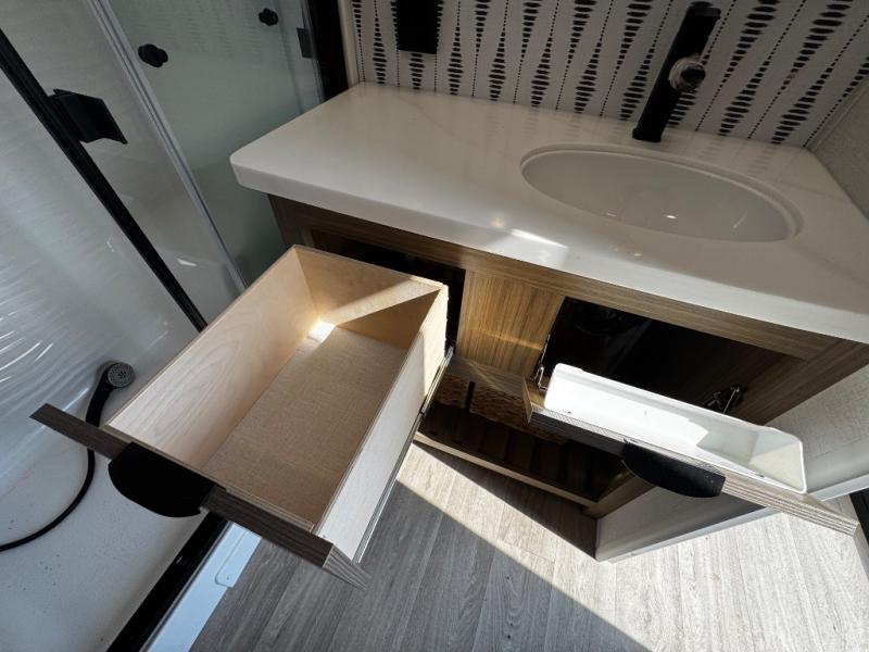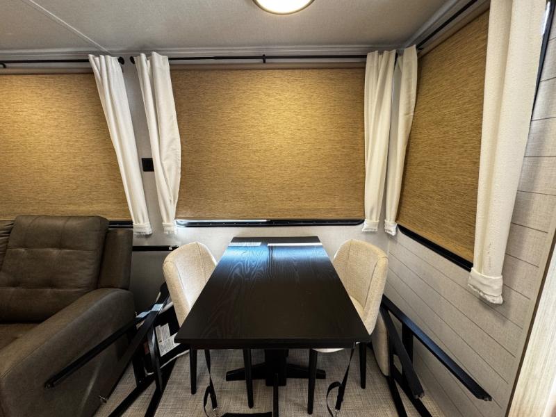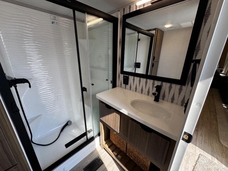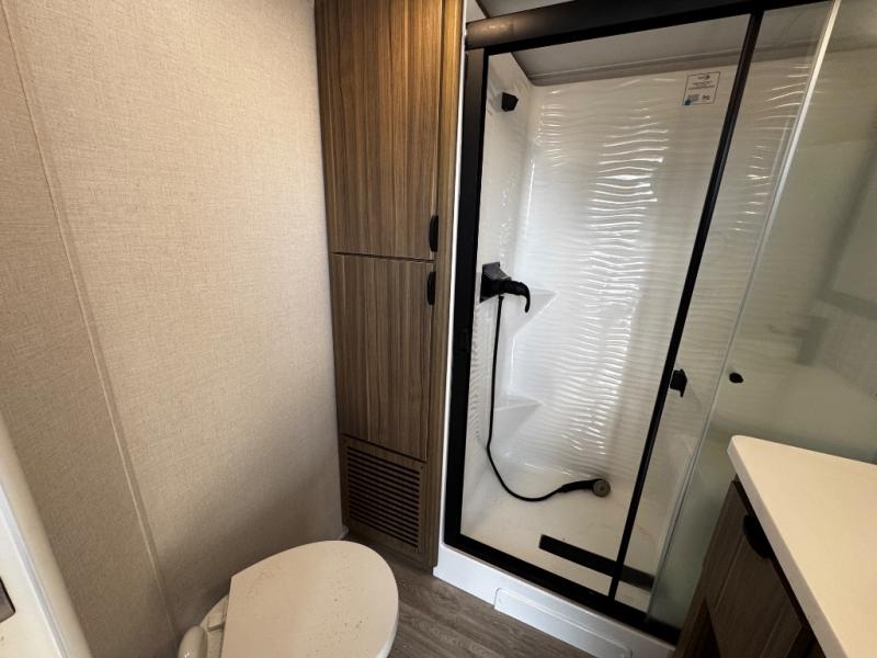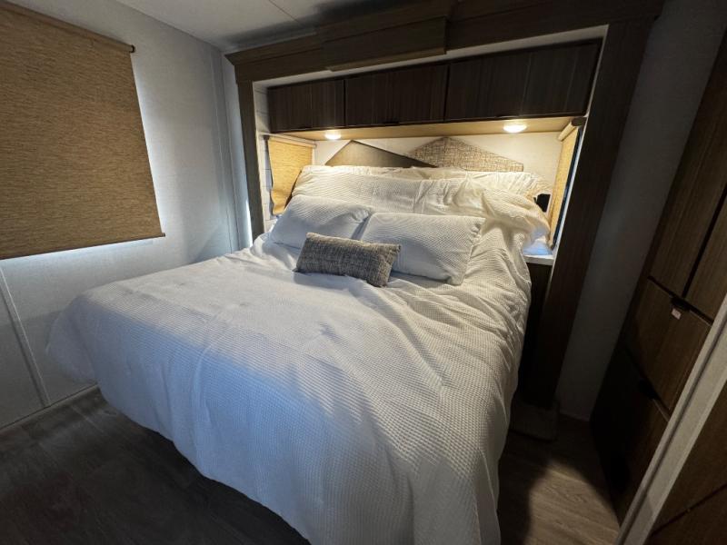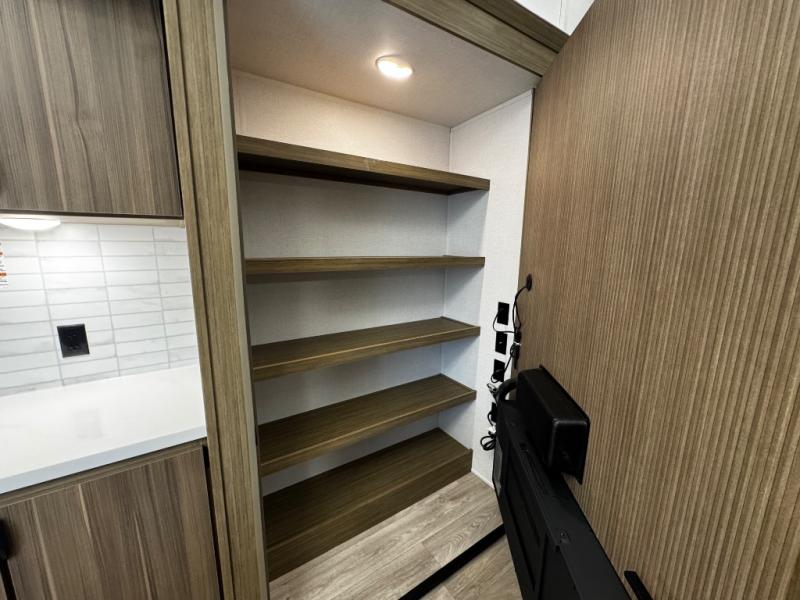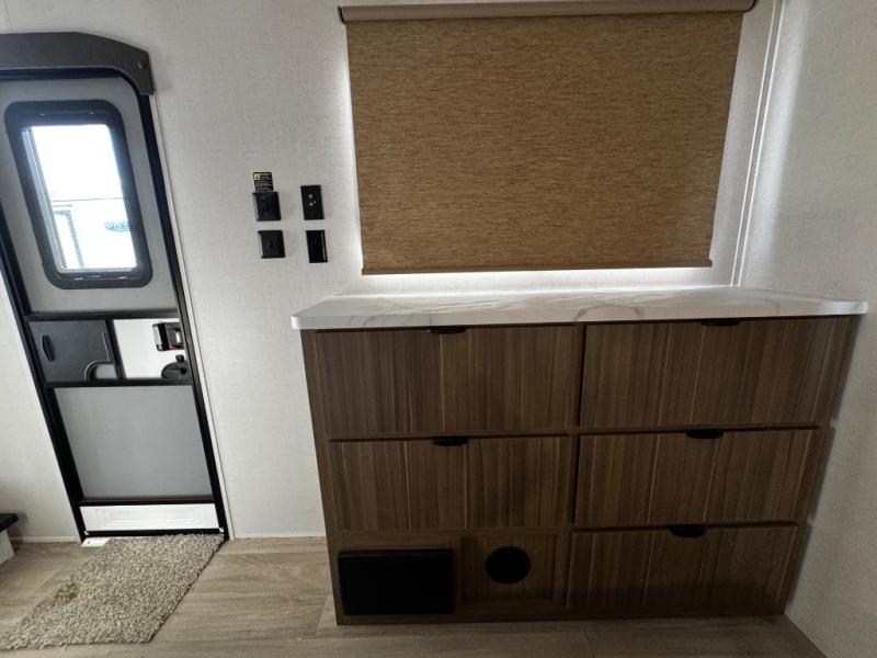 With any Salem Grand Villa destination trailer by Forest River, you can call home wherever you park it! There is a heated and enclosed Accessibelly for added protection, LED "Blade Lighting" under the awning, Lippert On-The-Go ladder prep, plus many more exterior conveniences. Elegant curtain rods and curtains will have you feeling right at home, along with stainless steel kitchen appliances, stylish roller shades, and enhanced floating shelves for added storage. Each model includes heavy duty cabinet hinges for safety and durability, a 60k on-demand tankless water heater for endless hot showers, a JBL 3-Zone media center, plus available options to further customize your trailer.