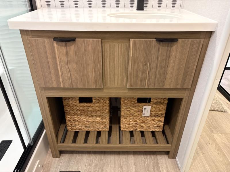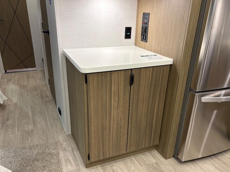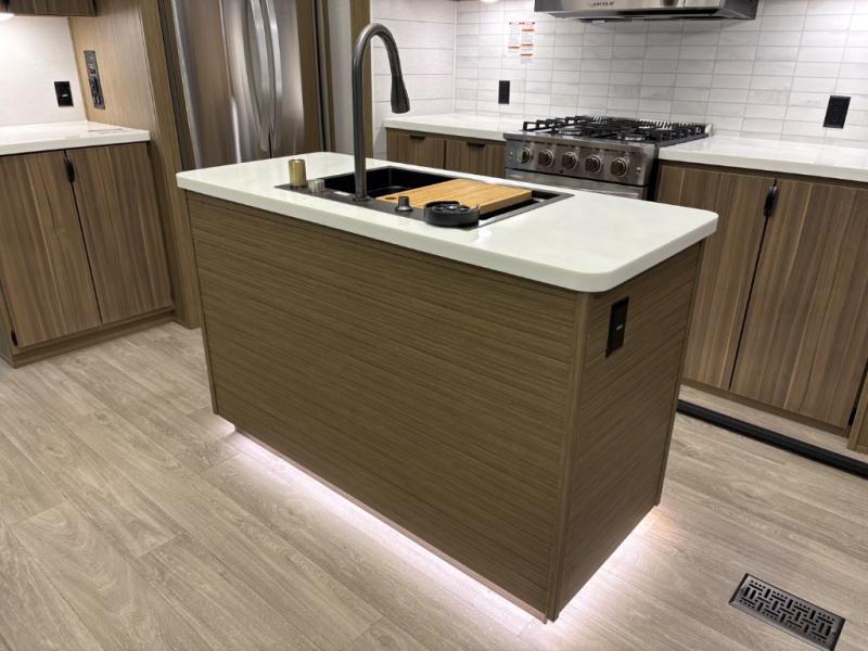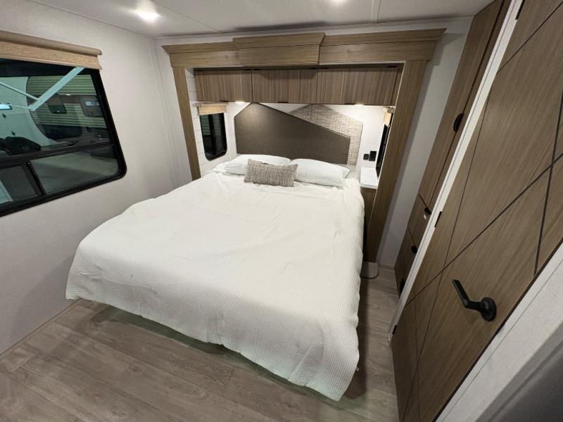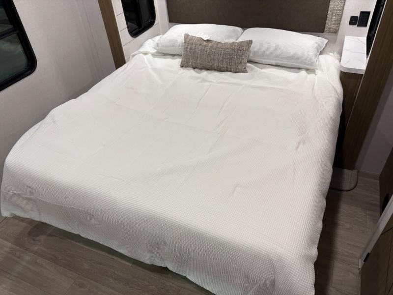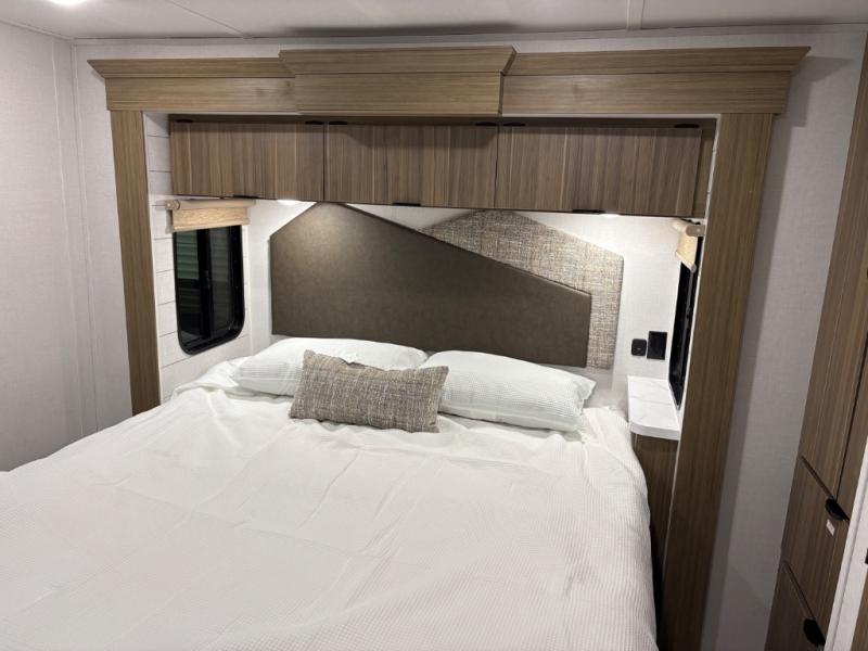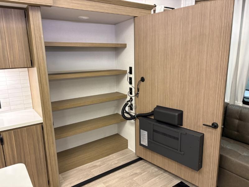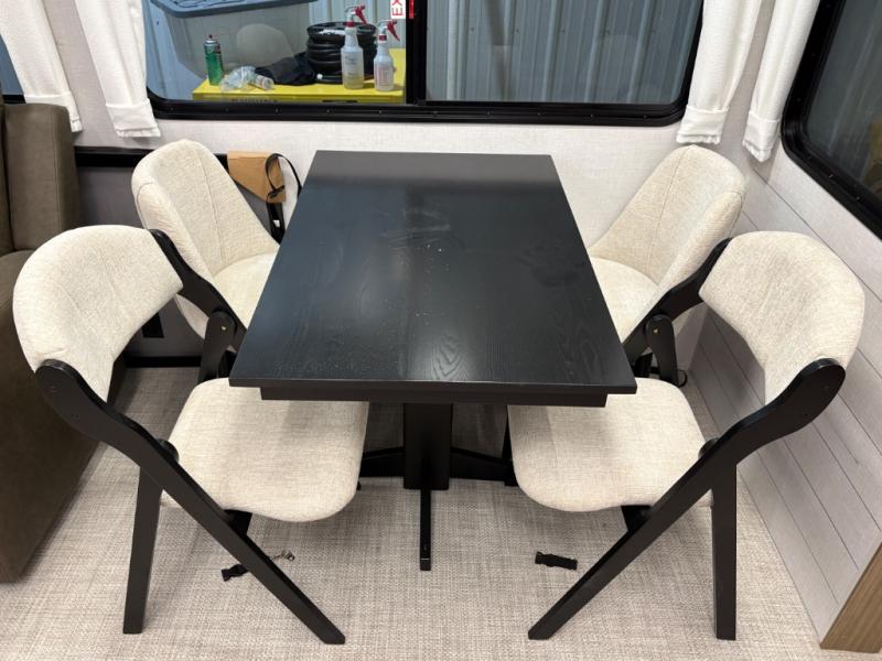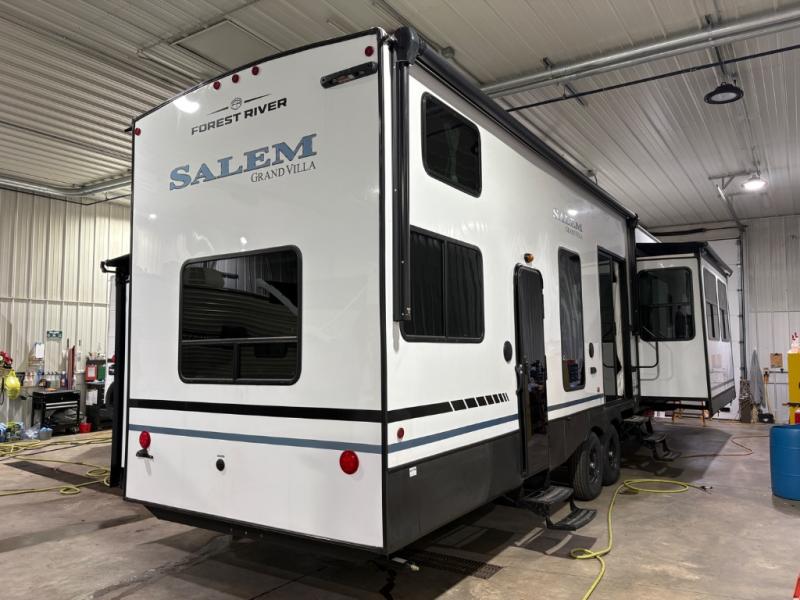 With any Salem Grand Villa destination trailer by Forest River, you can call home wherever you park it! There is a heated and enclosed Accessibelly for added protection, LED "Blade Lighting" under the awning, Lippert On-The-Go ladder prep, plus many more exterior conveniences. Elegant curtain rods and curtains will have you feeling right at home, along with stainless steel kitchen appliances, stylish roller shades, and enhanced floating shelves for added storage. Each model includes heavy duty cabinet hinges for safety and durability, a 60k on-demand tankless water heater for endless hot showers, a JBL 3-Zone media center, plus available options to further customize your trailer.