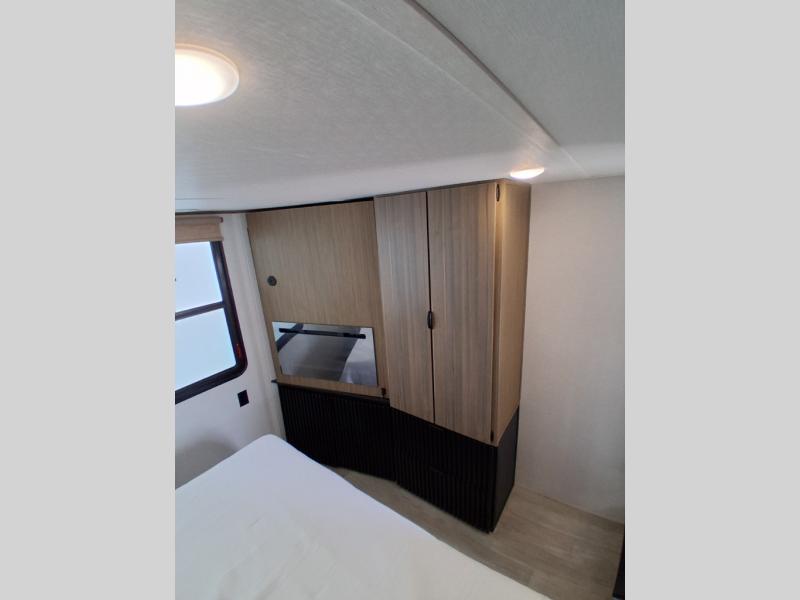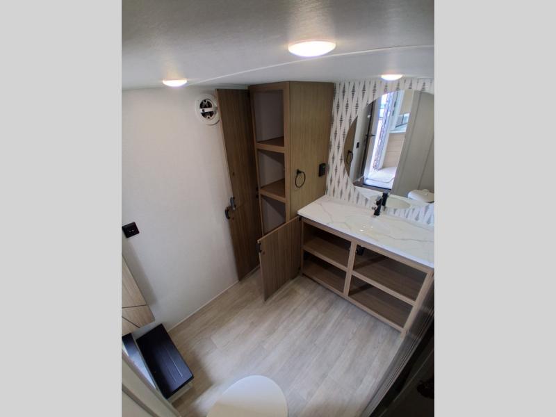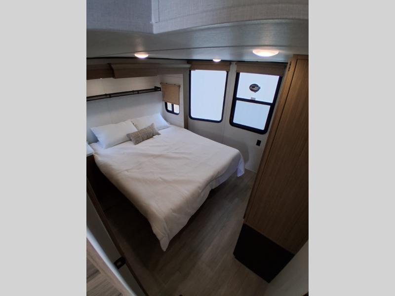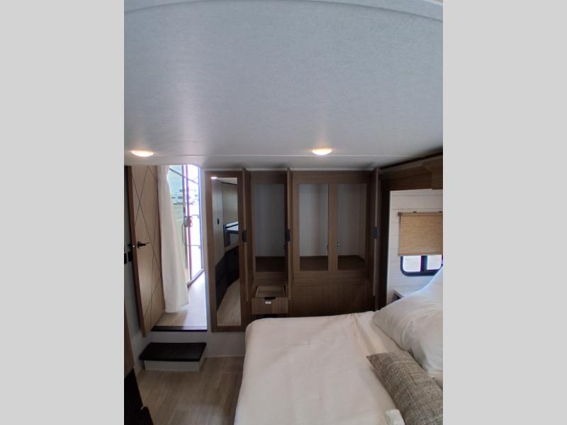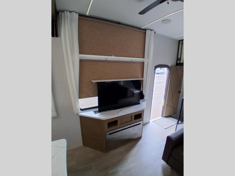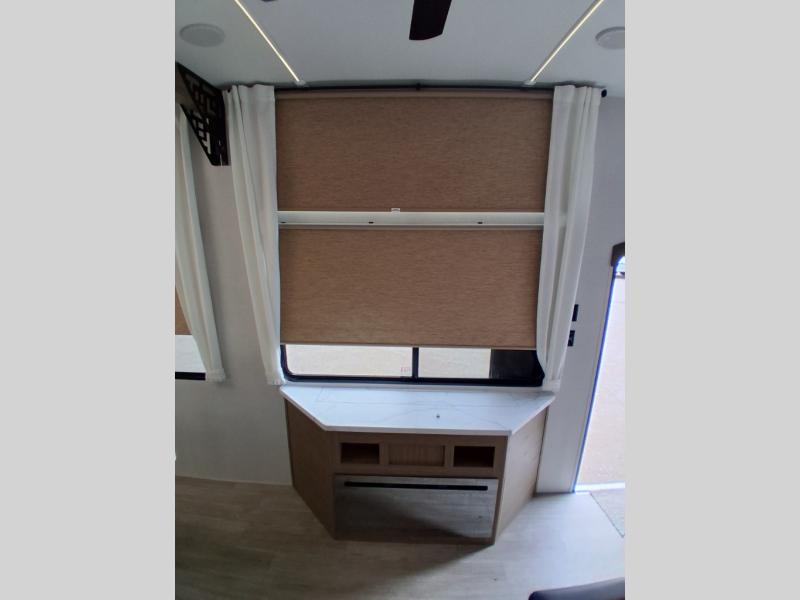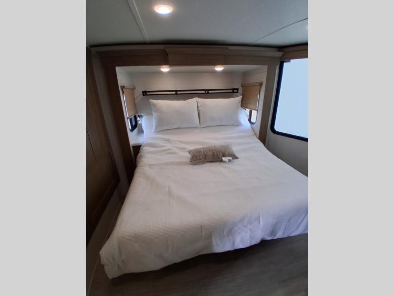 With any Salem Grand Villa destination trailer by Forest River, you can call home wherever you park it! There is a heated and enclosed Accessibelly for added protection, LED "Blade Lighting" under the awning, Lippert On-The-Go ladder prep, plus many more exterior conveniences. Elegant curtain rods and curtains will have you feeling right at home, along with stainless steel kitchen appliances, stylish roller shades, and enhanced floating shelves for added storage. Each model includes heavy duty cabinet hinges for safety and durability, a 60k on-demand tankless water heater for endless hot showers, a JBL 3-Zone media center, plus available options to further customize your trailer.
