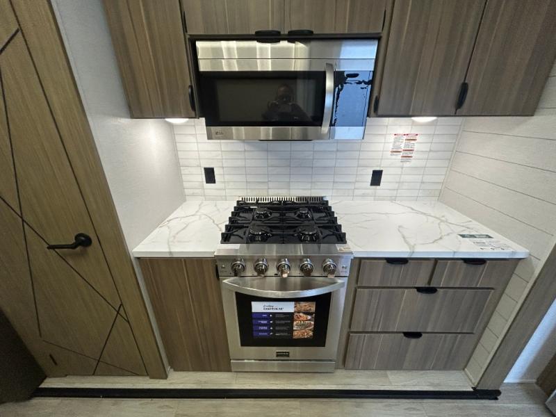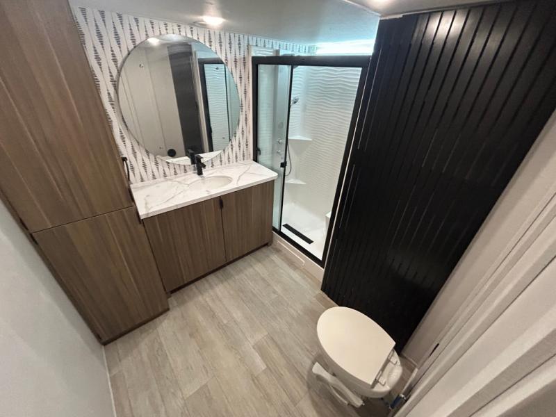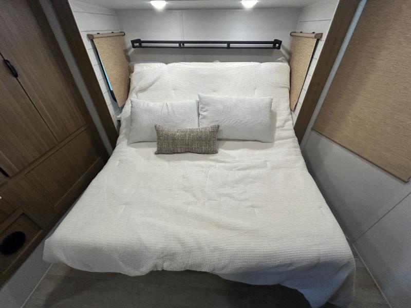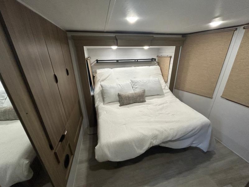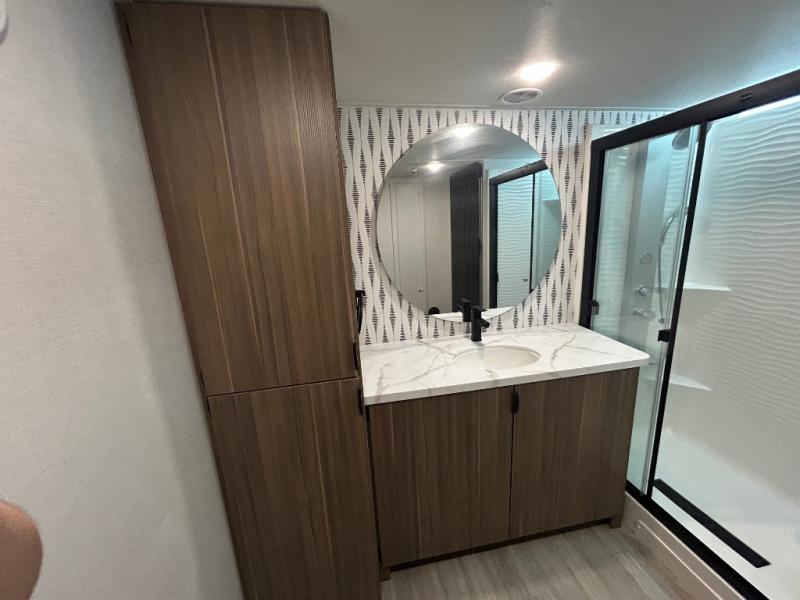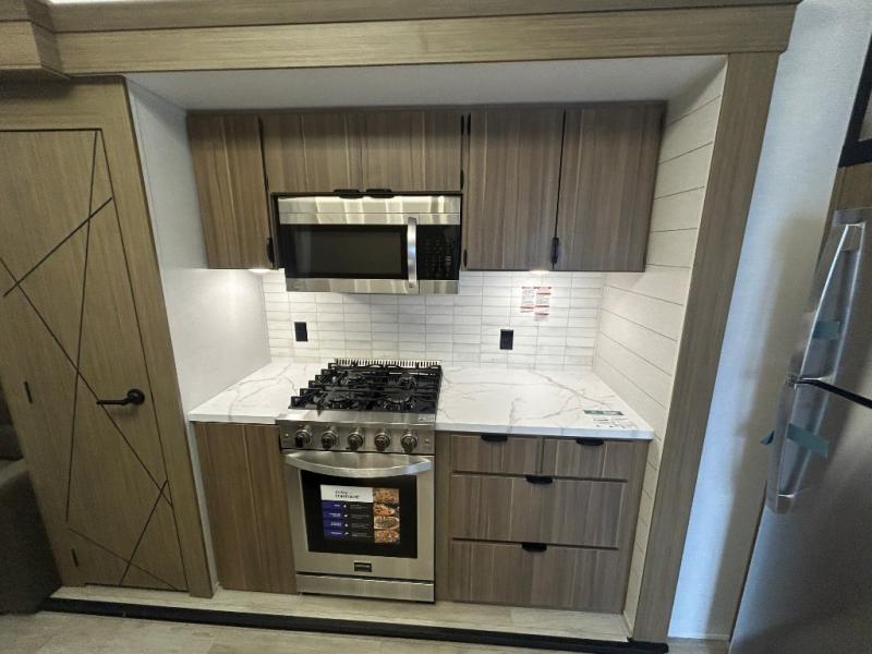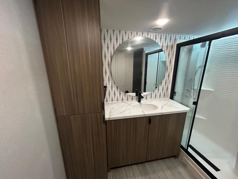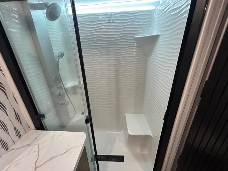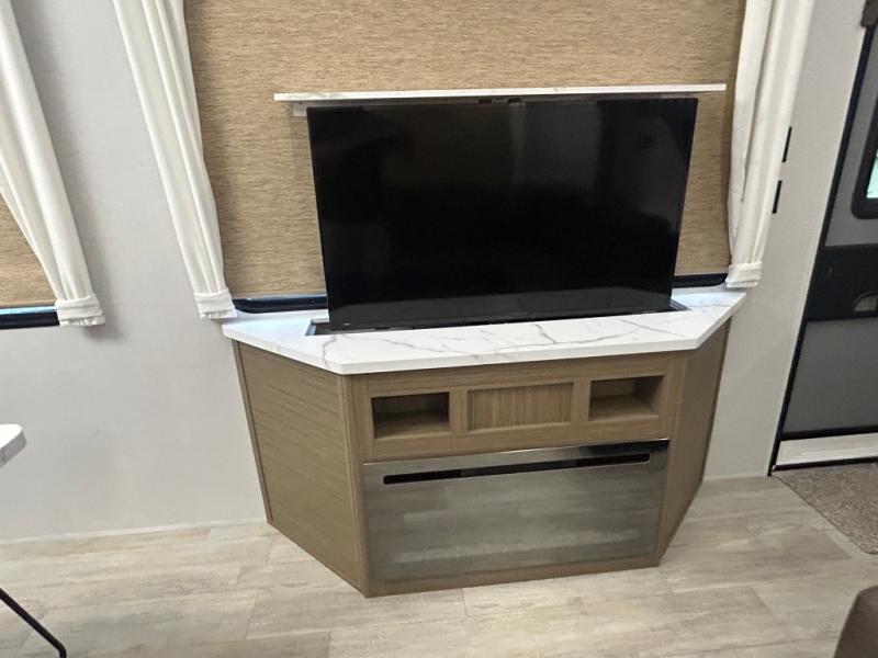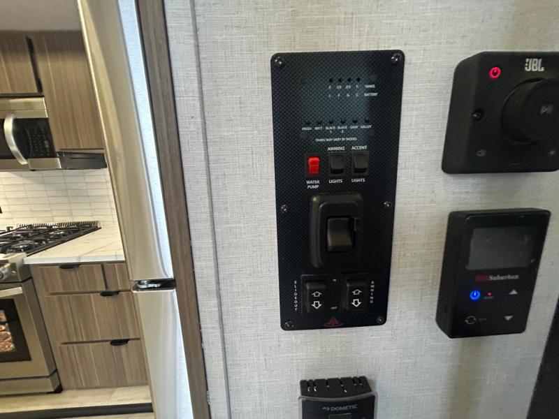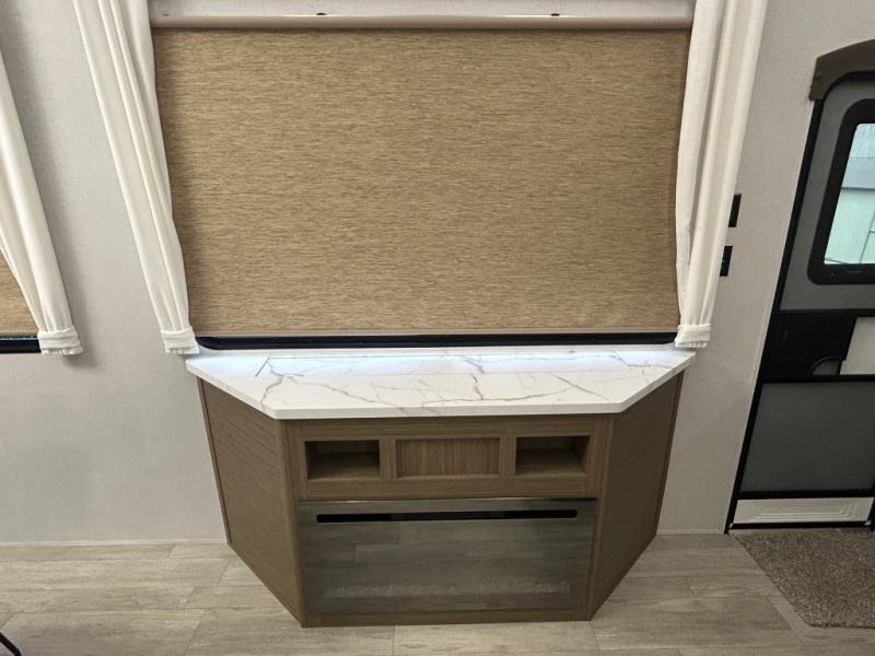 With any Salem Grand Villa destination trailer by Forest River, you can call home wherever you park it! There is a heated and enclosed Accessibelly for added protection in all seasons, LED "Blade Lighting" under the awning, Lippert On-The-Go ladder prep, plus many more exterior conveniences. Elegant curtain rods and curtains will have you feeling right at home, along with stainless steel kitchen appliances, stylish roller shades, and enhanced floating shelves for added storage. Each model includes a central vacuum with a sweep attachment to help keep your space tidy, a 60k on-demand tankless water heater for endless hot showers, a JBL 3-Zone media center, plus available options to further customize your trailer.