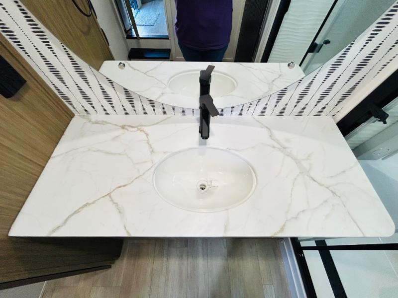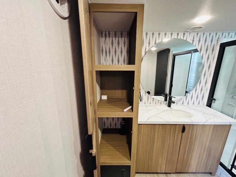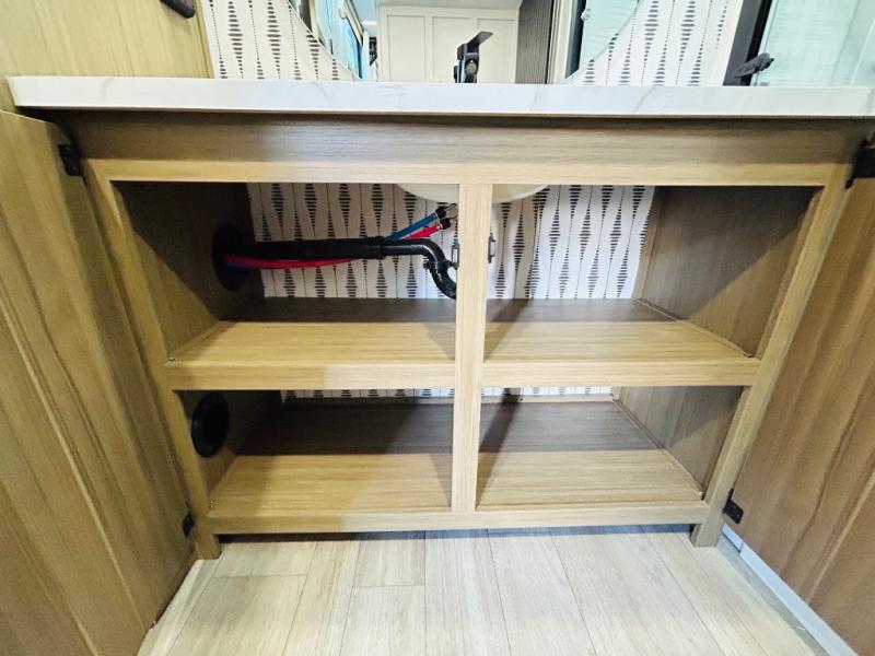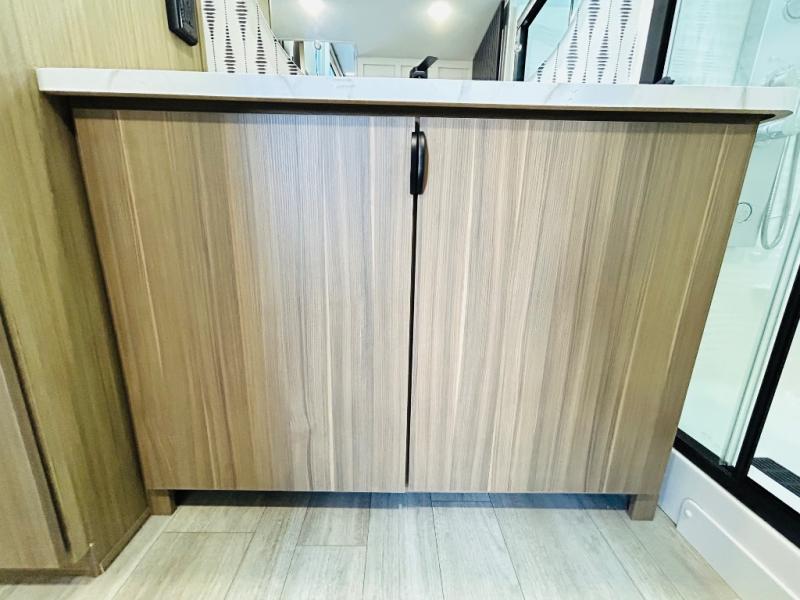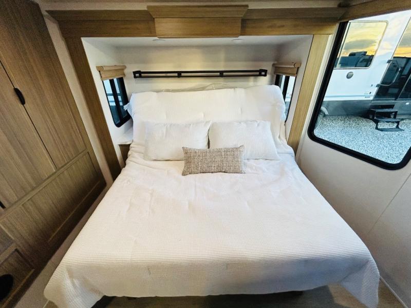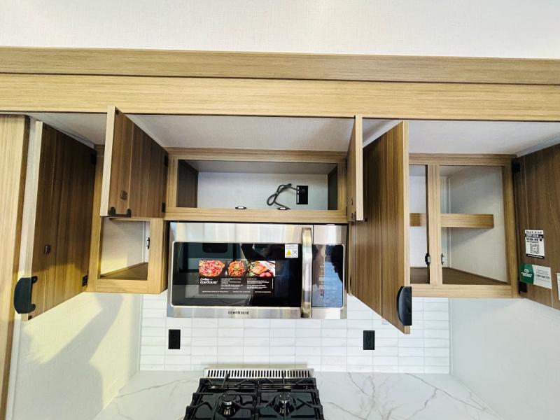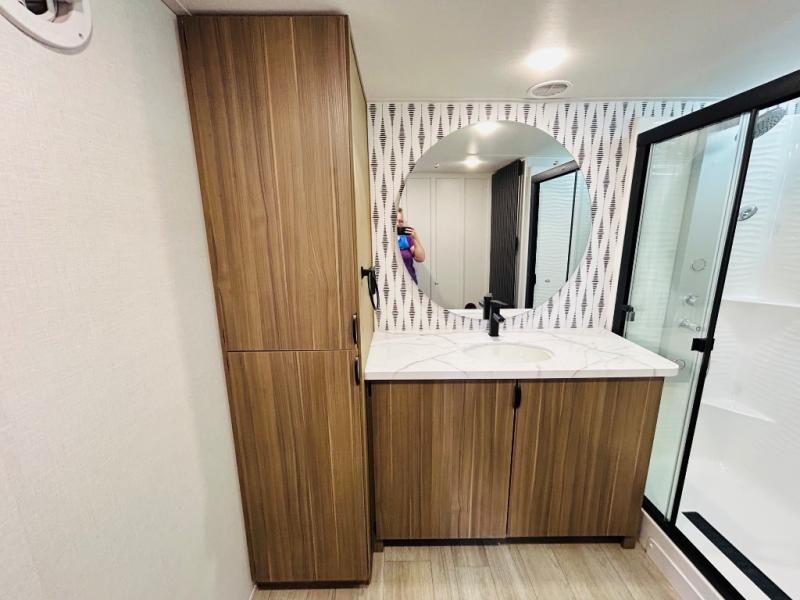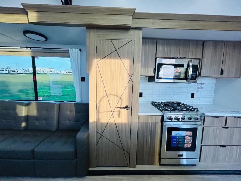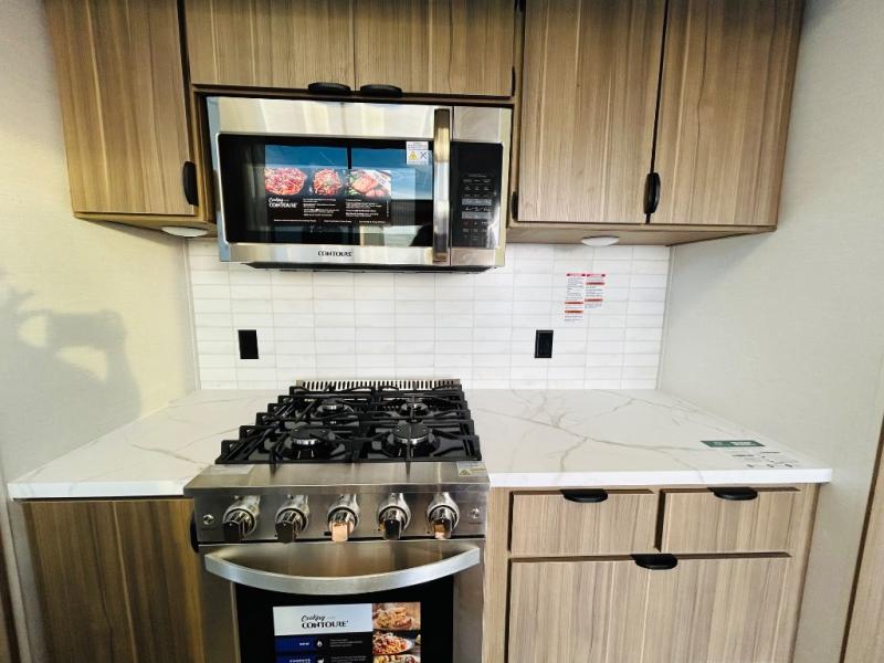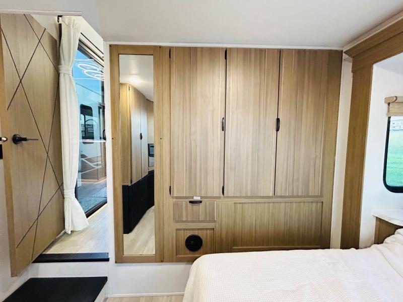 With any Salem Grand Villa destination trailer by Forest River, you can call home wherever you park it! There is a heated and enclosed Accessibelly for added protection, LED "Blade Lighting" under the awning, Lippert On-The-Go ladder prep, plus many more exterior conveniences. Elegant curtain rods and curtains will have you feeling right at home, along with stainless steel kitchen appliances, stylish roller shades, and enhanced floating shelves for added storage. Each model includes heavy duty cabinet hinges for safety and durability, a 60k on-demand tankless water heater for endless hot showers, a JBL 3-Zone media center, plus available options to further customize your trailer.