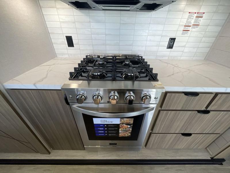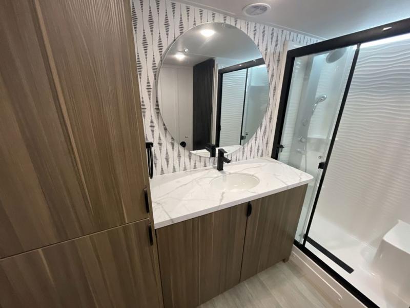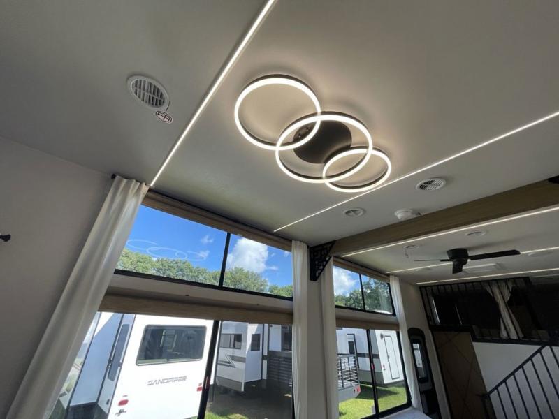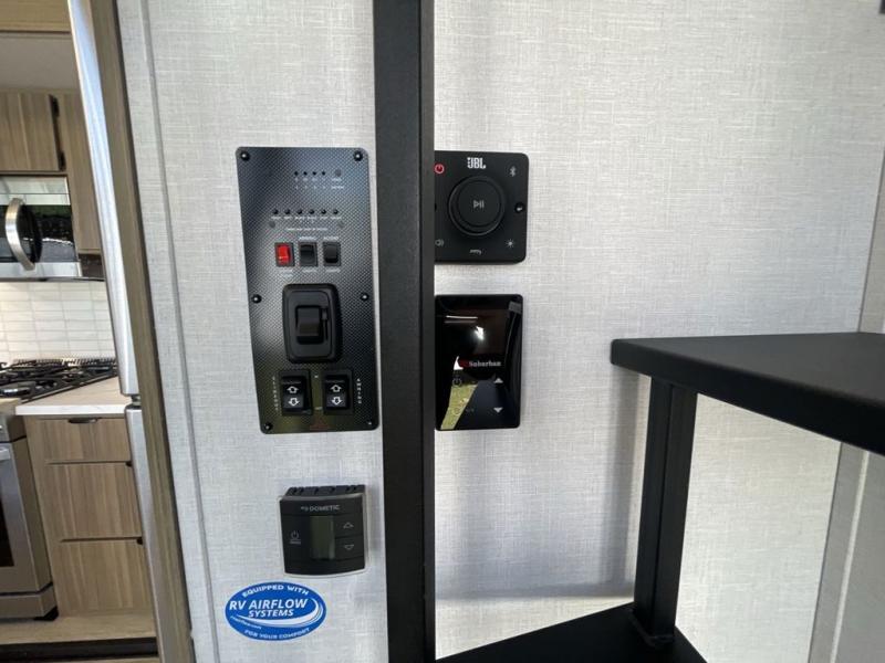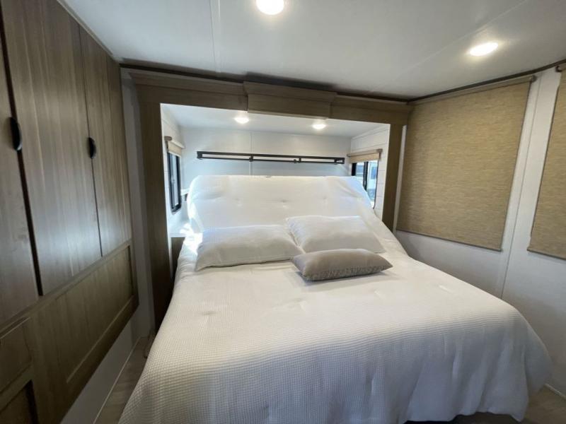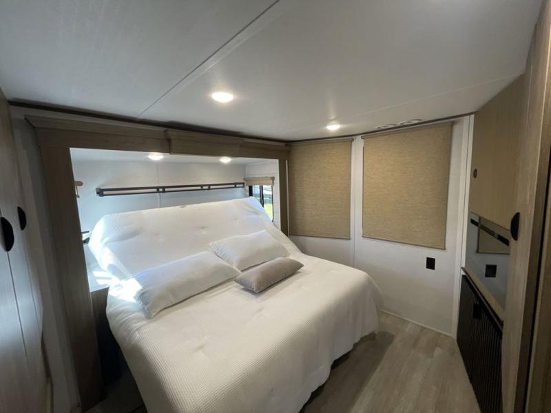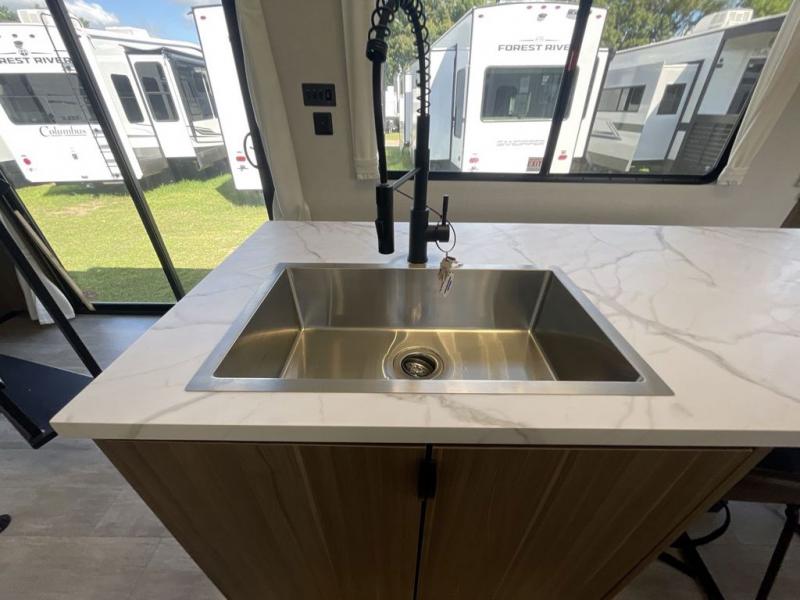 With any Salem Grand Villa destination trailer by Forest River, you can call home wherever you park it! There is a heated and enclosed Accessibelly for added protection, LED "Blade Lighting" under the awning, Lippert On-The-Go ladder prep, plus many more exterior conveniences. Elegant curtain rods and curtains will have you feeling right at home, along with stainless steel kitchen appliances, stylish roller shades, and enhanced floating shelves for added storage. Each model includes heavy duty cabinet hinges for safety and durability, a 60k on-demand tankless water heater for endless hot showers, a JBL 3-Zone media center, plus available options to further customize your trailer.