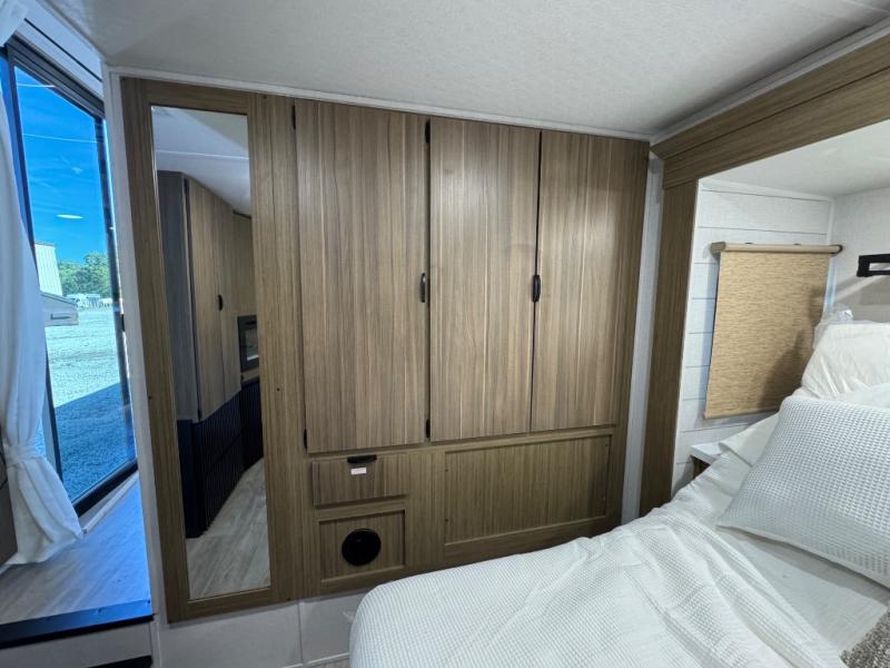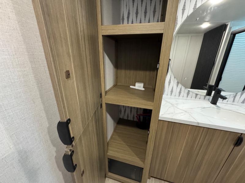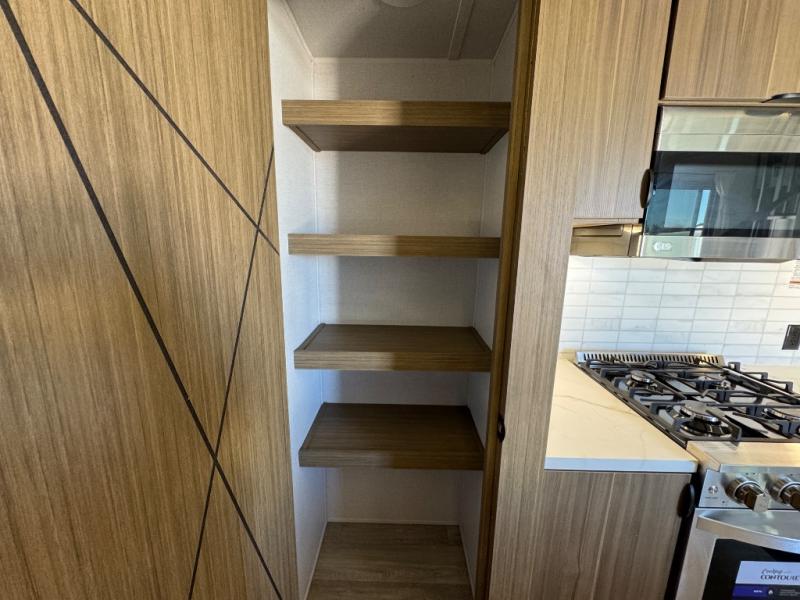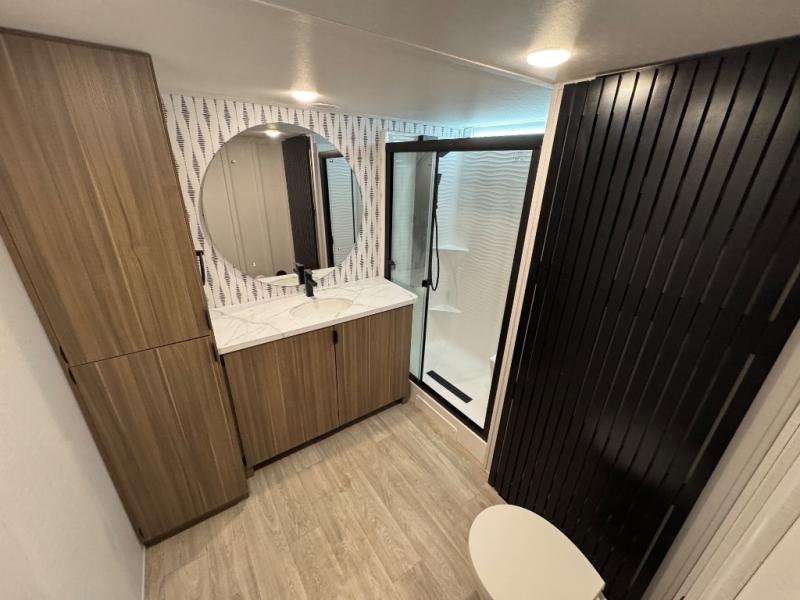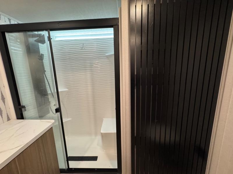 With any Salem Grand Villa destination trailer by Forest River, you can call home wherever you park it! There is a heated and enclosed Accessibelly for added protection, LED "Blade Lighting" under the awning, Lippert On-The-Go ladder prep, plus many more exterior conveniences. Elegant curtain rods and curtains will have you feeling right at home, along with stainless steel kitchen appliances, stylish roller shades, and enhanced floating shelves for added storage. Each model includes heavy duty cabinet hinges for safety and durability, a 60k on-demand tankless water heater for endless hot showers, a JBL 3-Zone media center, plus available options to further customize your trailer.