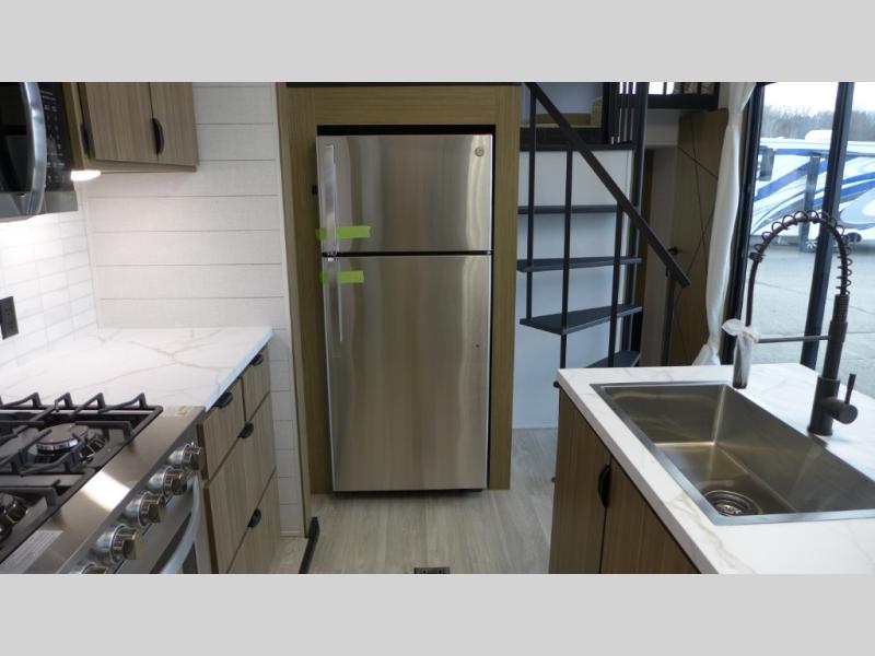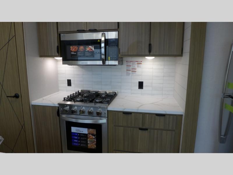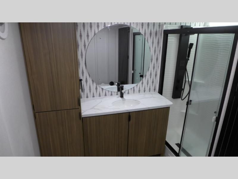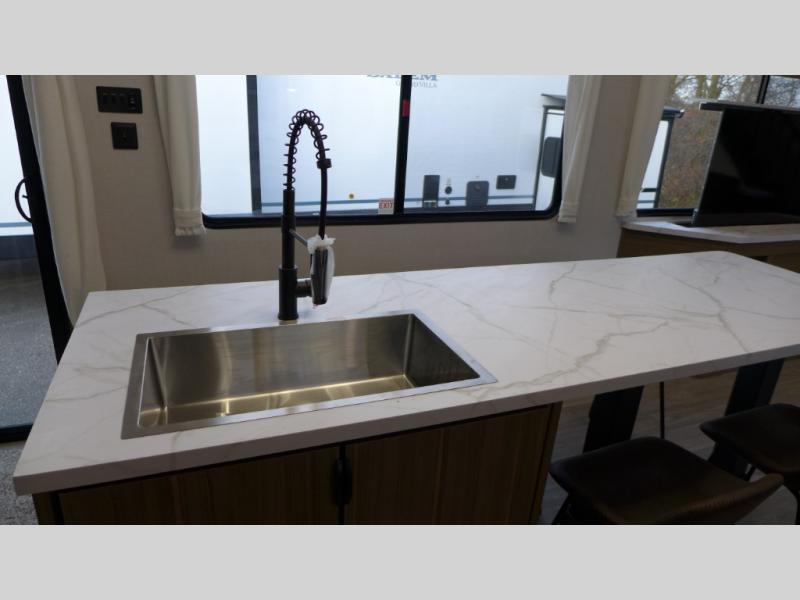 With any Salem Grand Villa destination trailer by Forest River, you can call home wherever you park it! There is a heated and enclosed Accessibelly for added protection, LED "Blade Lighting" under the awning, Lippert On-The-Go ladder prep, plus many more exterior conveniences. Elegant curtain rods and curtains will have you feeling right at home, along with stainless steel kitchen appliances, stylish roller shades, and enhanced floating shelves for added storage. Each model includes heavy duty cabinet hinges for safety and durability, a 60k on-demand tankless water heater for endless hot showers, a JBL 3-Zone media center, plus available options to further customize your trailer.