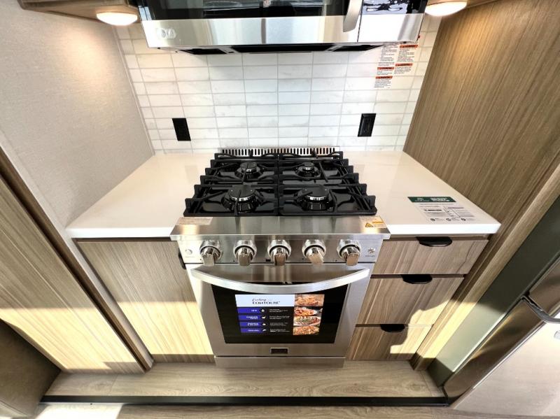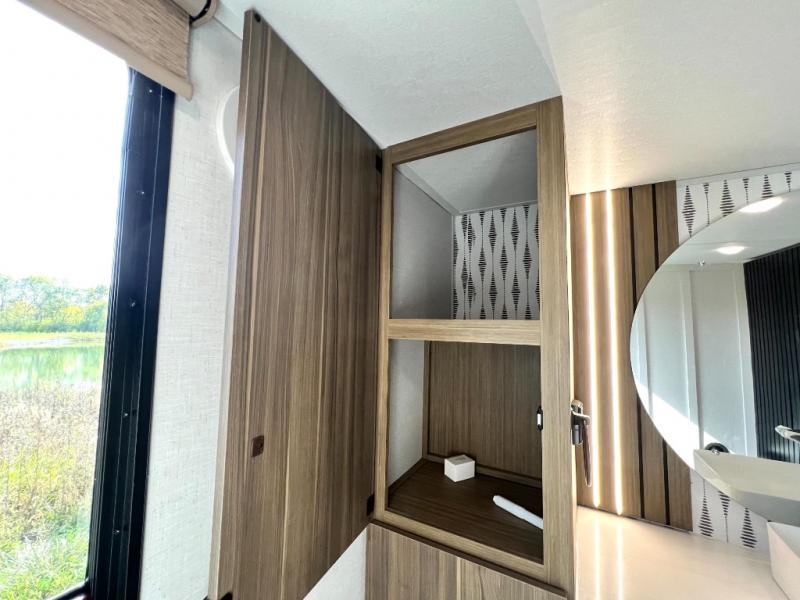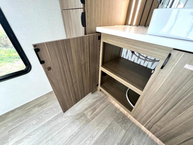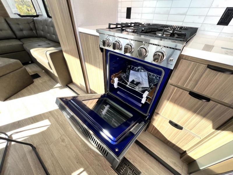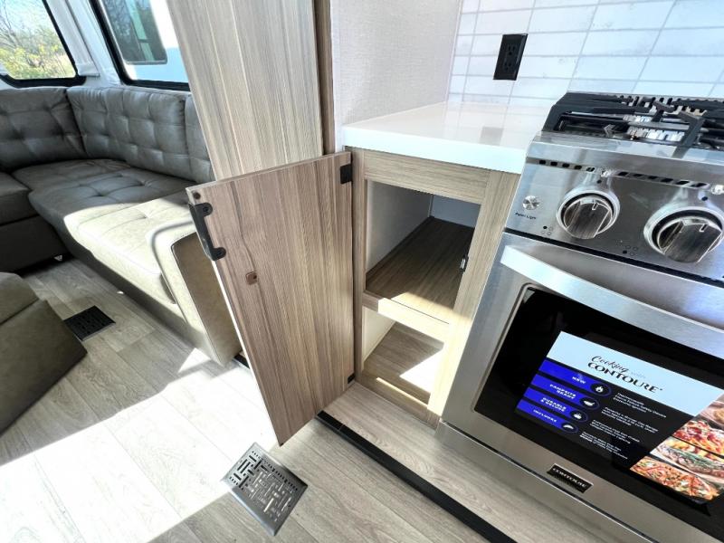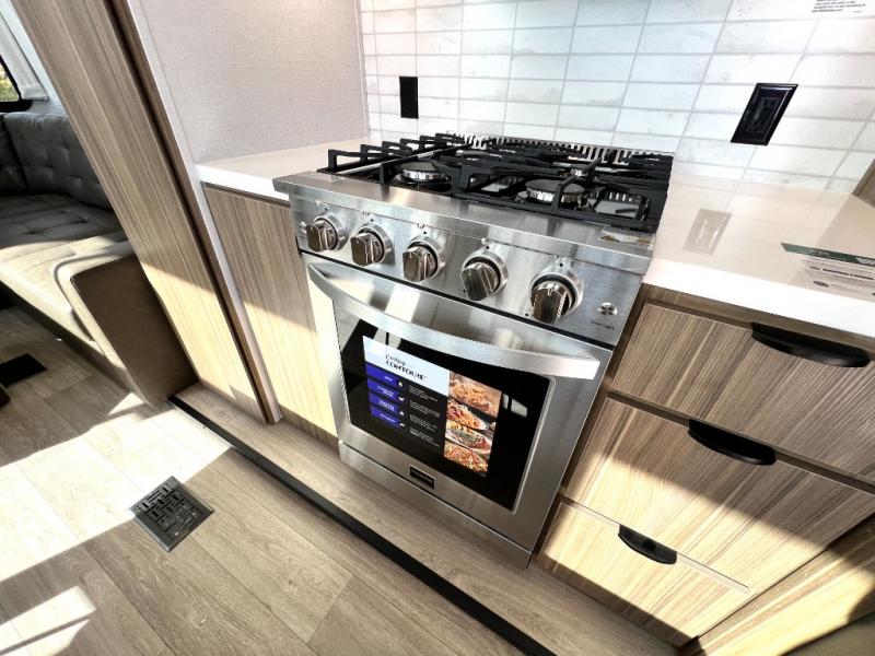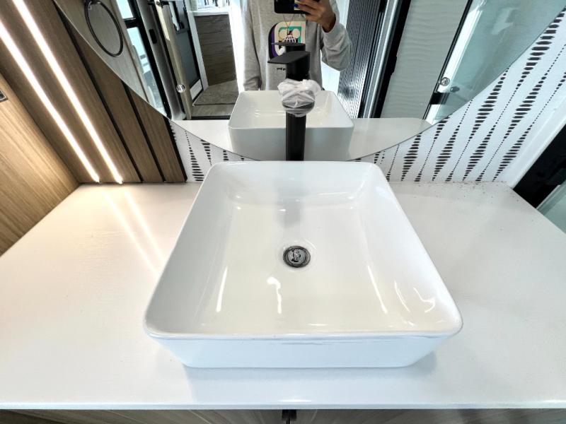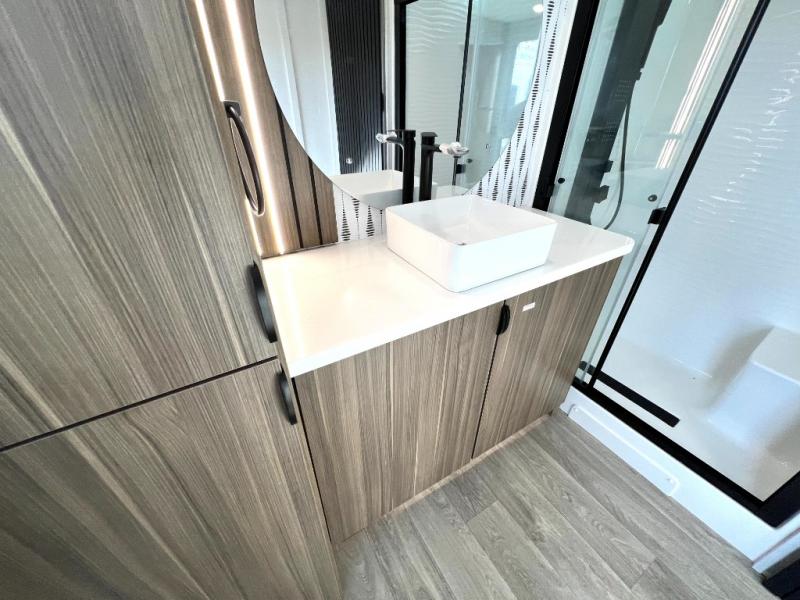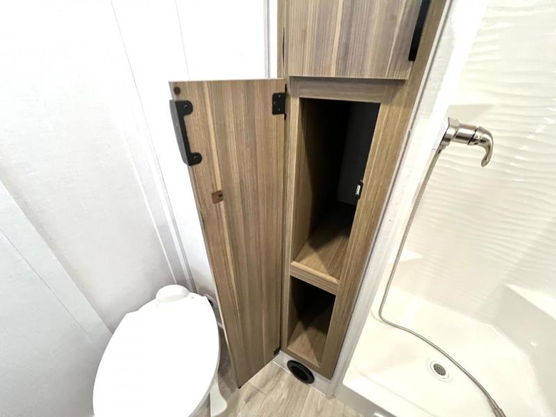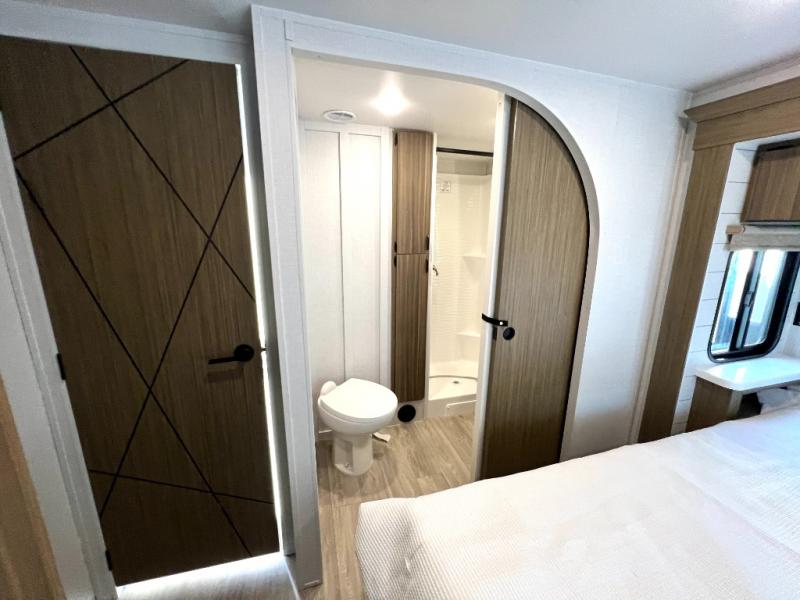With any Salem Grand Villa destination trailer by Forest River, you can call home wherever you park it! There is a heated and enclosed Accessibelly for added protection, LED "Blade Lighting" under the awning, Lippert On-The-Go ladder prep, plus many more exterior conveniences. Elegant curtain rods and curtains will have you feeling right at home, along with stainless steel kitchen appliances, stylish roller shades, and enhanced floating shelves for added storage. Each model includes heavy duty cabinet hinges for safety and durability, a 60k on-demand tankless water heater for endless hot showers, a JBL 3-Zone media center, plus available options to further customize your trailer.