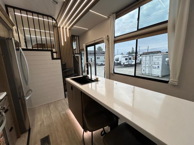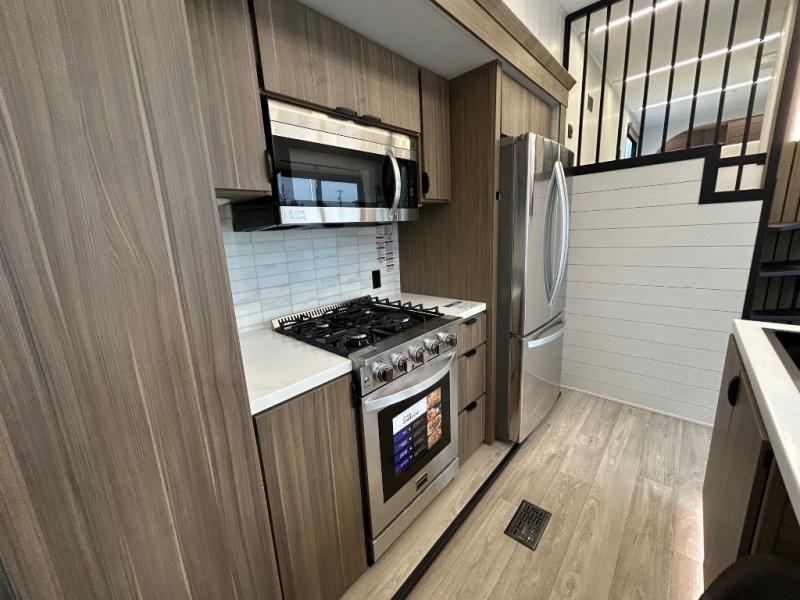 Built for all-season comfort and convenience, every Grand Villa includes an enclosed and heated Accessibelly, LED awning lighting, Lippert ladder prep, and more. Inside, enjoy touches like roller shades, elegant curtain rods, floating storage shelves, and a JBL 3-Zone media center. Keep things tidy with the central vacuum system and enjoy endless hot water thanks to the 60,000 BTU on-demand tankless water heater.