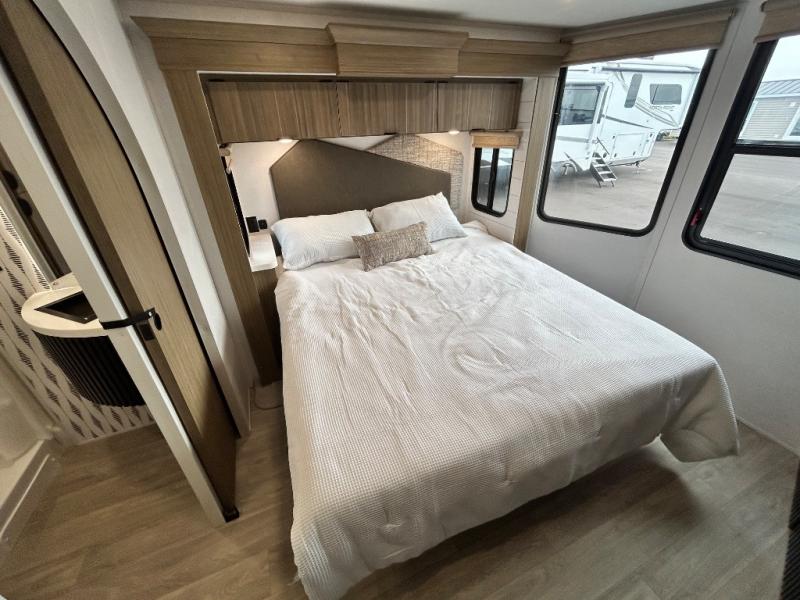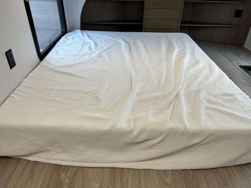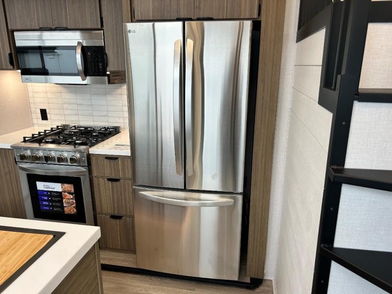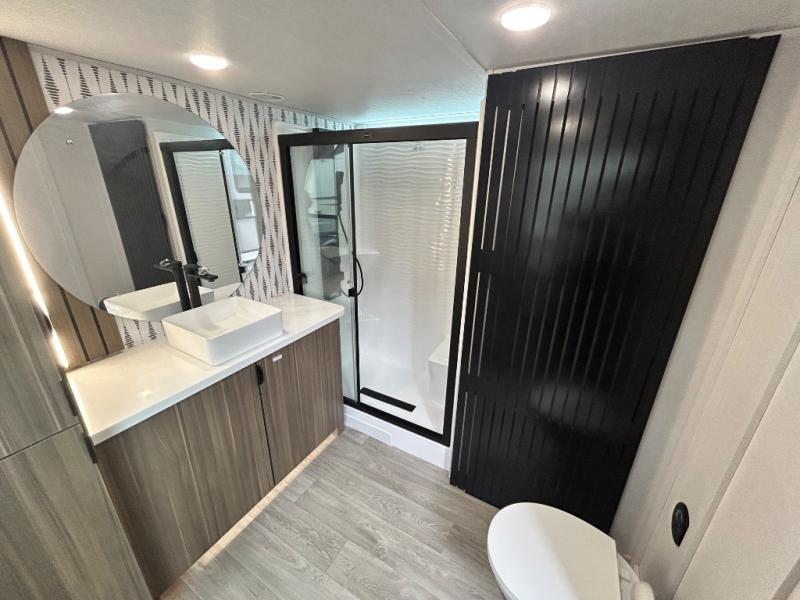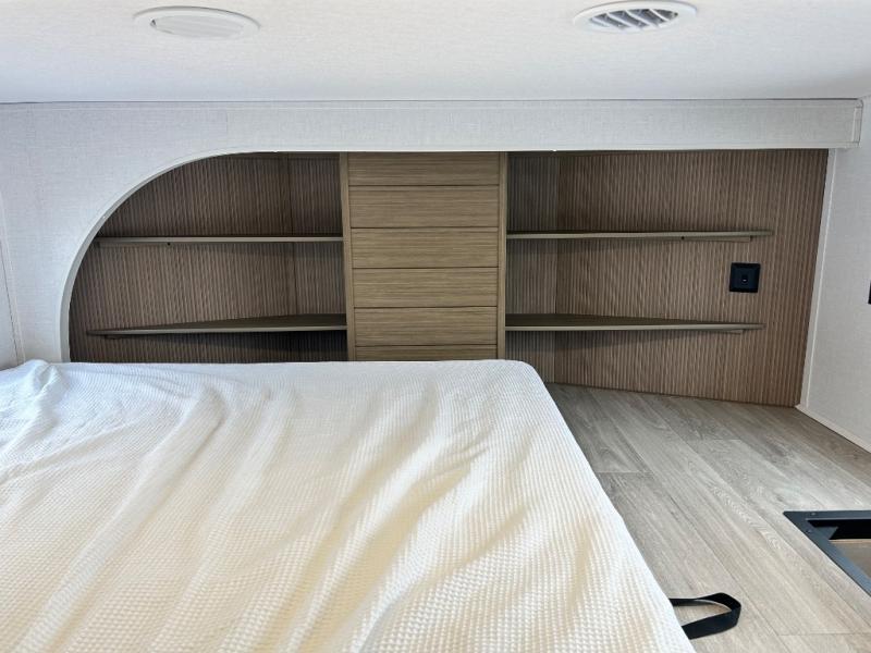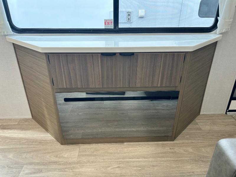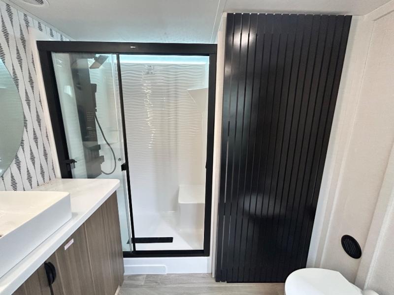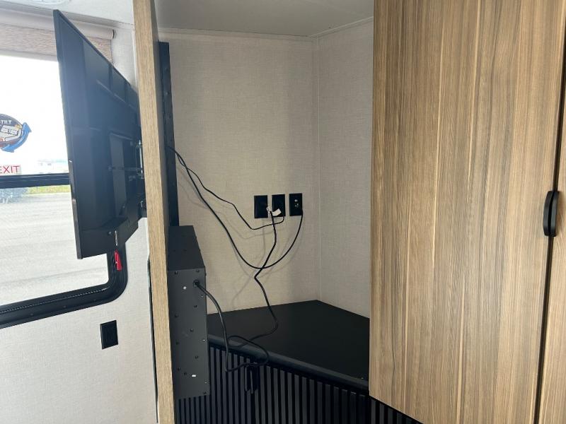 With any Salem Grand Villa destination trailer by Forest River, you can call home wherever you park it! There is a heated and enclosed Accessibelly for added protection, LED "Blade Lighting" under the awning, Lippert On-The-Go ladder prep, plus many more exterior conveniences. Elegant curtain rods and curtains will have you feeling right at home, along with stainless steel kitchen appliances, stylish roller shades, and enhanced floating shelves for added storage. Each model includes heavy duty cabinet hinges for safety and durability, a 60k on-demand tankless water heater for endless hot showers, a JBL 3-Zone media center, plus available options to further customize your trailer.
