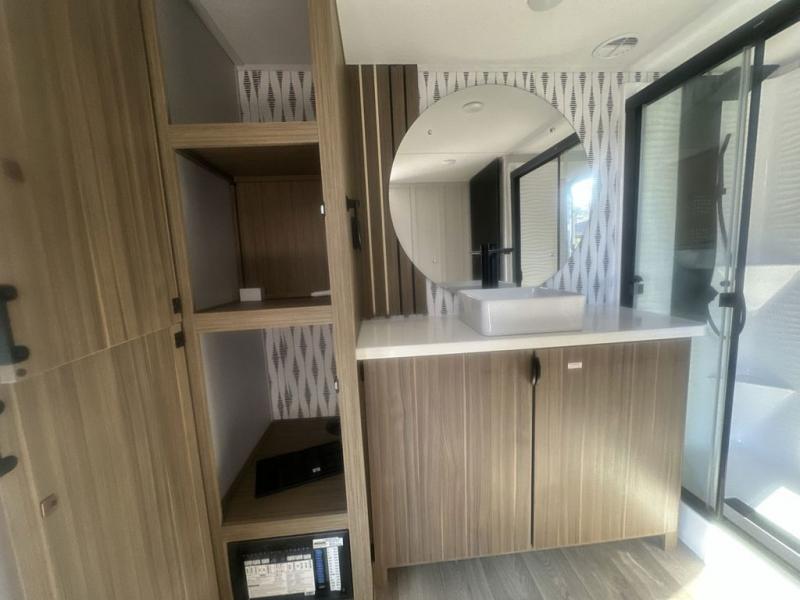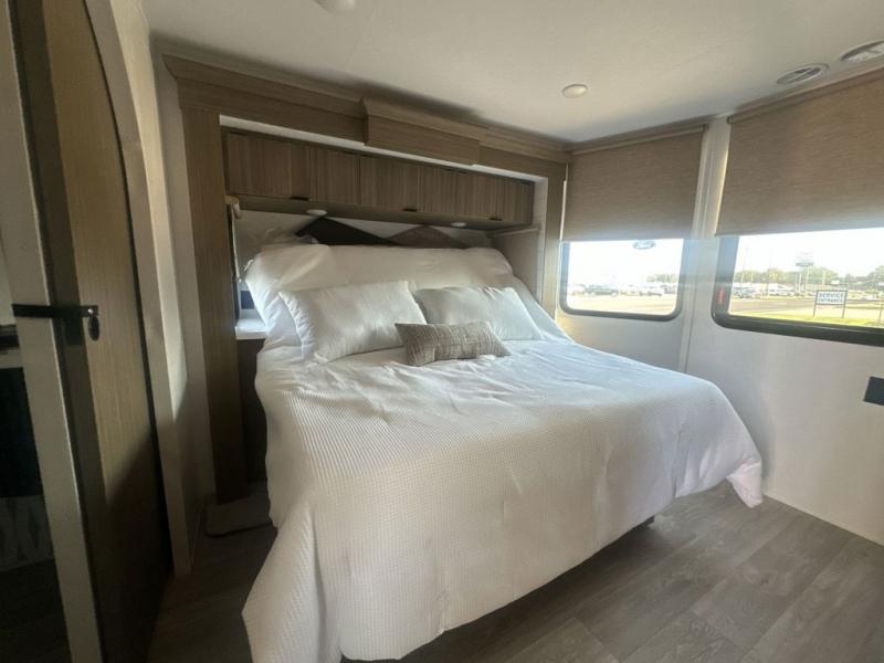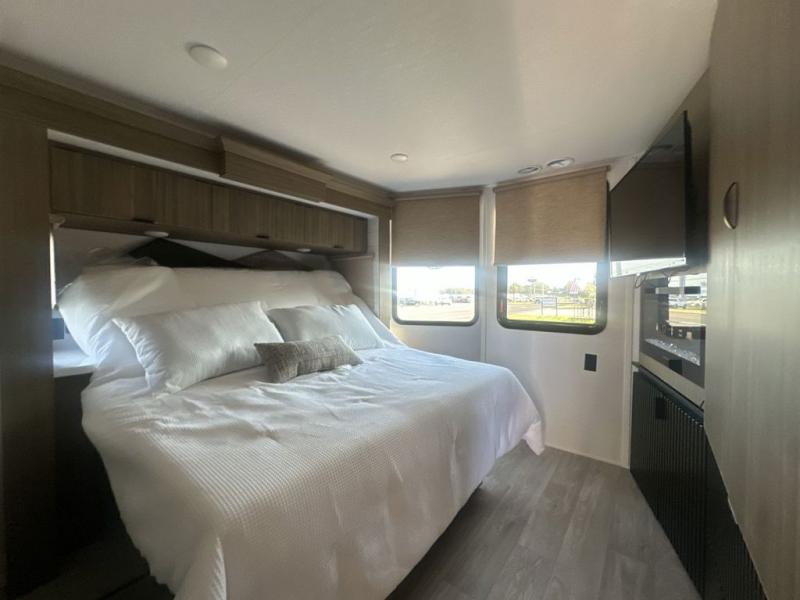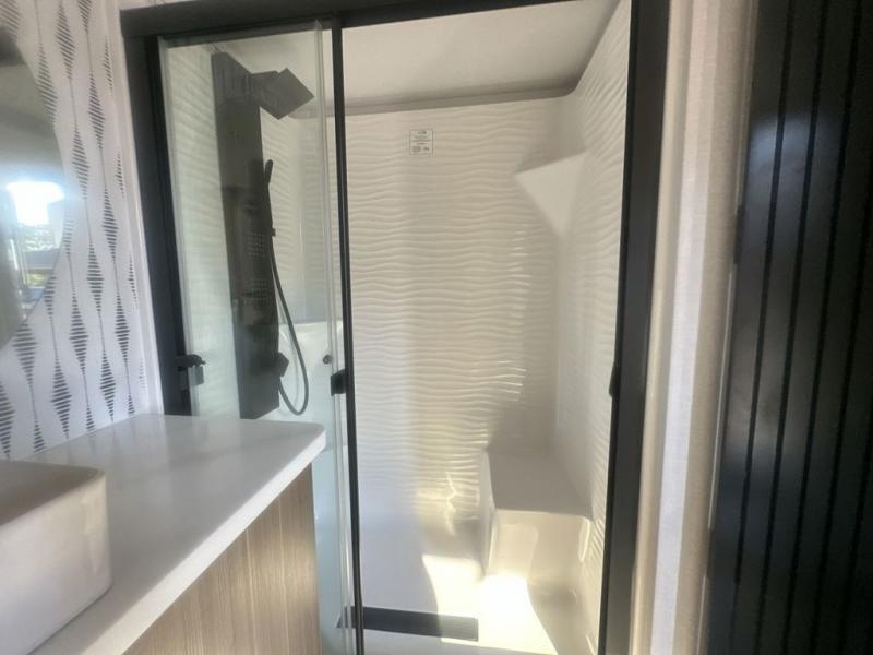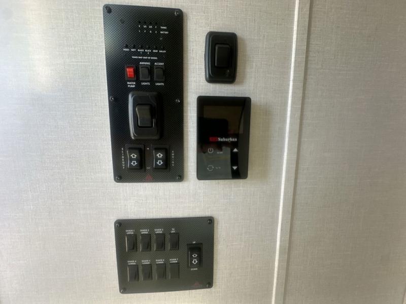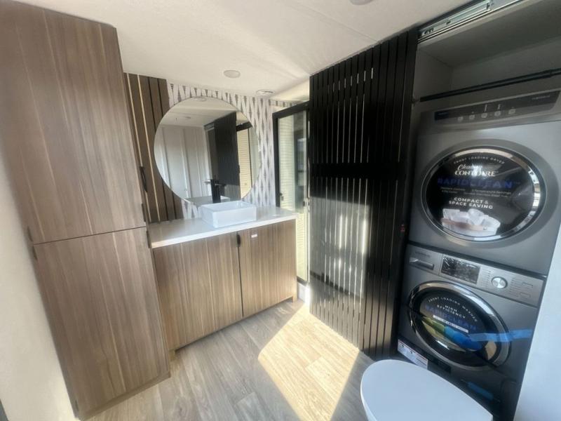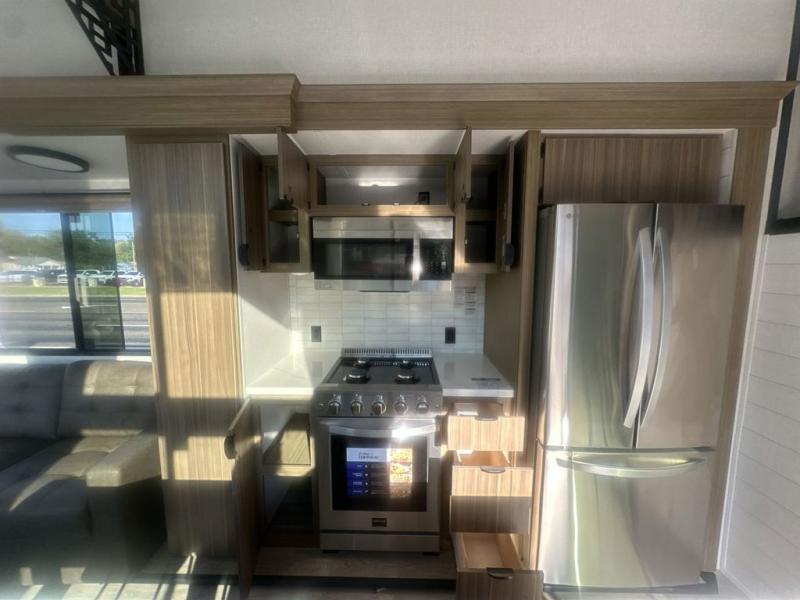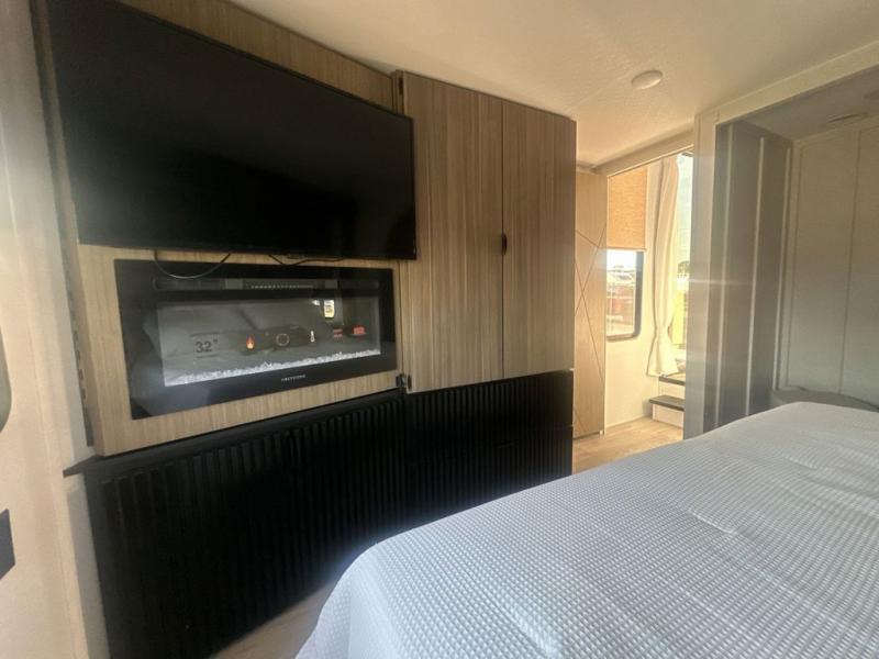 With any Salem Grand Villa destination trailer by Forest River, you can call home wherever you park it! There is a heated and enclosed Accessibelly for added protection, LED "Blade Lighting" under the awning, Lippert On-The-Go ladder prep, plus many more exterior conveniences. Elegant curtain rods and curtains will have you feeling right at home, along with stainless steel kitchen appliances, stylish roller shades, and enhanced floating shelves for added storage. Each model includes heavy duty cabinet hinges for safety and durability, a 60k on-demand tankless water heater for endless hot showers, a JBL 3-Zone media center, plus available options to further customize your trailer.