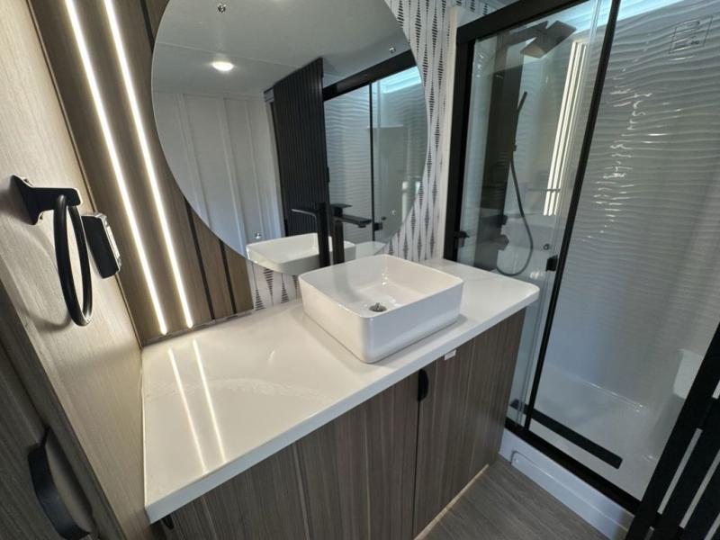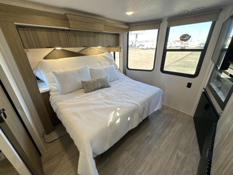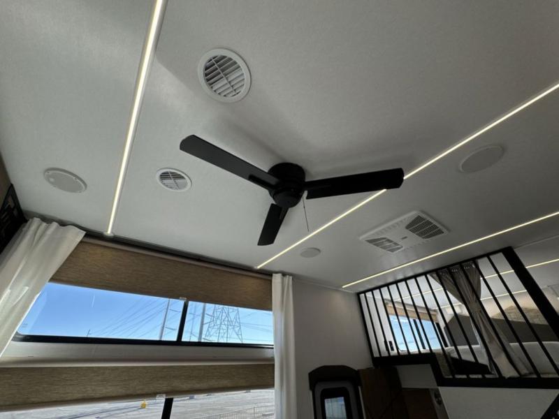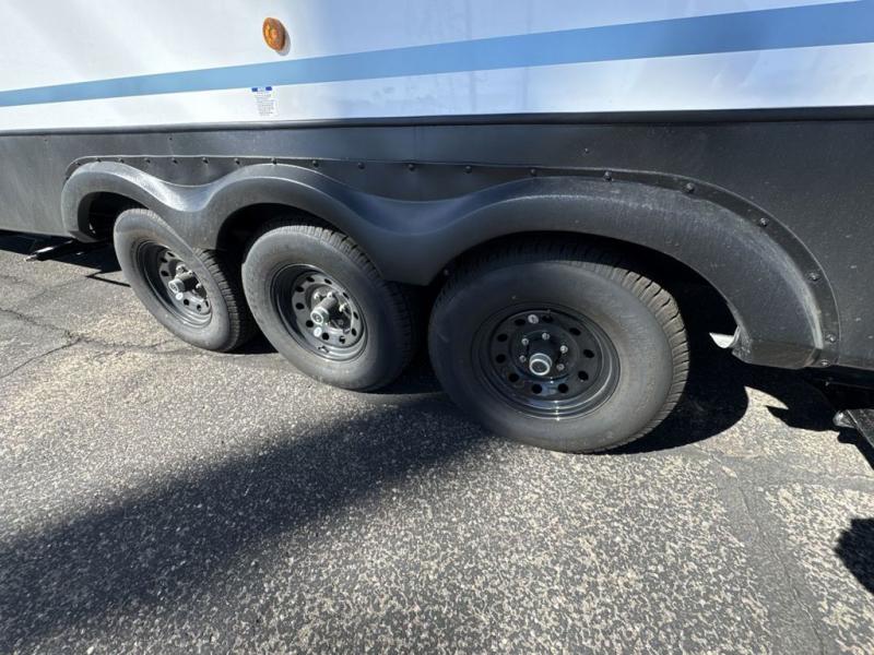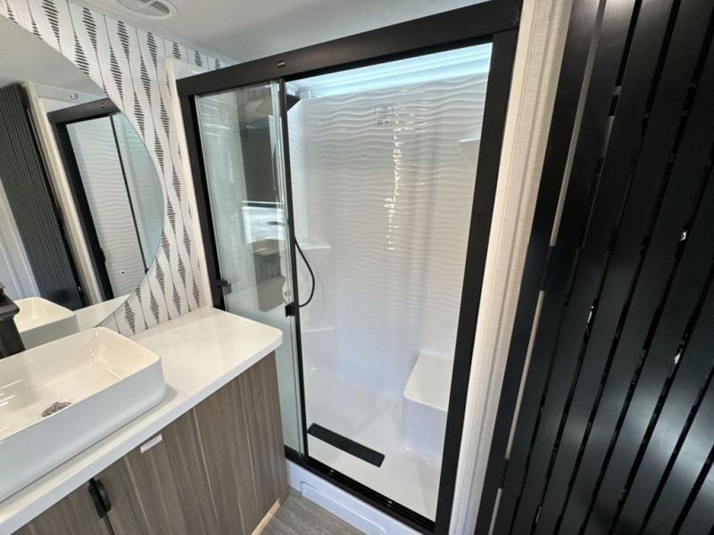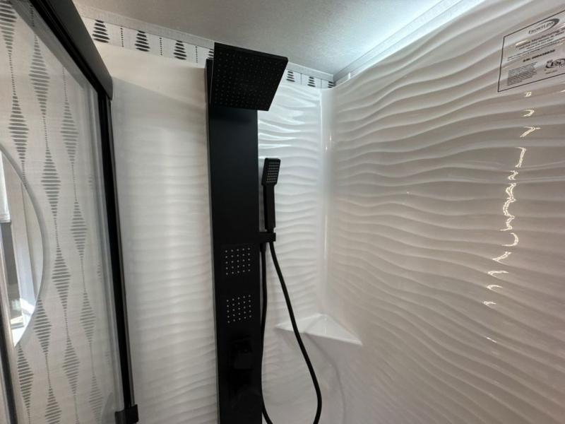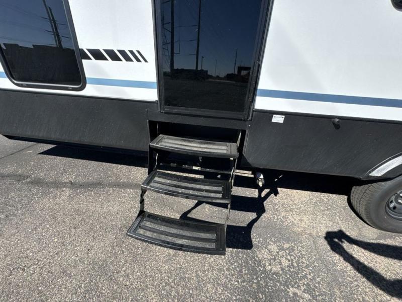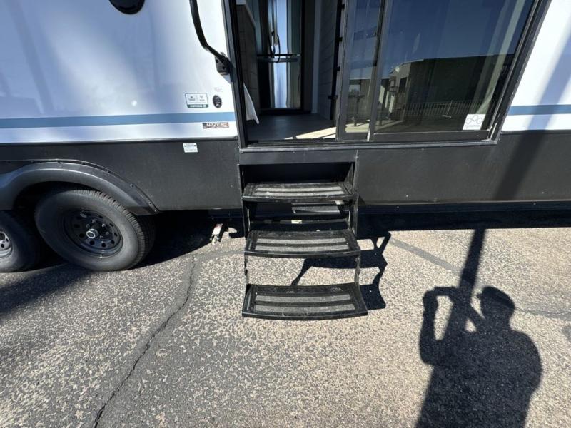 With any Salem Grand Villa destination trailer by Forest River, you can call home wherever you park it! There is a heated and enclosed Accessibelly for added protection, LED "Blade Lighting" under the awning, Lippert On-The-Go ladder prep, plus many more exterior conveniences. Elegant curtain rods and curtains will have you feeling right at home, along with stainless steel kitchen appliances, stylish roller shades, and enhanced floating shelves for added storage. Each model includes heavy duty cabinet hinges for safety and durability, a 60k on-demand tankless water heater for endless hot showers, a JBL 3-Zone media center, plus available options to further customize your trailer.