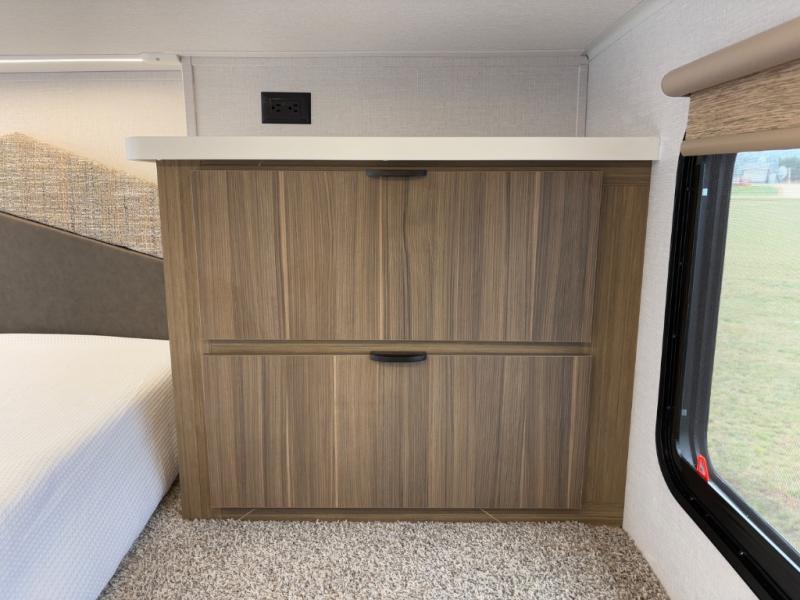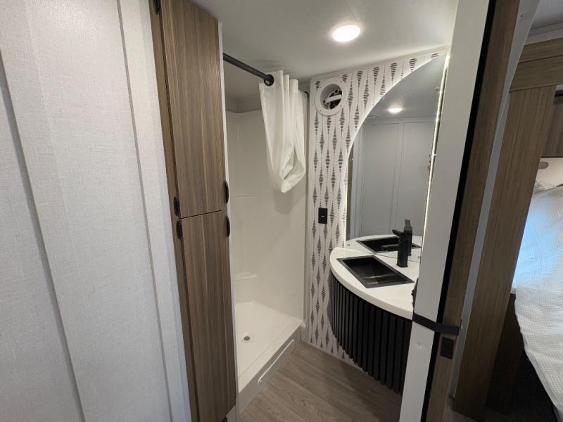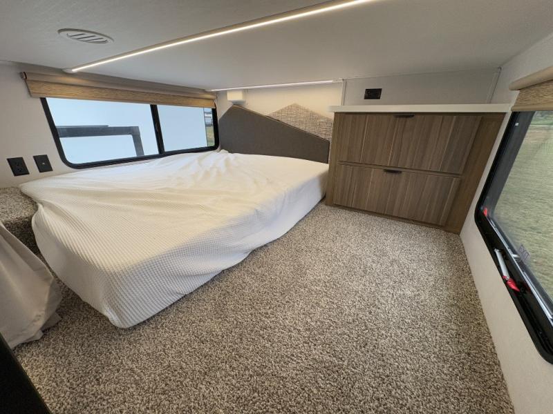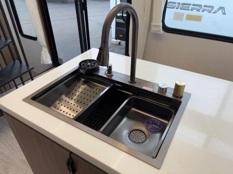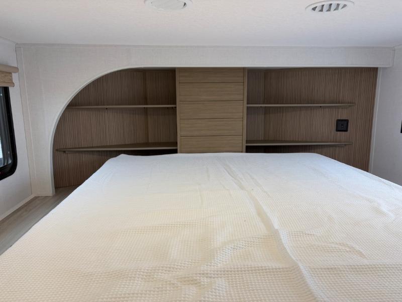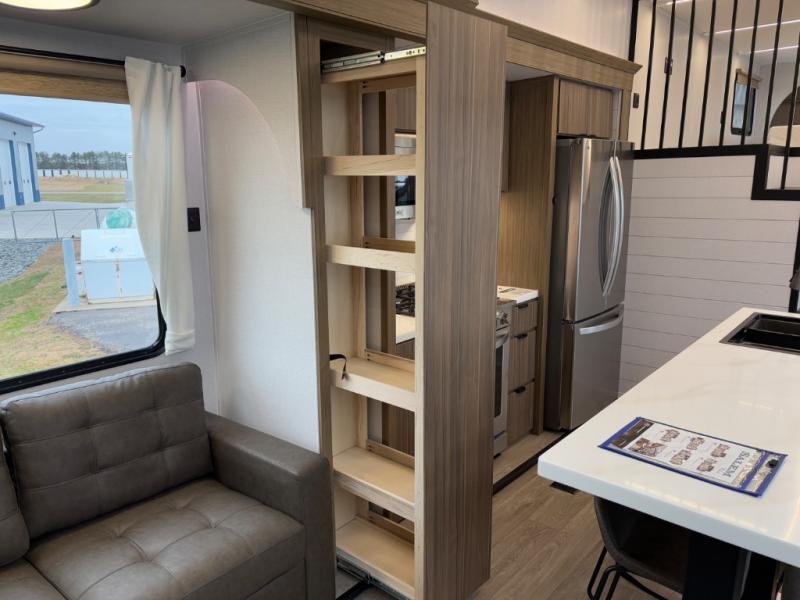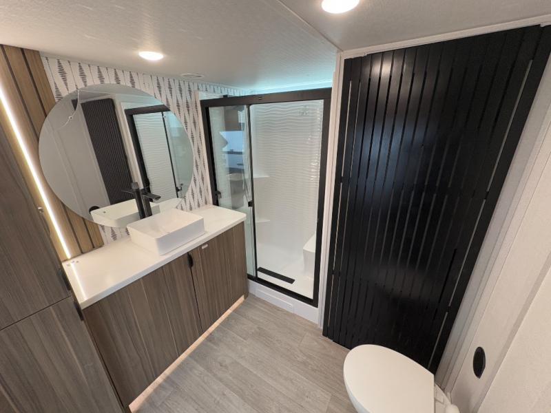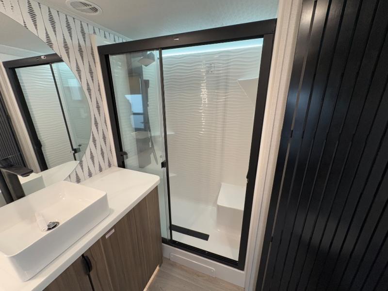 With any Salem Grand Villa destination trailer by Forest River, you can call home wherever you park it! There is a heated and enclosed Accessibelly for added protection, LED "Blade Lighting" under the awning, Lippert On-The-Go ladder prep, plus many more exterior conveniences. Elegant curtain rods and curtains will have you feeling right at home, along with stainless steel kitchen appliances, stylish roller shades, and enhanced floating shelves for added storage. Each model includes heavy duty cabinet hinges for safety and durability, a 60k on-demand tankless water heater for endless hot showers, a JBL 3-Zone media center, plus available options to further customize your trailer.