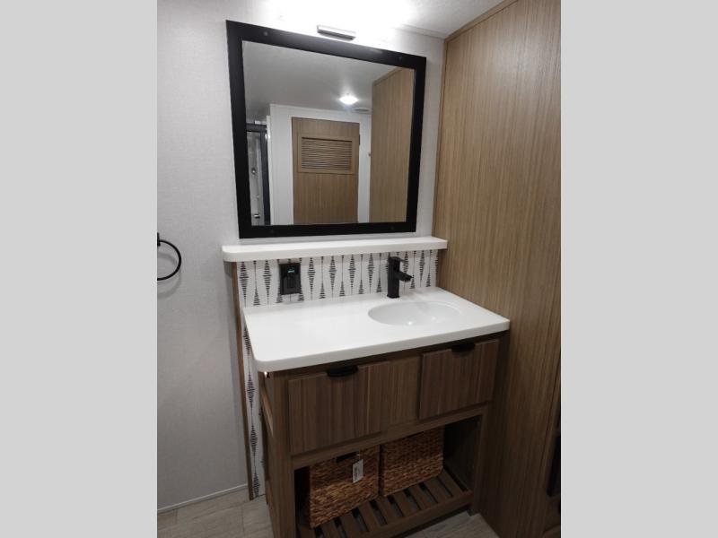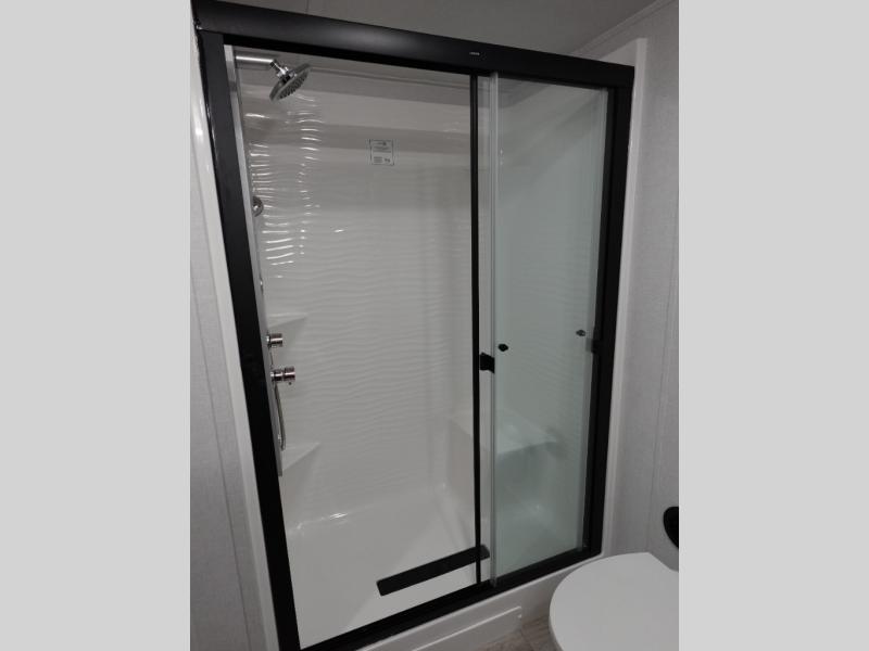 With any Salem Grand Villa destination trailer by Forest River, you can call home wherever you park it! There is a heated and enclosed Accessibelly for added protection, LED "Blade Lighting" under the awning, Lippert On-The-Go ladder prep, plus many more exterior conveniences. Elegant curtain rods and curtains will have you feeling right at home, along with stainless steel kitchen appliances, stylish roller shades, and enhanced floating shelves for added storage. Each model includes heavy duty cabinet hinges for safety and durability, a 60k on-demand tankless water heater for endless hot showers, a JBL 3-Zone media center, plus available options to further customize your trailer.