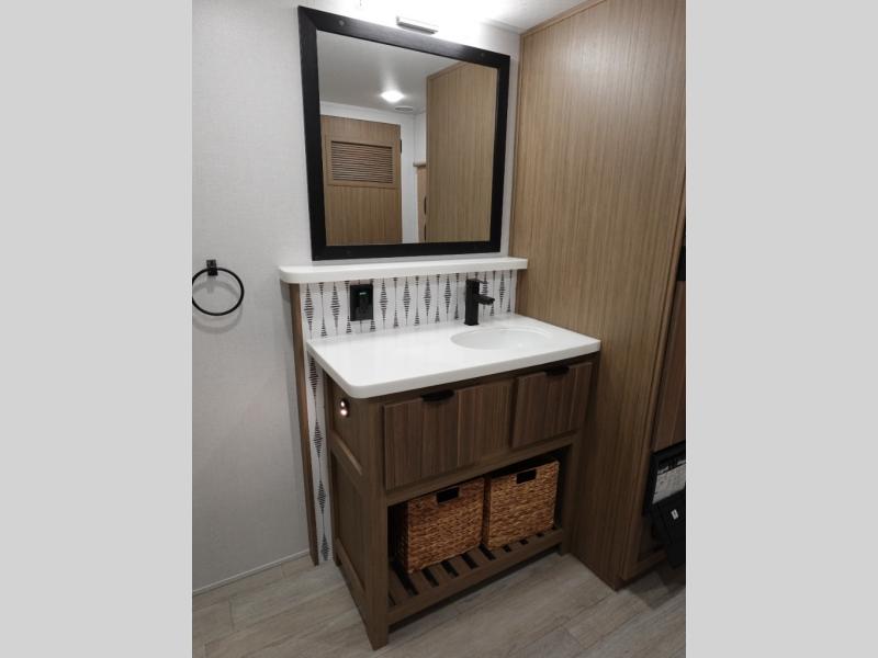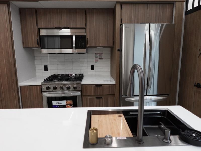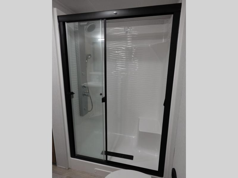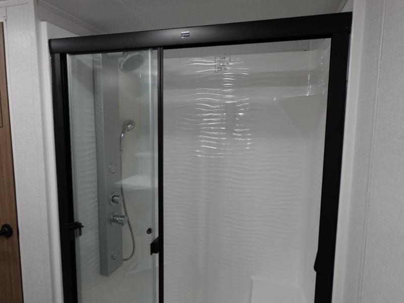 With any Salem Grand Villa destination trailer by Forest River, you can call home wherever you park it! There is a heated and enclosed Accessibelly for added protection, LED "Blade Lighting" under the awning, Lippert On-The-Go ladder prep, plus many more exterior conveniences. Elegant curtain rods and curtains will have you feeling right at home, along with stainless steel kitchen appliances, stylish roller shades, and enhanced floating shelves for added storage. Each model includes heavy duty cabinet hinges for safety and durability, a 60k on-demand tankless water heater for endless hot showers, a JBL 3-Zone media center, plus available options to further customize your trailer.