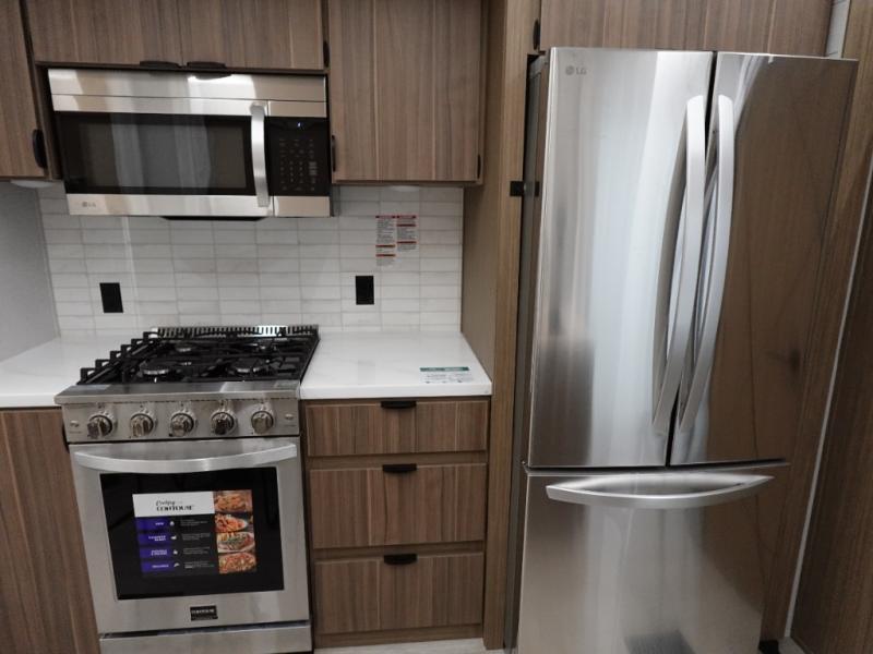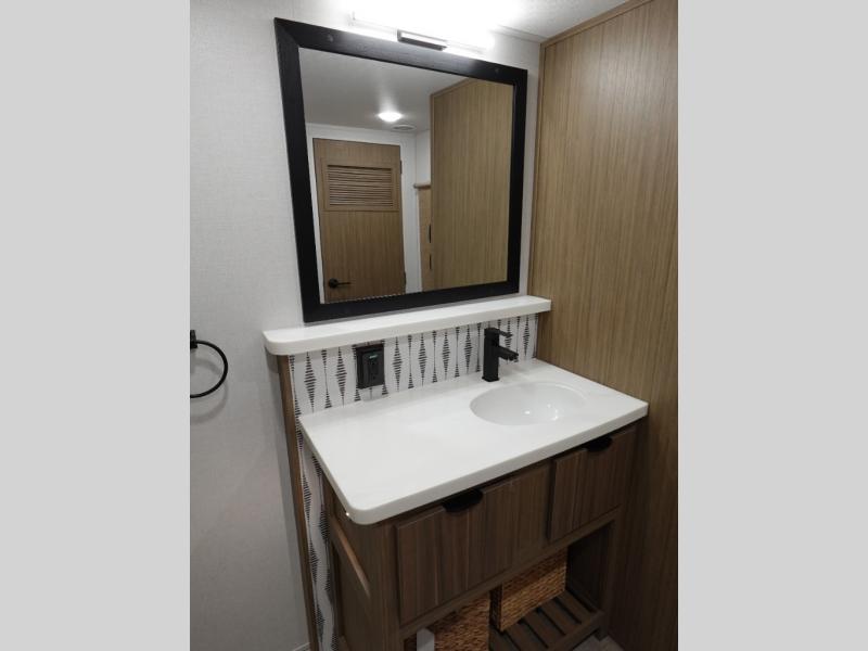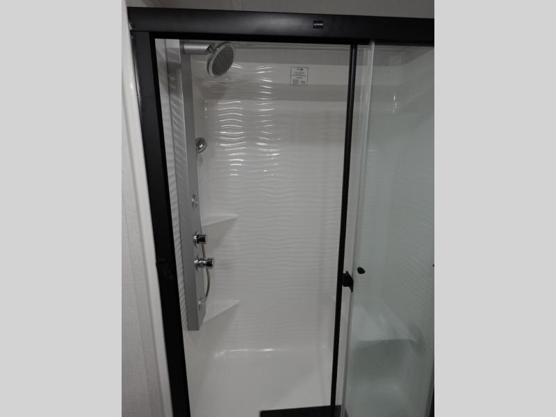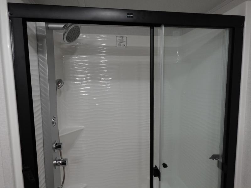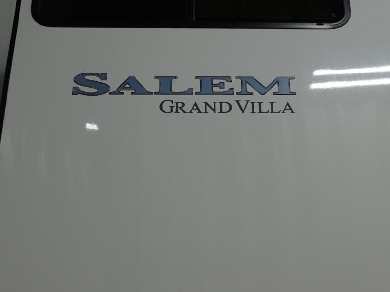With any Salem Grand Villa destination trailer by Forest River, you can call home wherever you park it! There is a heated and enclosed Accessibelly for added protection, LED "Blade Lighting" under the awning, Lippert On-The-Go ladder prep, plus many more exterior conveniences. Elegant curtain rods and curtains will have you feeling right at home, along with stainless steel kitchen appliances, stylish roller shades, and enhanced floating shelves for added storage. Each model includes heavy duty cabinet hinges for safety and durability, a 60k on-demand tankless water heater for endless hot showers, a JBL 3-Zone media center, plus available options to further customize your trailer.