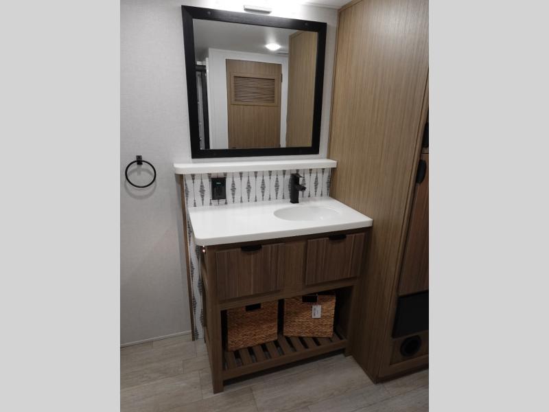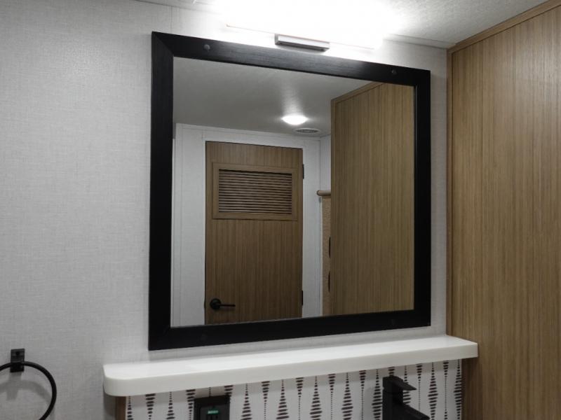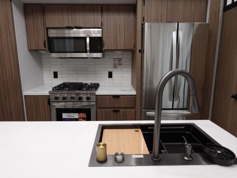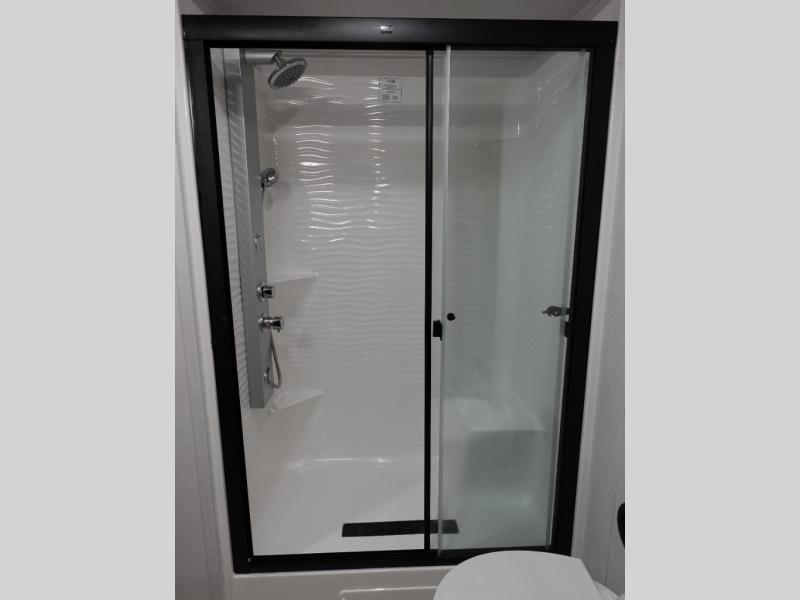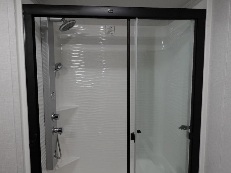 With any Salem Grand Villa destination trailer by Forest River, you can call home wherever you park it! There is a heated and enclosed Accessibelly for added protection, LED "Blade Lighting" under the awning, Lippert On-The-Go ladder prep, plus many more exterior conveniences. Elegant curtain rods and curtains will have you feeling right at home, along with stainless steel kitchen appliances, stylish roller shades, and enhanced floating shelves for added storage. Each model includes heavy duty cabinet hinges for safety and durability, a 60k on-demand tankless water heater for endless hot showers, a JBL 3-Zone media center, plus available options to further customize your trailer.