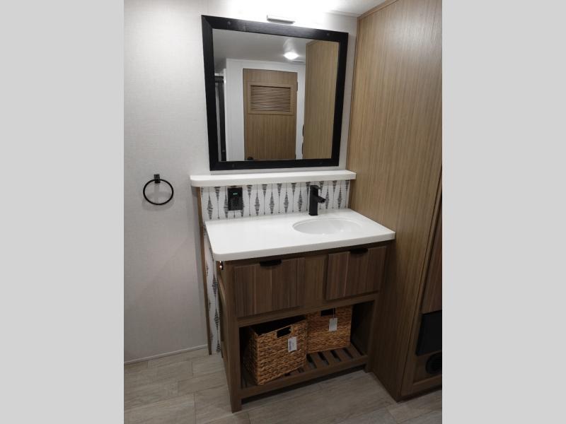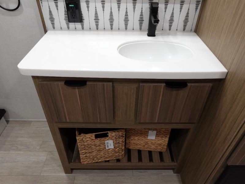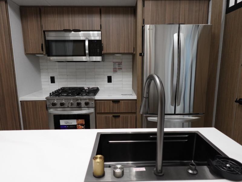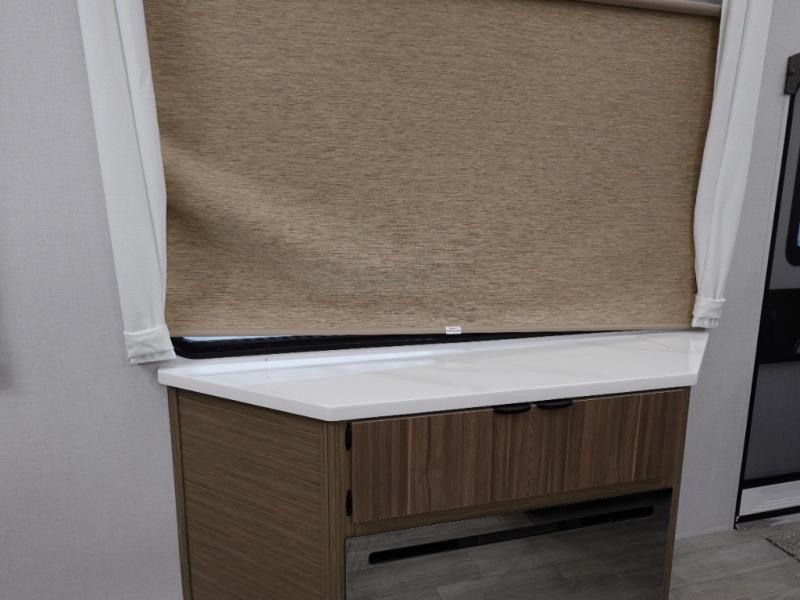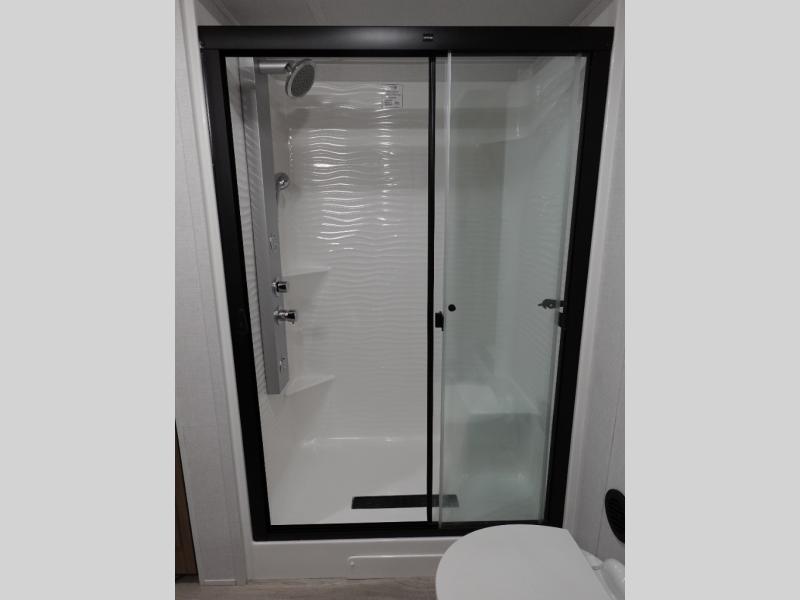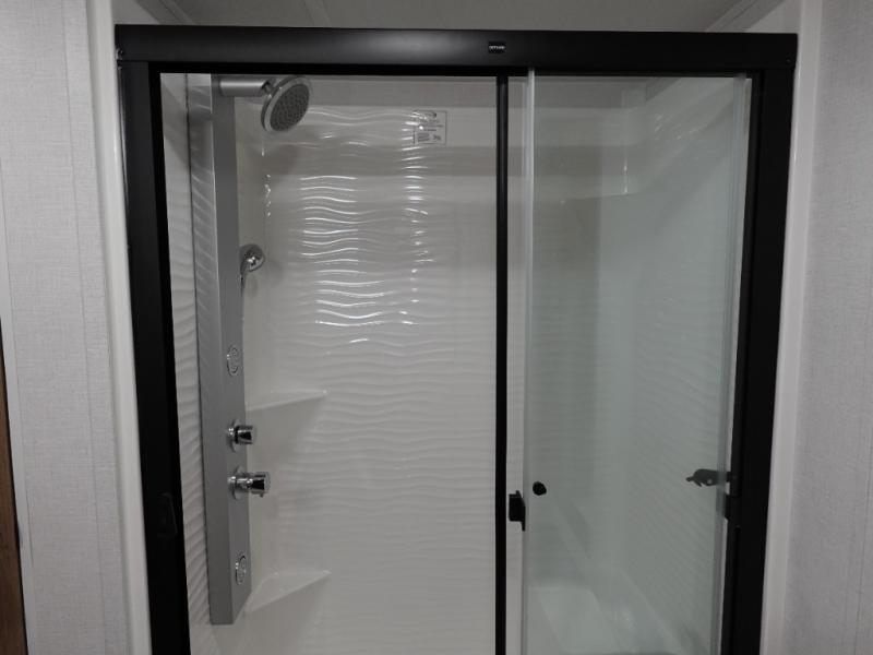 With any Salem Grand Villa destination trailer by Forest River, you can call home wherever you park it! There is a heated and enclosed Accessibelly for added protection, LED "Blade Lighting" under the awning, Lippert On-The-Go ladder prep, plus many more exterior conveniences. Elegant curtain rods and curtains will have you feeling right at home, along with stainless steel kitchen appliances, stylish roller shades, and enhanced floating shelves for added storage. Each model includes heavy duty cabinet hinges for safety and durability, a 60k on-demand tankless water heater for endless hot showers, a JBL 3-Zone media center, plus more.