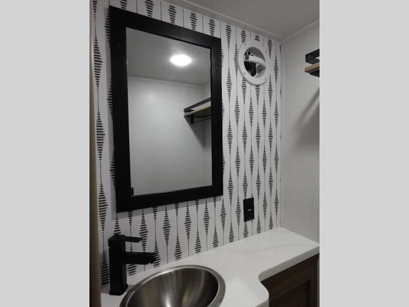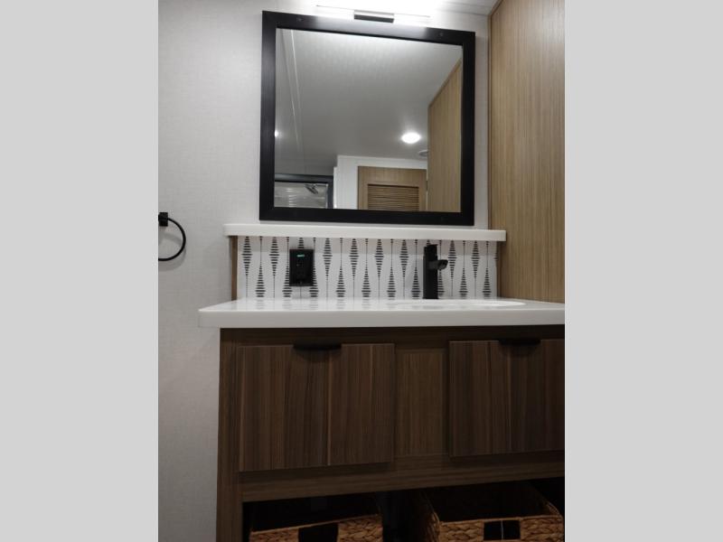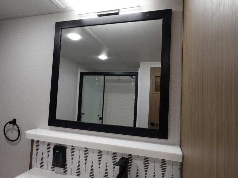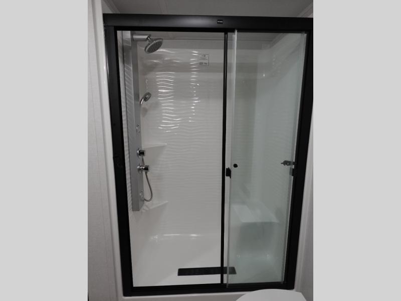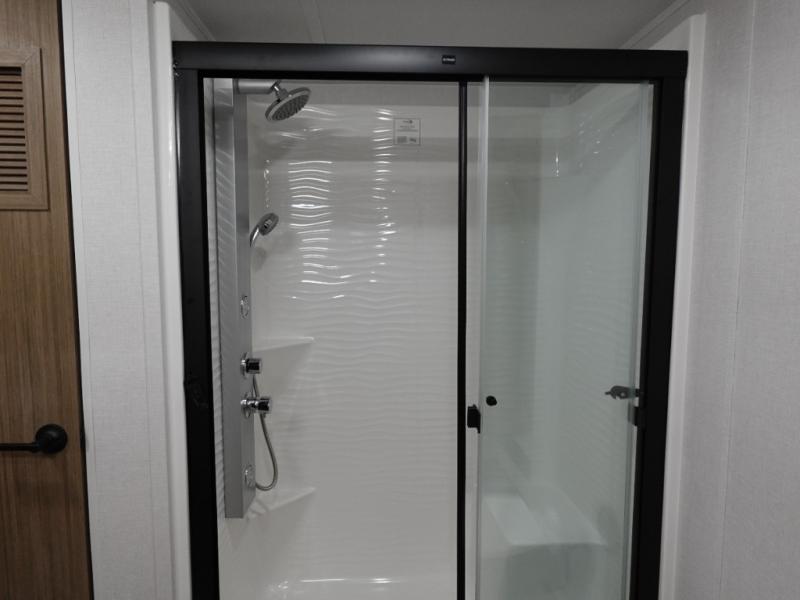 With any Salem Grand Villa destination trailer by Forest River, you can call home wherever you park it! There is a heated and enclosed Accessibelly for added protection, LED "Blade Lighting" under the awning, Lippert On-The-Go ladder prep, plus many more exterior conveniences. Elegant curtain rods and curtains will have you feeling right at home, along with stainless steel kitchen appliances, stylish roller shades, and enhanced floating shelves for added storage. Each model includes heavy duty cabinet hinges for safety and durability, a 60k on-demand tankless water heater for endless hot showers, a JBL 3-Zone media center, plus available options to further customize your trailer.