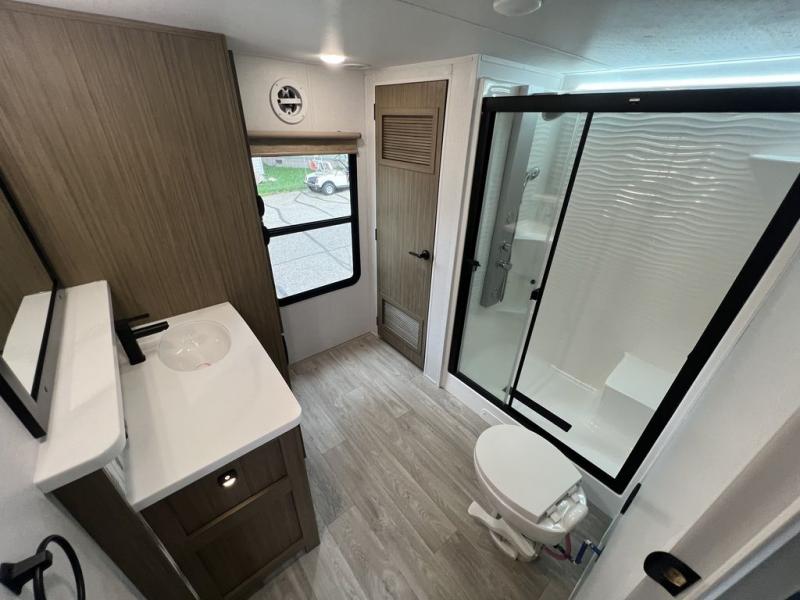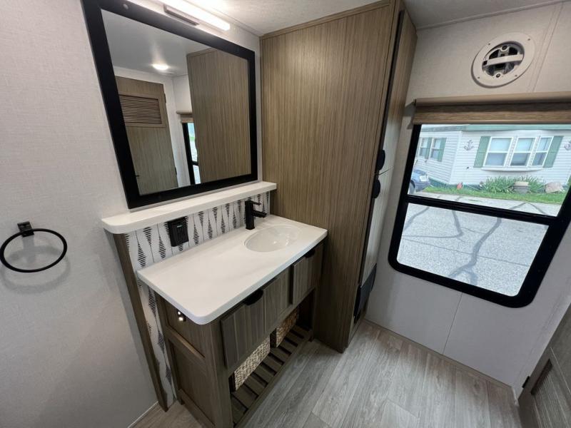 With any Salem Grand Villa destination trailer by Forest River, you can call home wherever you park it! There is a heated and enclosed Accessibelly for added protection, LED "Blade Lighting" under the awning, Lippert On-The-Go ladder prep, plus many more exterior conveniences. Elegant curtain rods and curtains will have you feeling right at home, along with stainless steel kitchen appliances, stylish roller shades, and enhanced floating shelves for added storage. Each model includes heavy duty cabinet hinges for safety and durability, a 60k on-demand tankless water heater for endless hot showers, a JBL 3-Zone media center, plus available options to further customize your trailer.