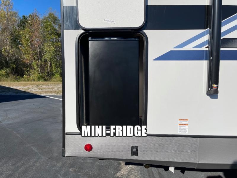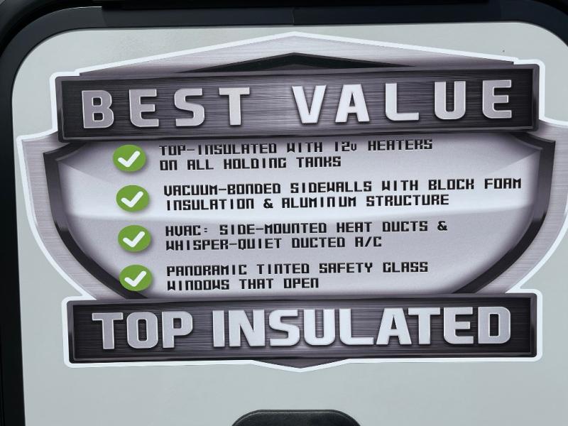 The Salem Hemisphere travel trailers by Forest River are packed with features, while still being value-minded! Each model is constructed with laminated "Aluma Frame" sidewalls and floor with block foam insulation plus an enclosed underbelly with 12V tank heaters on all holding tanks. There are LED awning, marker and taillights outside, along with an extra-large pass-thru storage with slam latch baggage doors, plus solar prep and Lippert On-The-Go ladder prep. The 60K on-demand tankless water heater will provide endless hot showers, and the JBL sound system includes a head unit plus interior and exterior speakers to keep the party going. There are also many interior comforts found throughout that will make you feel right at home!