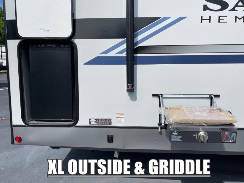 The Salem Hemisphere travel trailers by Forest River are packed with features, while still being value-minded! Each model is constructed with laminated "Aluma Frame" sidewalls and floor with block foam insulation plus an enclosed underbelly with 12V tank heaters on all holding tanks. There are LED awning, marker and taillights outside, along with an extra-large pass-thru storage with slam latch baggage doors, plus solar prep and Lippert On-The-Go ladder prep. The 60K on-demand tankless water heater will provide endless hot showers, and the JBL sound system includes a head unit plus interior and exterior speakers to keep the party going. There are also many interior comforts found throughout that will make you feel right at home!