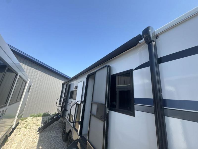The Salem Hemisphere fifth wheels and travel trailers by Forest River are packed with features, while still being value-minded! Each model is constructed with laminated "Aluma Frame" sidewalls and floor with block foam insulation plus full length barreled ceilings for added head space. There are LED awning, marker and tail lights outside, along with an extra large pass-thru storage with slam latch baggage doors, plus solar prep and Lippert On-The-Go ladder prep. The 60K on-demand tankless water heater will provide endless hot showers, and the JBL sound system includes a head unit plus interior and exterior speakers to keep the party going. There are also many interior comforts found throughout that will make you feel right at home!