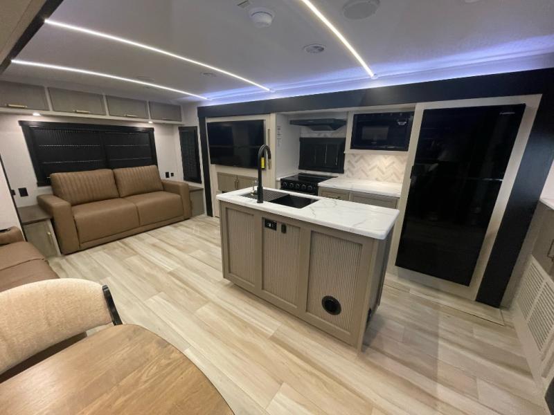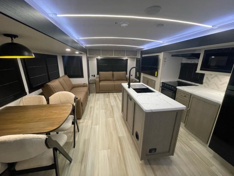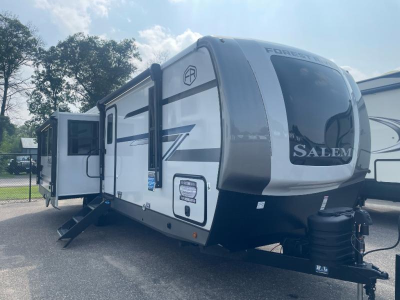 The Salem Hemisphere fifth wheels and travel trailers by Forest River are packed with features, while still being value-minded! Each model is constructed with laminated "Aluma Frame" sidewalls and floor with block foam insulation plus full length barreled ceilings for added head space. There are LED awning, marker and tail lights outside, along with an extra large pass-thru storage with slam latch baggage doors, plus solar prep and Lippert On-The-Go ladder prep. The 60K on-demand tankless water heater will provide endless hot showers, and the JBL sound system includes a head unit plus interior and exterior speakers to keep the party going. There are also many interior comforts found throughout that will make you feel right at home!