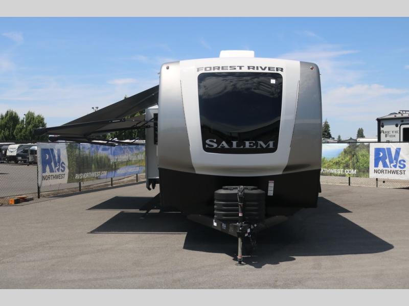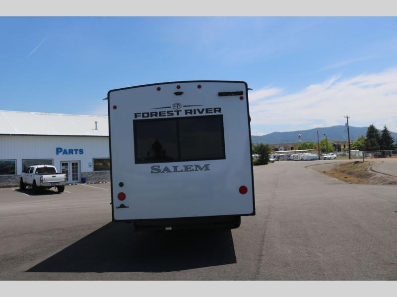 The Salem Hemisphere travel trailers by Forest River are packed with features, while still being value-minded! Each model is constructed with laminated "Aluma Frame" sidewalls and floor with block foam insulation plus an enclosed underbelly with 12V tank heaters on all holding tanks. There are LED awning, marker and taillights outside, along with an extra-large pass-thru storage with slam latch baggage doors, plus solar prep and Lippert On-The-Go ladder prep. The 60K on-demand tankless water heater will provide endless hot showers, and the JBL sound system includes a head unit plus interior and exterior speakers to keep the party going. There are also many interior comforts found throughout that will make you feel right at home!