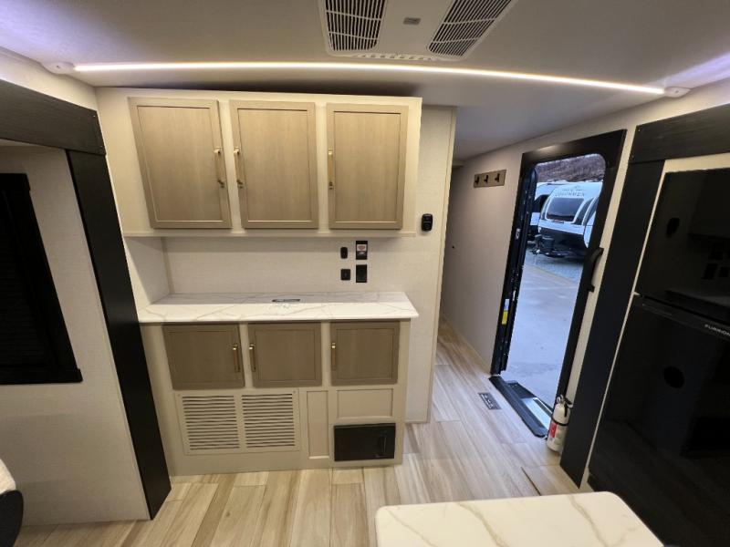 The Salem Hemisphere fifth wheels and travel trailers by Forest River are packed with features, while still being value-minded! Each model is constructed with laminated "Aluma Frame" sidewalls and floor with block foam insulation plus full length barreled ceilings for added head space. There are LED awning, marker and tail lights outside, along with an extra large pass-thru storage with slam latch baggage doors, plus solar prep and Lippert On-The-Go ladder prep. The 60K on-demand tankless water heater will provide endless hot showers, and the JBL sound system includes a head unit plus interior and exterior speakers to keep the party going. There are also many interior comforts found throughout that will make you feel right at home!