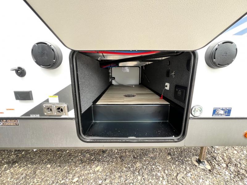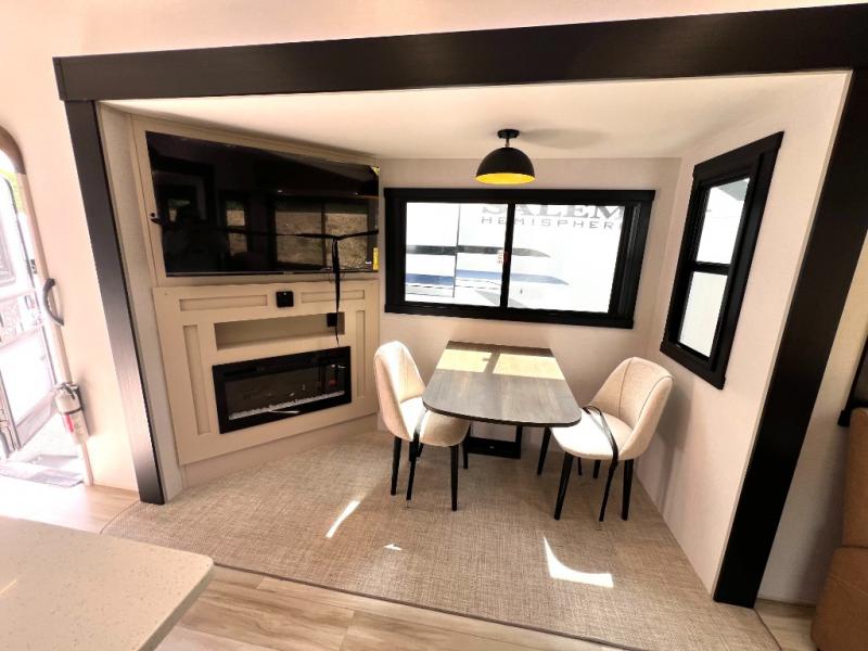 The Salem Hemisphere fifth wheels and travel trailers by Forest River are packed with features, while still being value-minded! Each model is constructed with laminated "Aluma Frame" sidewalls and floor with block foam insulation plus full length barreled ceilings for added head space. There are LED awning, marker and tail lights outside, along with an extra large pass-thru storage with slam latch baggage doors, plus solar prep and Lippert On-The-Go ladder prep. The 60K on-demand tankless water heater will provide endless hot showers, and the JBL sound system includes a head unit plus interior and exterior speakers to keep the party going. There are also many interior comforts found throughout that will make you feel right at home!