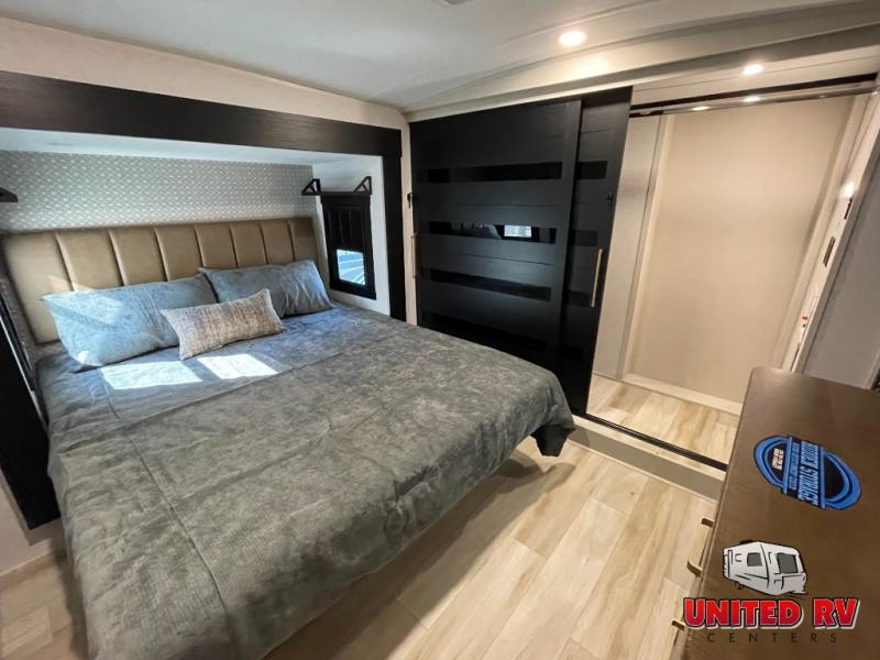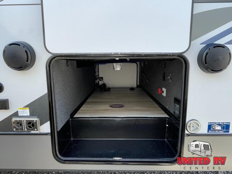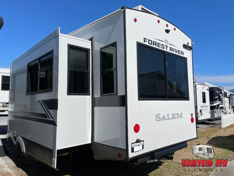 The Salem Hemisphere fifth wheels by Forest River are packed with features, while still being value-minded! Each model is constructed with laminated "Aluma Frame" sidewalls and floor with block foam insulation plus full-length barreled ceilings for added head space. There are LED awning, marker and taillights outside, along with an extra-large pass-thru storage with slam latch baggage doors, plus solar prep and Lippert On-The-Go ladder prep. The 60K on-demand tankless water heater will provide endless hot showers, and the JBL sound system includes a head unit plus interior and exterior speakers to keep the party going. There are also many interior comforts found throughout that will make you feel right at home!