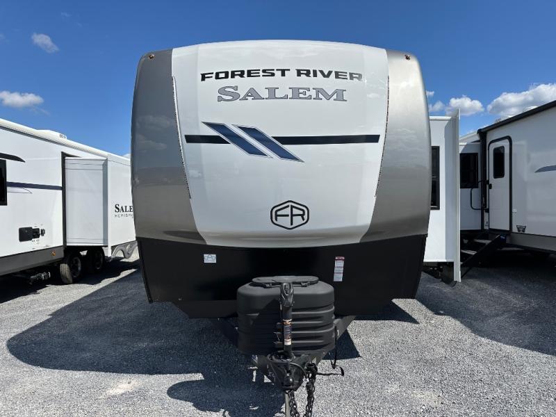 The Salem Hemisphere fifth wheels and travel trailers by Forest River are packed with features, while still being value-minded! Each model is constructed with laminated "Aluma Frame" sidewalls and floor with block foam insulation plus full length barreled ceilings for added head space. There are LED awning, marker and tail lights outside, along with an extra large pass-thru storage with slam latch baggage doors, plus solar prep and Lippert On-The-Go ladder prep. The 60K on-demand tankless water heater will provide endless hot showers, and the JBL sound system includes a head unit plus interior and exterior speakers to keep the party going. There are also many interior comforts found throughout that will make you feel right at home!