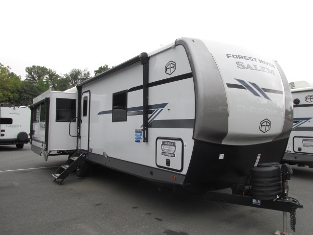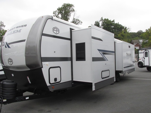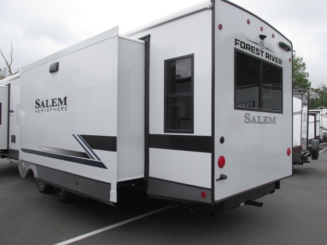 The Salem Hemisphere fifth wheels and travel trailers by Forest River are packed with features, while still being value-minded! Each model is constructed with laminated "Aluma Frame" sidewalls and floor with block foam insulation plus full length barreled ceilings for added head space. There are LED awning, marker and tail lights outside, along with an extra large pass-thru storage with slam latch baggage doors, plus solar prep and Lippert On-The-Go ladder prep. The 60K on-demand tankless water heater will provide endless hot showers, and the JBL sound system includes a head unit plus interior and exterior speakers to keep the party going. There are also many interior comforts found throughout that will make you feel right at home!