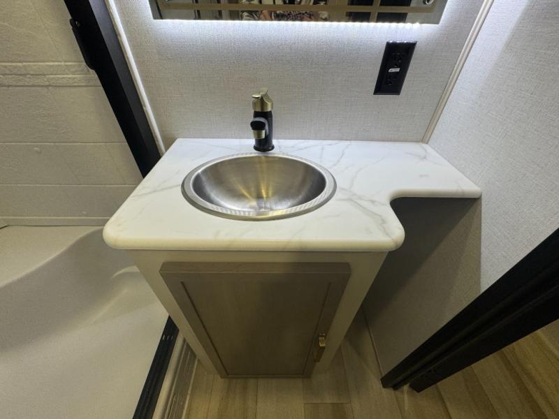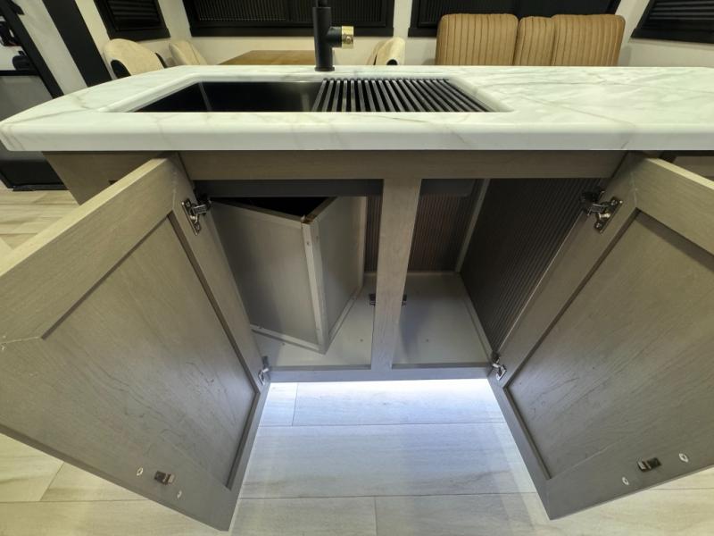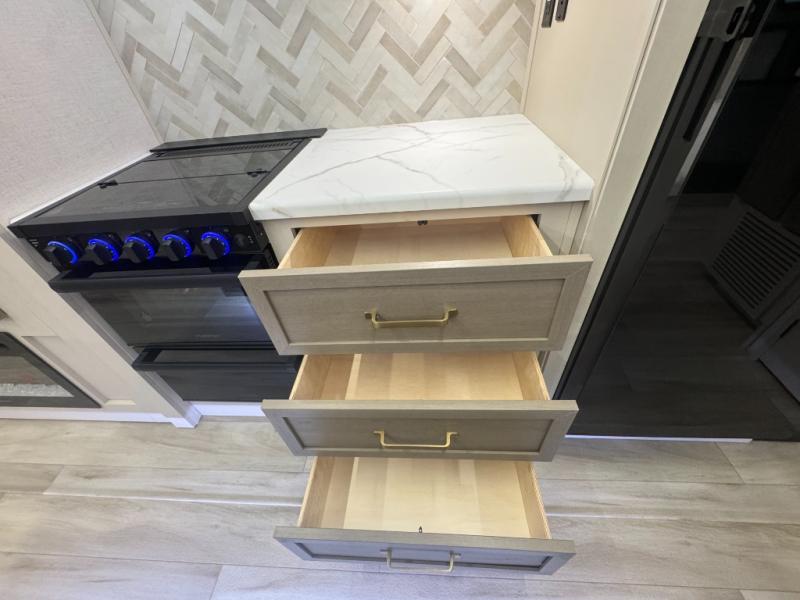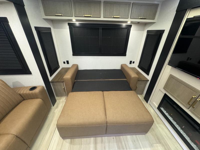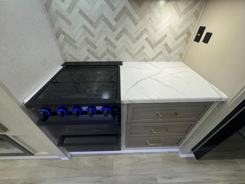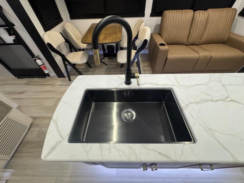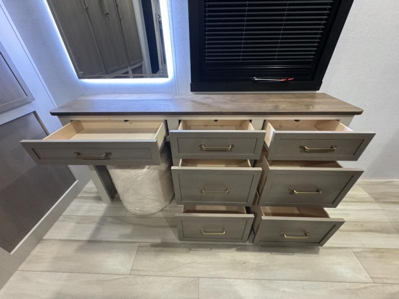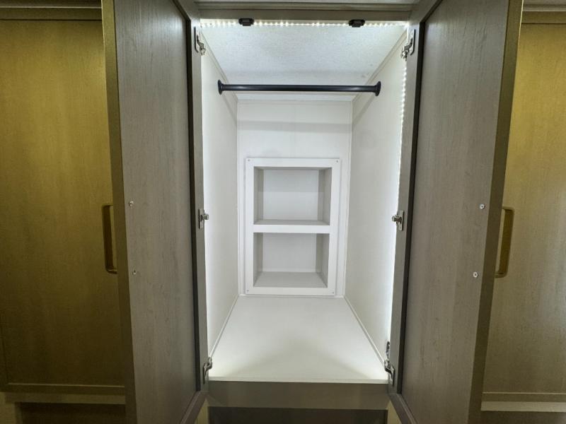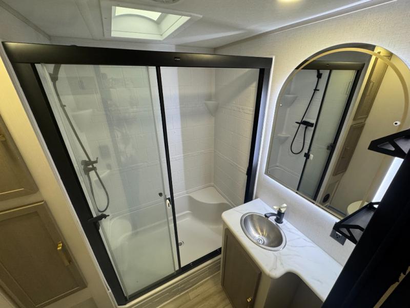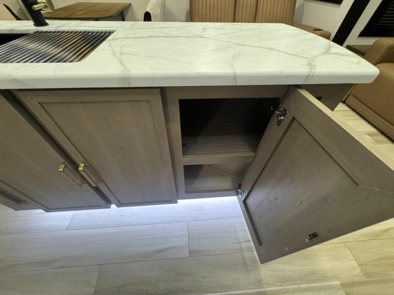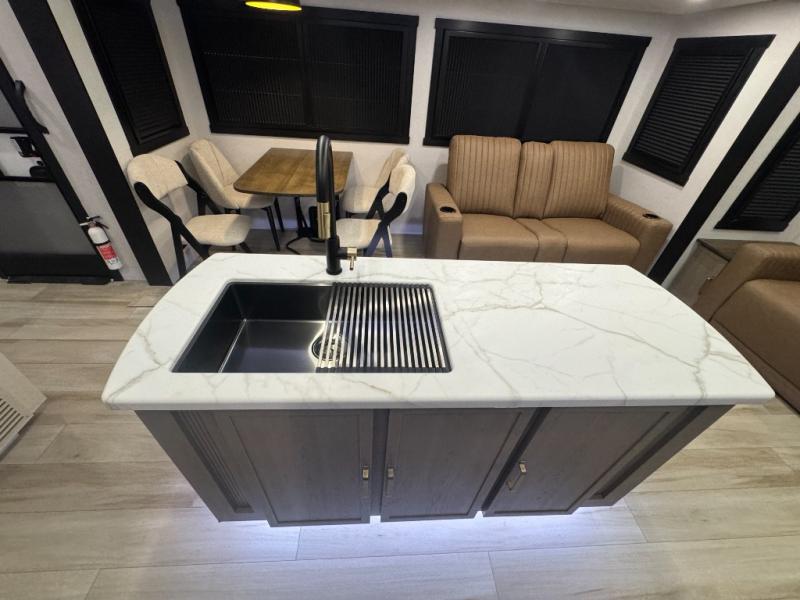 This travel trailer is decked out in features you will love like the front walk-in wardrobe with washer/dryer prep inside the front private bedroom! The full bathroom has everything you will need to get squeaky clean each morning including a residential walk-in shower with a skylight to let in some natural lighting. There is a hutch for you to store your dishes and a kitchen island to make meal prepping even easier. Once you have created a delicious meal, you can head to the booth dinette and enjoy eating it there comfortably while enjoying your view out of the panoramic window!