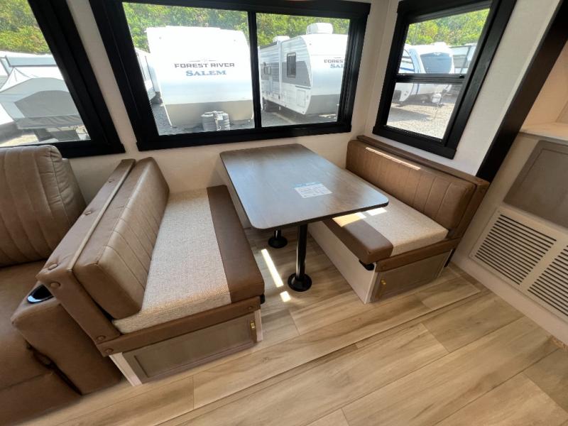 The Salem Hemisphere fifth wheels and travel trailers by Forest River are packed with features, while still being value-minded! Each model is constructed with laminated "Aluma Frame" sidewalls and floor with block foam insulation plus full length barreled ceilings for added head space. There are LED awning, marker and tail lights outside, along with an extra large pass-thru storage with slam latch baggage doors, plus solar prep and Lippert On-The-Go ladder prep. The 60K on-demand tankless water heater will provide endless hot showers, and the JBL sound system includes a head unit plus interior and exterior speakers to keep the party going. There are also many interior comforts found throughout that will make you feel right at home!
