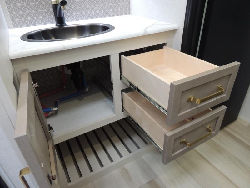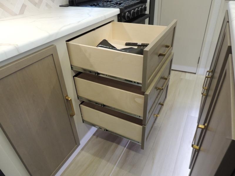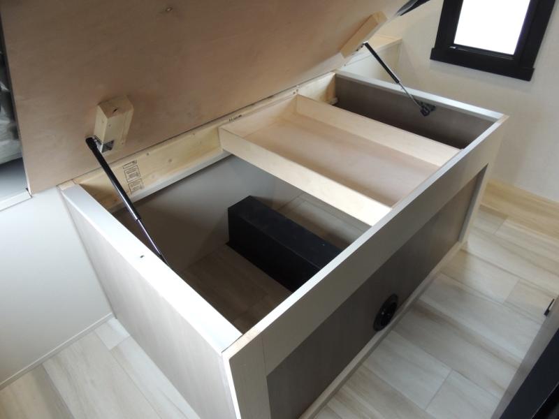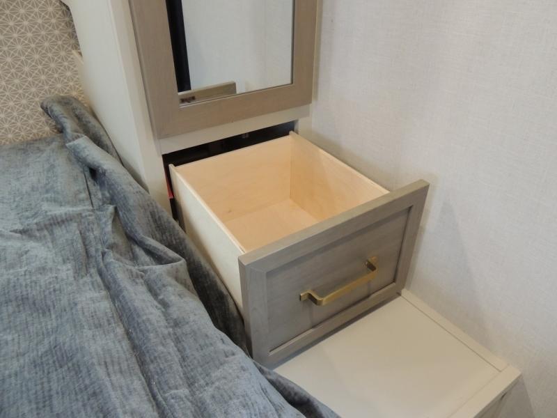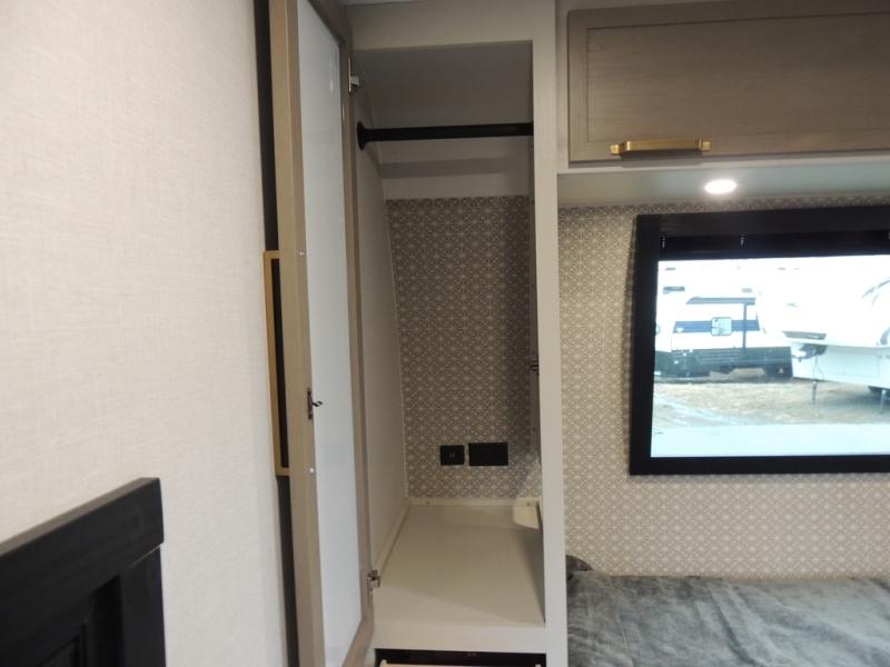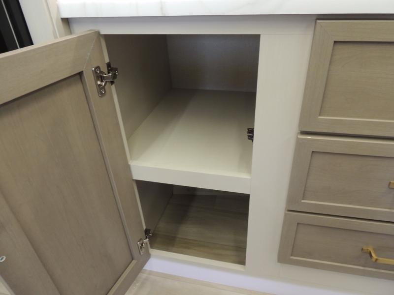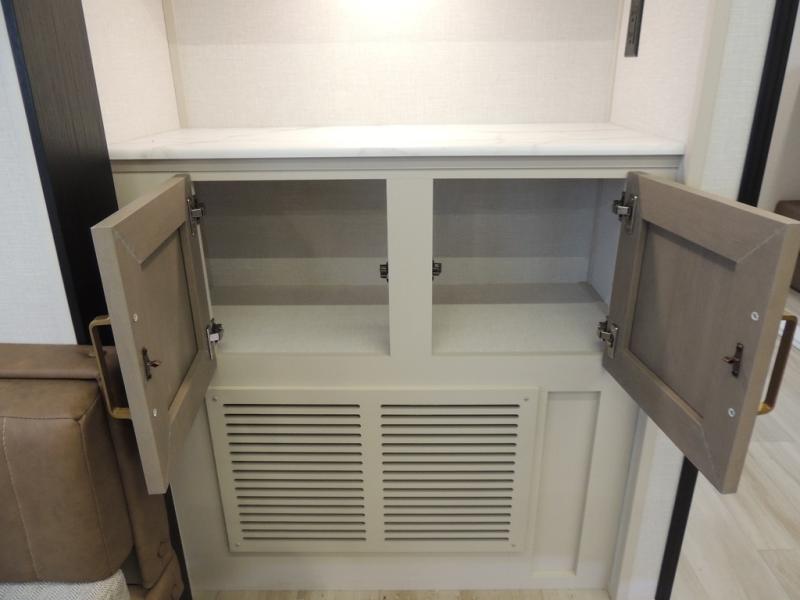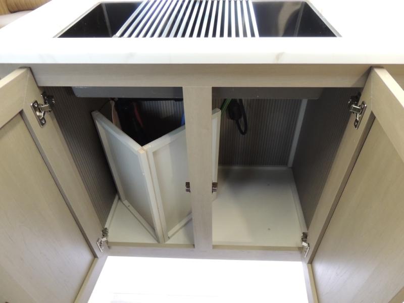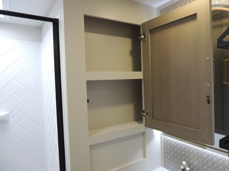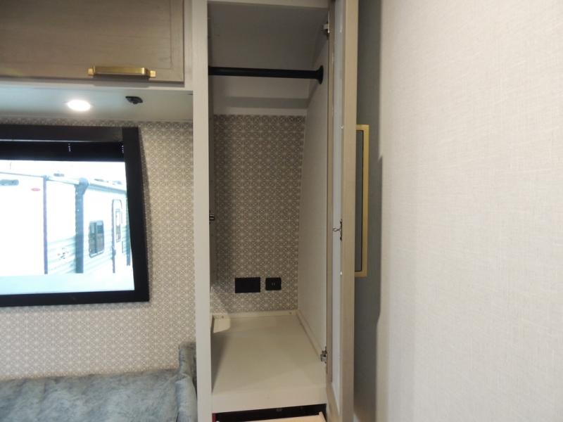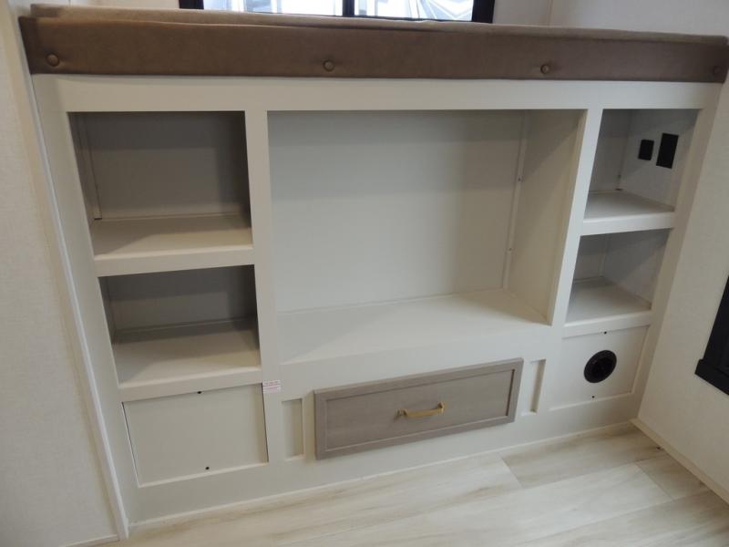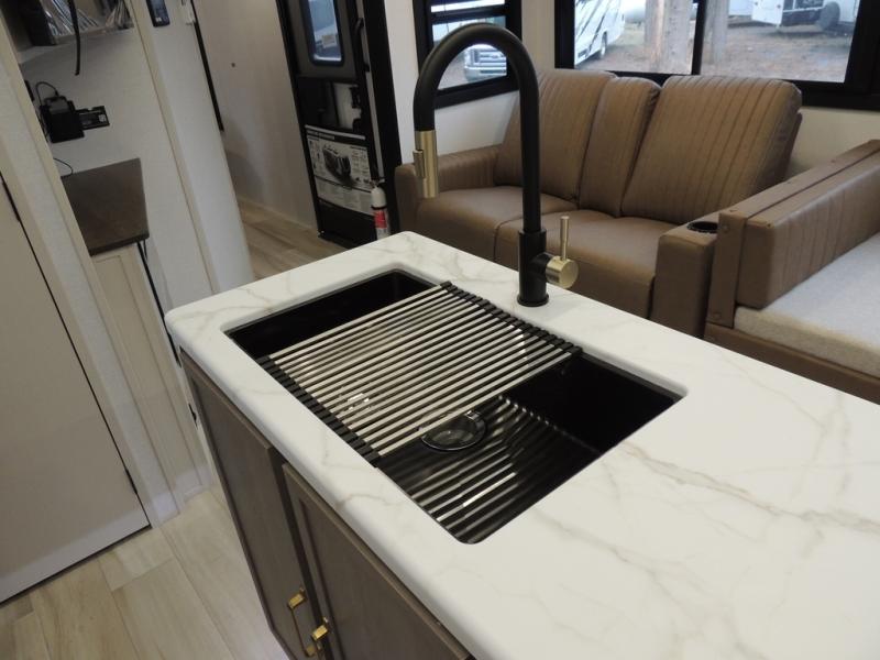 Your kids or friends are going to love camping in this travel trailer! It features a rear private bunkhouse with a bunk above a Versa queen convertible bed/sofa plus an additional bunk above an entertainment center with storage below. Just outside the bunkhouse is the kitchen with a 10 cu. ft. 12V black refrigerator, a microwave, a kitchen island, and a chef-sized walk-in pantry big enough to store everyone's favorite snacks. The booth dinette and the theatre seating are right next to panoramic windows so you can enjoy looking out at your beautiful scenery. You will also love taking a hot, steamy shower in the 30" x 36" shower with skylights and get a good night's rest on the queen bed in the front private bedroom!