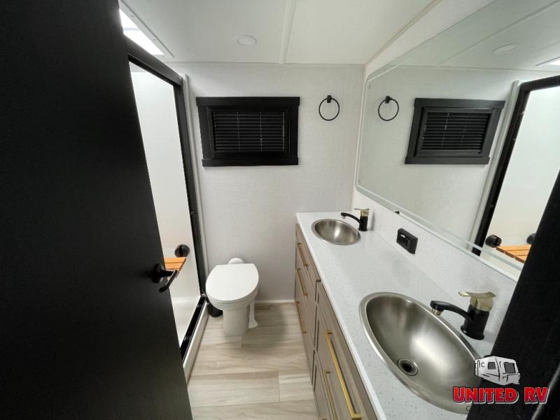 The Salem Hemisphere fifth wheels by Forest River are packed with features, while still being value-minded! Each model is constructed with laminated "Aluma Frame" sidewalls and floor with block foam insulation plus full-length barreled ceilings for added head space. There are LED awning, marker and taillights outside, along with an extra-large pass-thru storage with slam latch baggage doors, plus solar prep and Lippert On-The-Go ladder prep. The 60K on-demand tankless water heater will provide endless hot showers, and the JBL sound system includes a head unit plus interior and exterior speakers to keep the party going. There are also many interior comforts found throughout that will make you feel right at home!