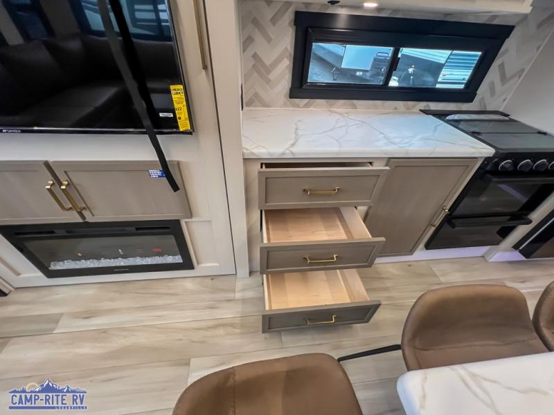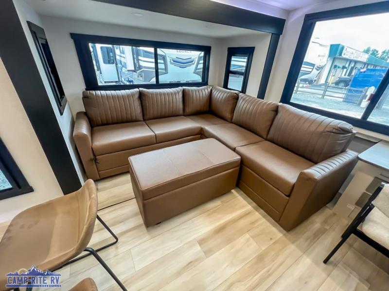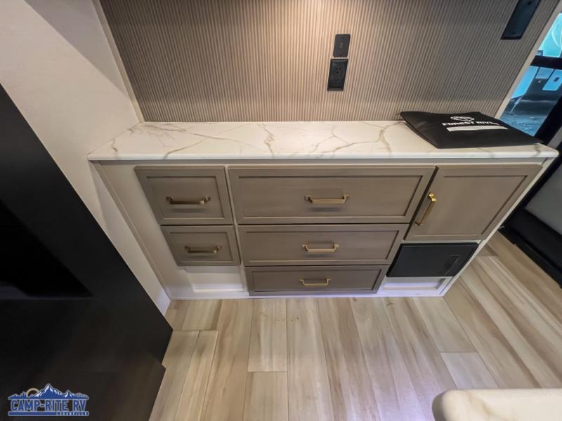 Forest River packed these trailers with premium features while keeping them budget-conscious. You’ll get Aluma Frame laminated sidewalls and floors, block foam insulation, and full-length barreled ceilings for a more open feel. Outside, expect LED lighting, a huge pass-through storage with slam-latch doors, solar prep, and Lippert ladder prep. Inside, enjoy unlimited hot water from a 60K on-demand tankless heater, and let the JBL sound system keep the vibes strong with both indoor and outdoor speakers. It’s the perfect blend of comfort and capability.