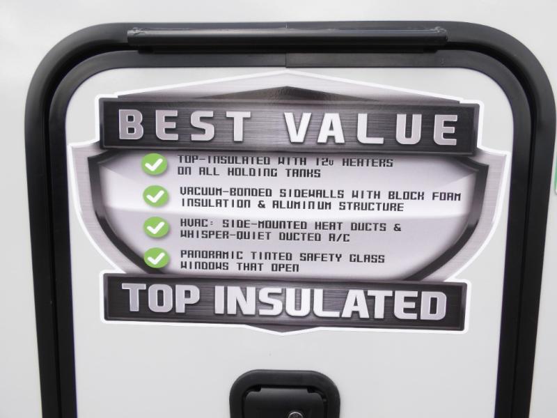 The Salem Hemisphere travel trailers by Forest River are packed with features, while still being value-minded! Each model is constructed with laminated "Aluma Frame" sidewalls and floor with block foam insulation plus an enclosed underbelly with 12V tank heaters on all holding tanks. There are LED awning, marker and taillights outside, along with an extra-large pass-thru storage with slam latch baggage doors, plus solar prep and Lippert On-The-Go ladder prep. The 60K on-demand tankless water heater will provide endless hot showers, and the JBL sound system includes a head unit plus interior and exterior speakers to keep the party going. There are also many interior comforts found throughout that will make you feel right at home!