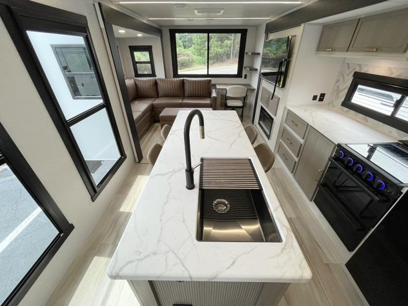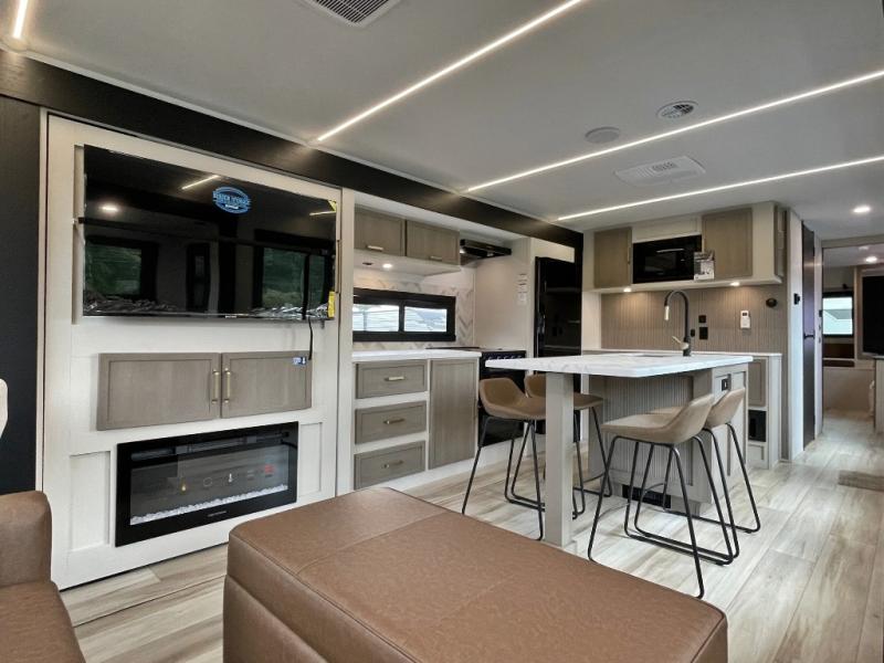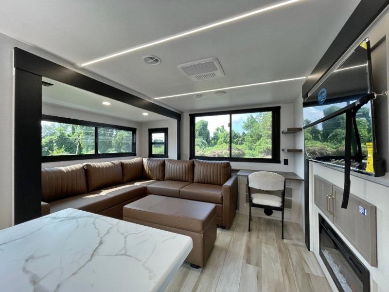 Salem Hemisphere 323RLI WITH REAR LOUNGE, RV KING BED SLIDE, DESIGNATED DESK, & ISLAND W/ SEATING PLUS MORE....