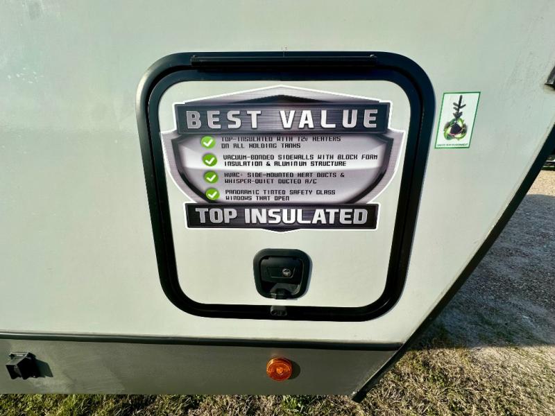 The Salem Hemisphere travel trailers by Forest River are packed with features, while still being value-minded! Each model is constructed with laminated "Aluma Frame" sidewalls and floor with block foam insulation plus an enclosed underbelly with 12V tank heaters on all holding tanks. There are LED awning, marker and taillights outside, along with an extra-large pass-thru storage with slam latch baggage doors, plus solar prep and Lippert On-The-Go ladder prep. The 60K on-demand tankless water heater will provide endless hot showers, and the JBL sound system includes a head unit plus interior and exterior speakers to keep the party going. There are also many interior comforts found throughout that will make you feel right at home!