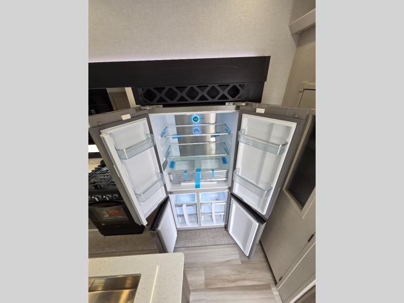 The Salem Hemisphere fifth wheels by Forest River are packed with features, while still being value-minded! Each model is constructed with laminated "Aluma Frame" sidewalls and floor with block foam insulation plus full-length barreled ceilings for added head space. There are LED awning, marker and taillights outside, along with an extra-large pass-thru storage with slam latch baggage doors, plus solar prep and Lippert On-The-Go ladder prep. The 60K on-demand tankless water heater will provide endless hot showers, and the JBL sound system includes a head unit plus interior and exterior speakers to keep the party going. There are also many interior comforts found throughout that will make you feel right at home!